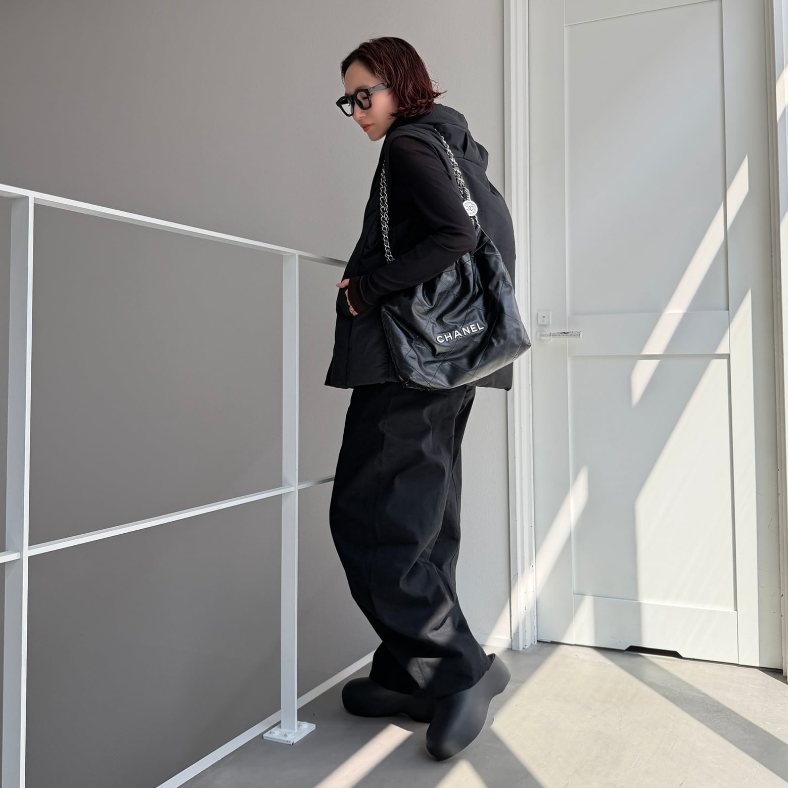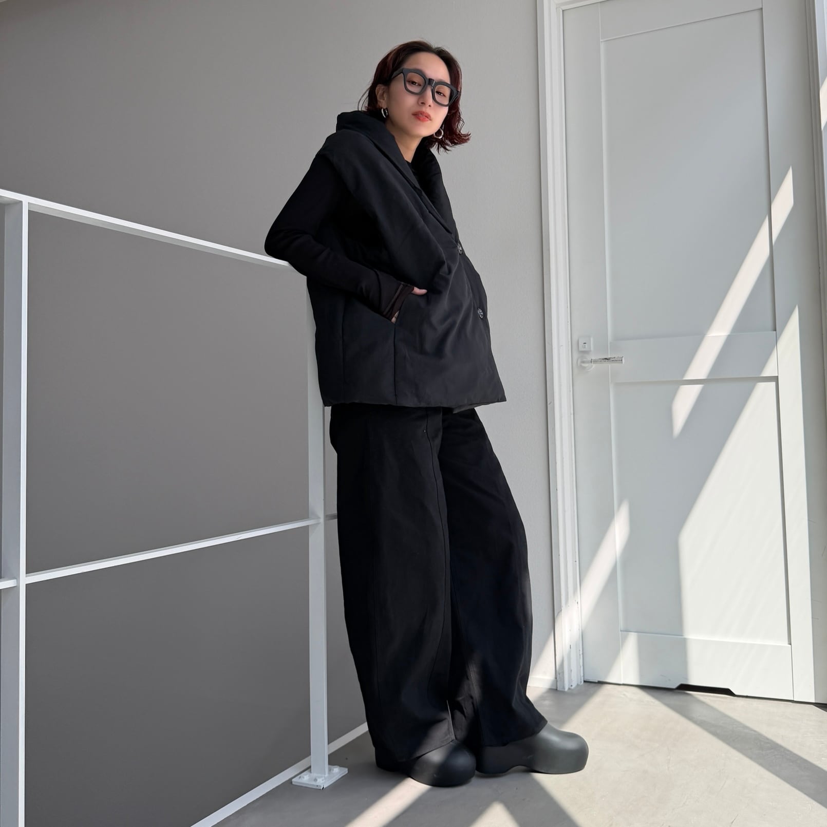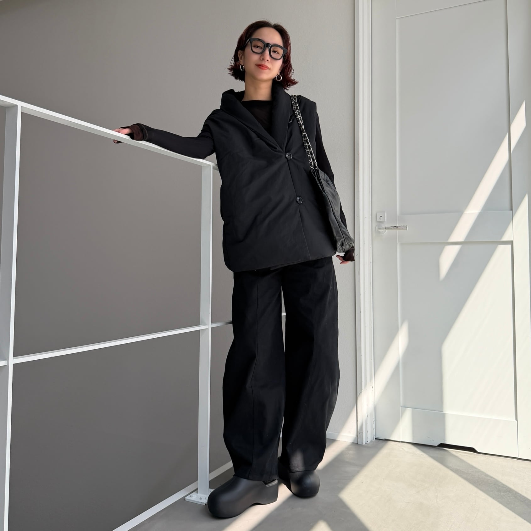 ストールのようなボリュームのある中綿ベスト。ボリューミーながらも洗練されたフォルムと、コート代わりにも使える暖かさが魅力の一着。上品かつ大人カジュアルな表情のマットタフタ素材を使用しているのもポイント。気温や季節に合わせて長く着回しがきくアイテムです。