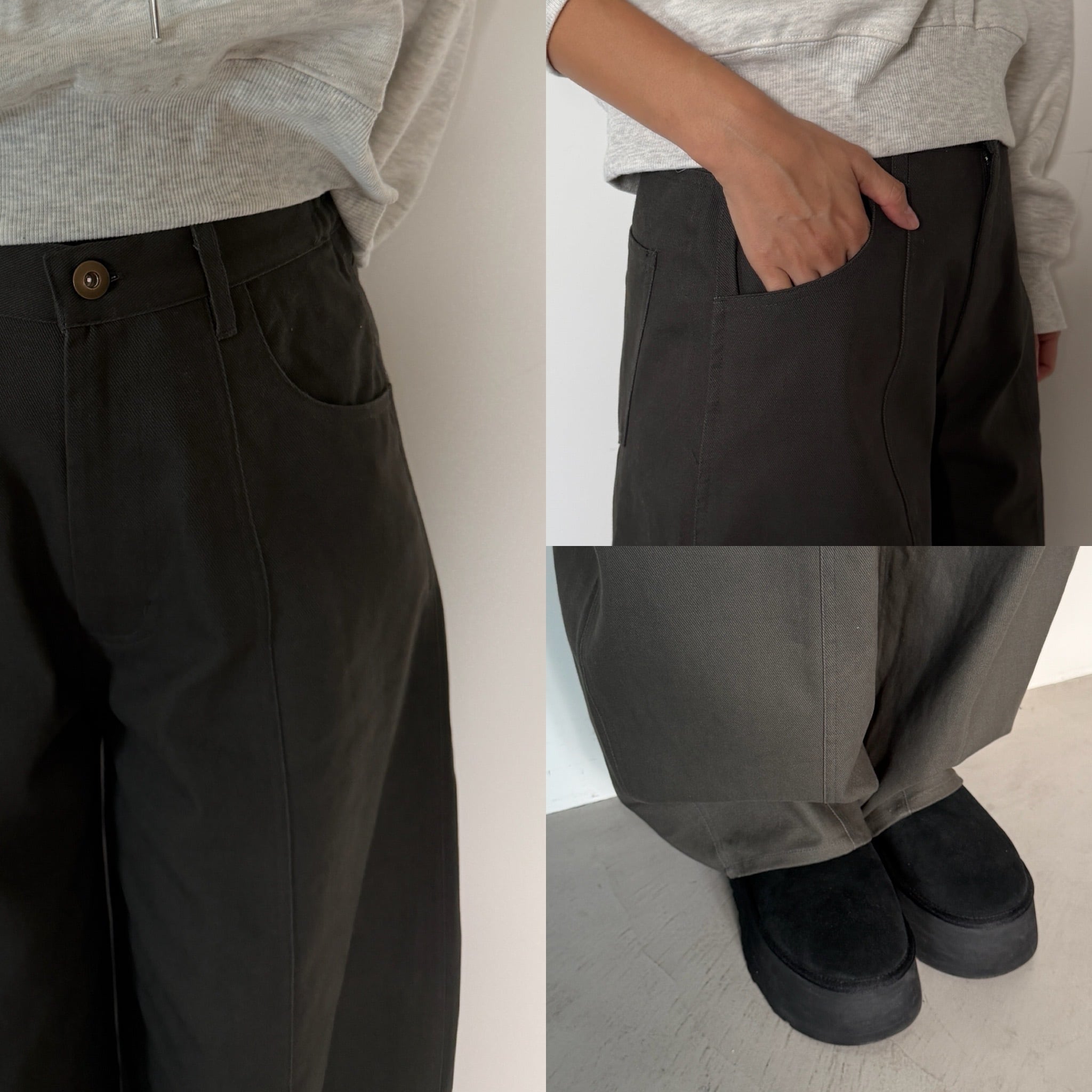 カツラギワイドボリュームカーブPT/チャコールカーキ