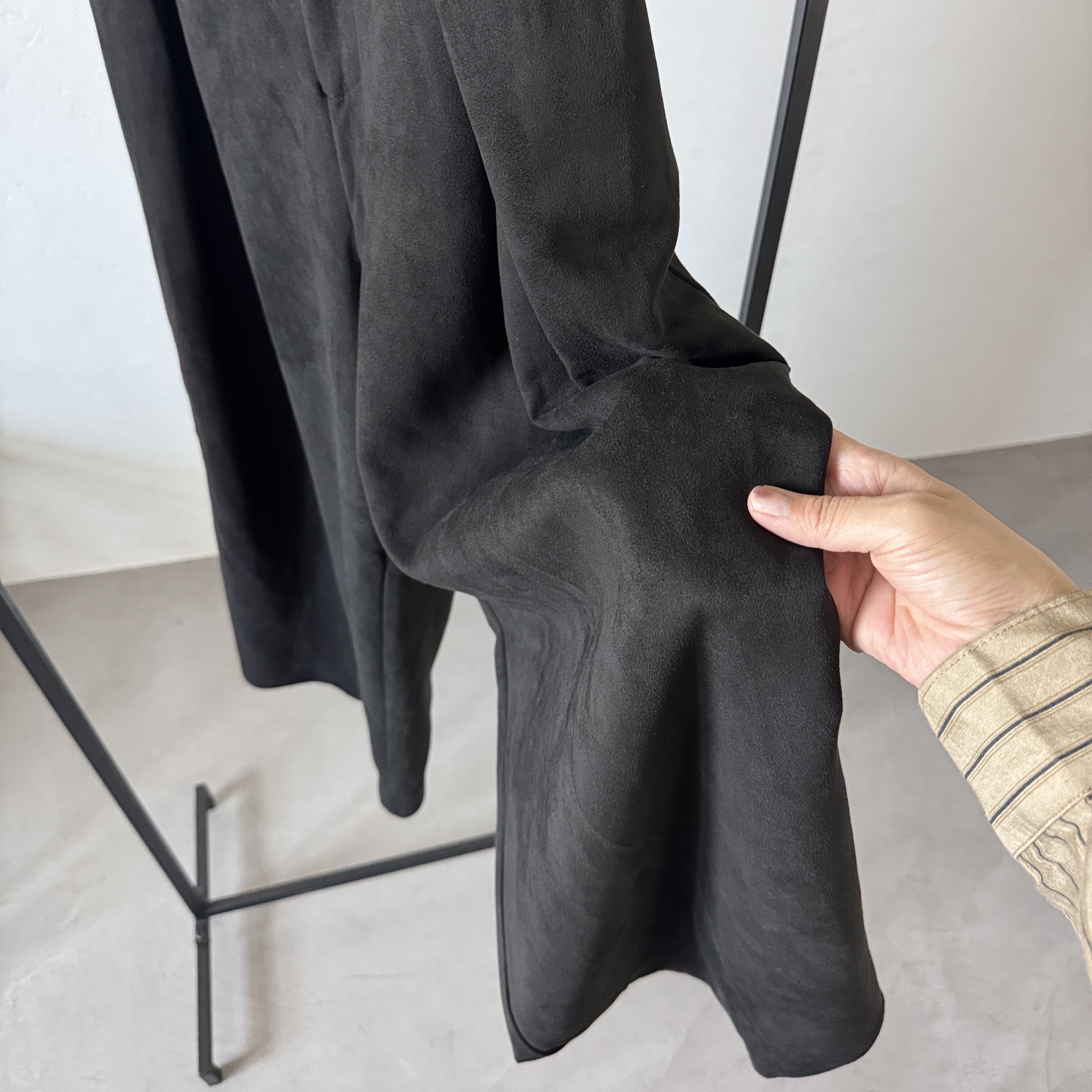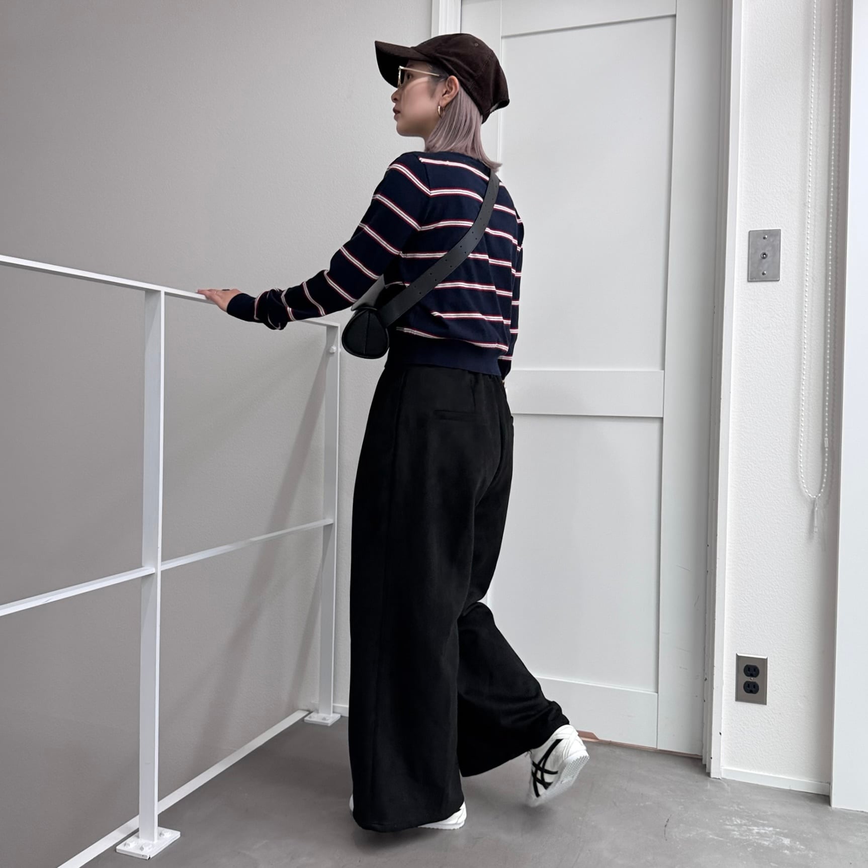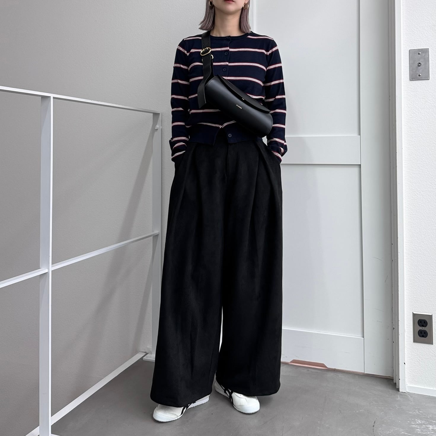 しっとり滑らかな肌触りのピーチスキン素材を使用したタックワイドパンツ。マットな風合いなので大人な上品さも兼ね備えています。フロントタック入りなので腰回りをカバーしつつワイドシルエットなので脚長効果も。後ウエストはゴム入りなのでサイズ調節も可能です。