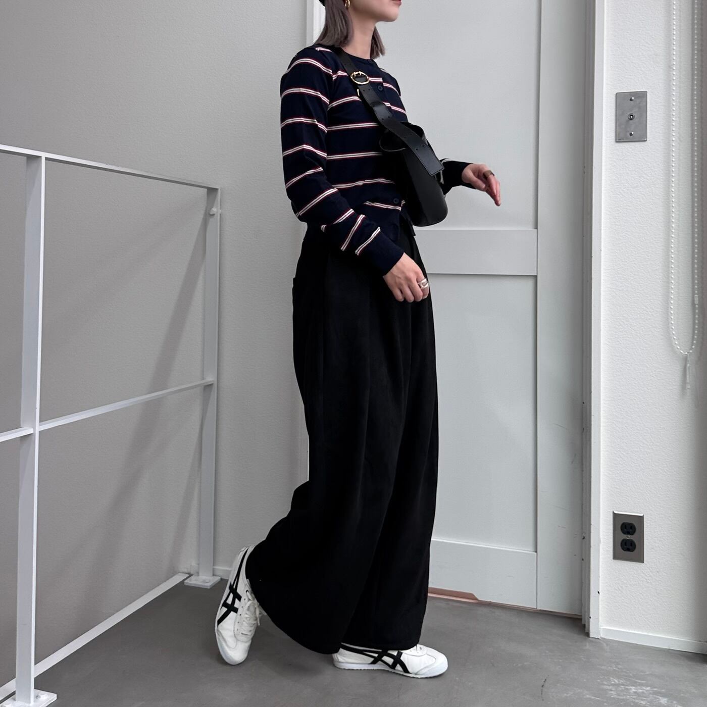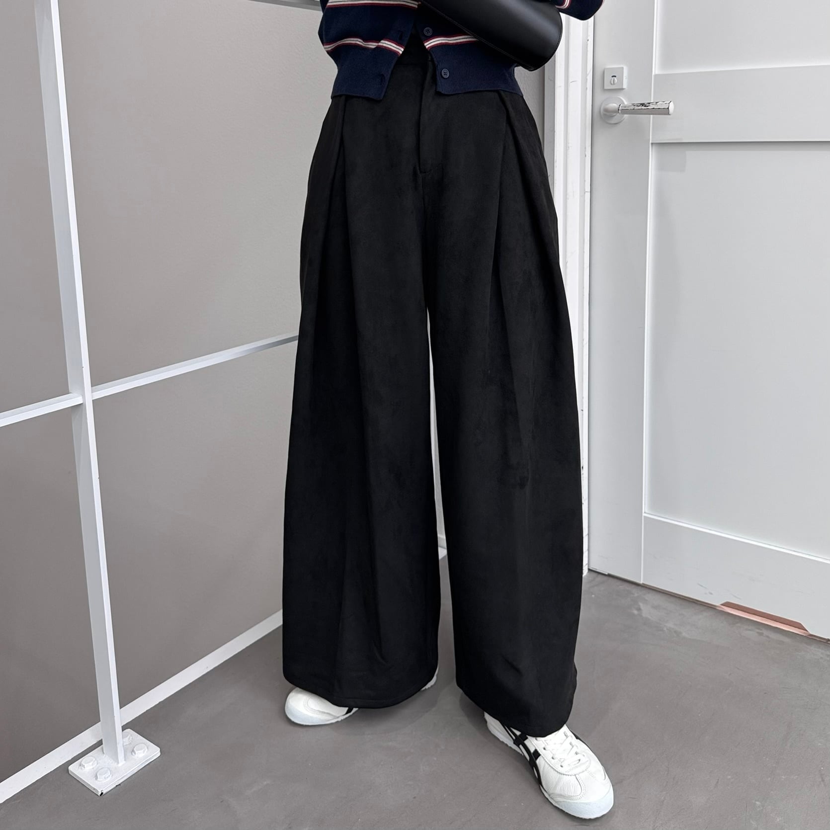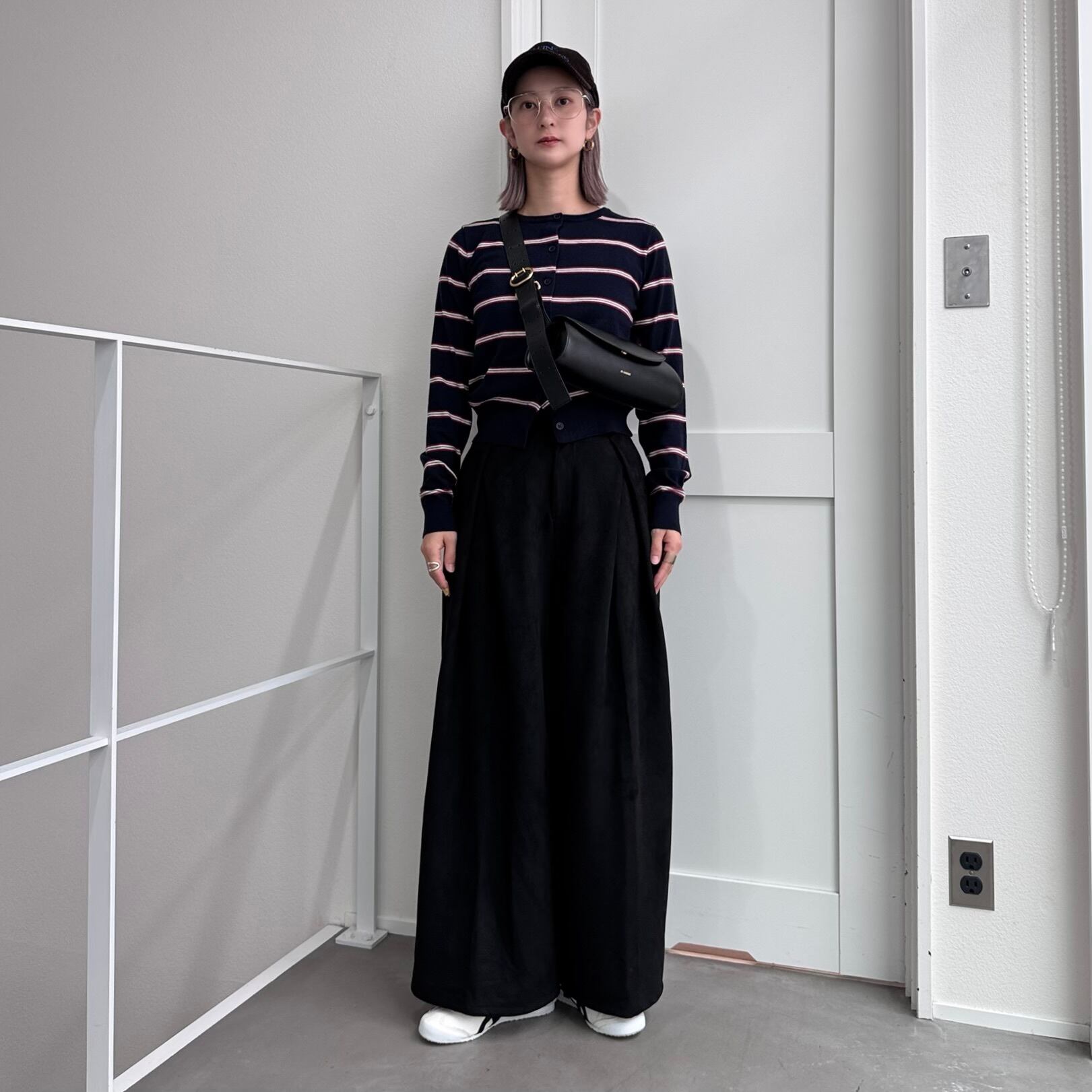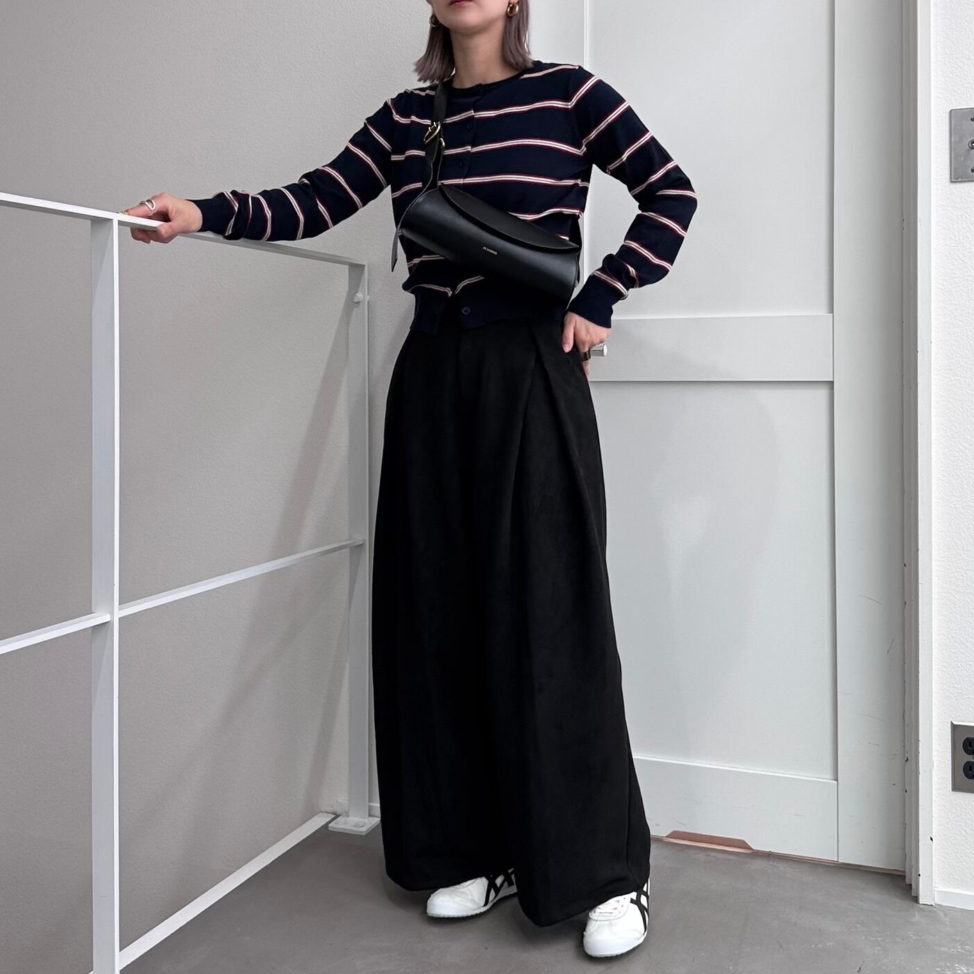 しっとり滑らかな肌触りのピーチスキン素材を使用したタックワイドパンツ。マットな風合いなので大人な上品さも兼ね備えています。フロントタック入りなので腰回りをカバーしつつワイドシルエットなので脚長効果も。後ウエストはゴム入りなのでサイズ調節も可能です。