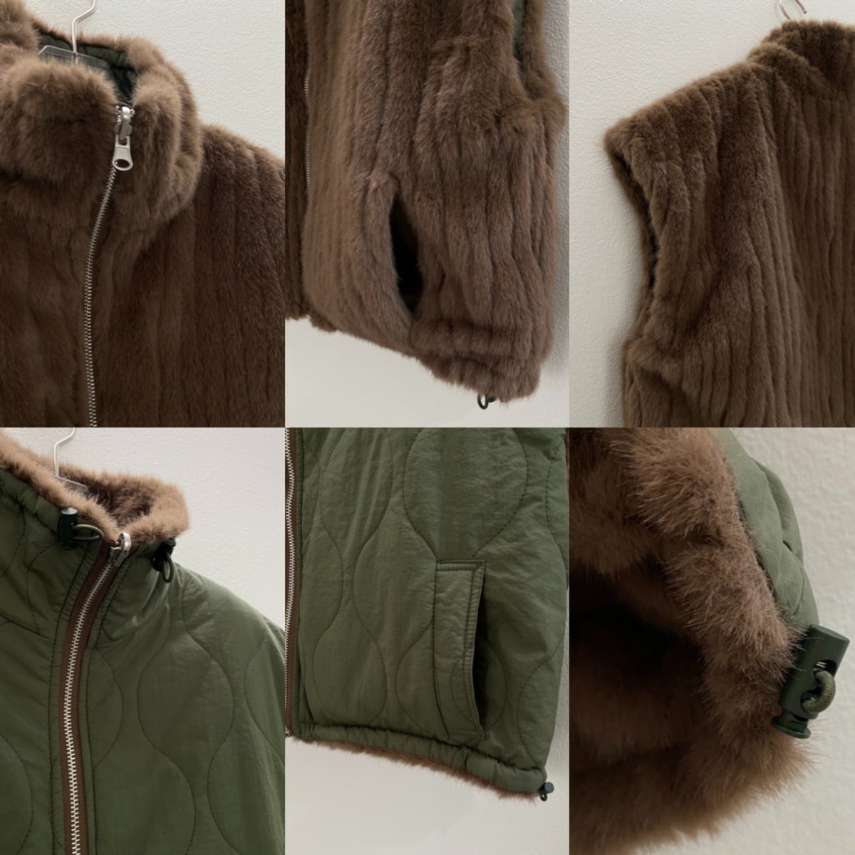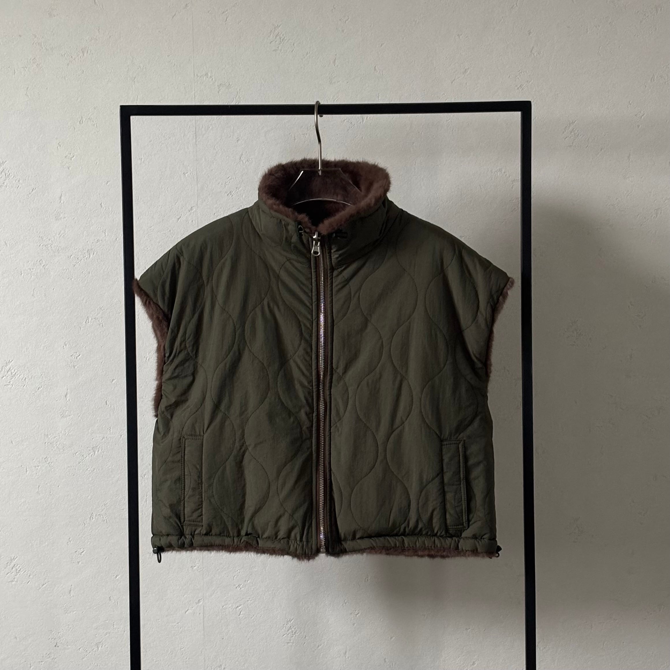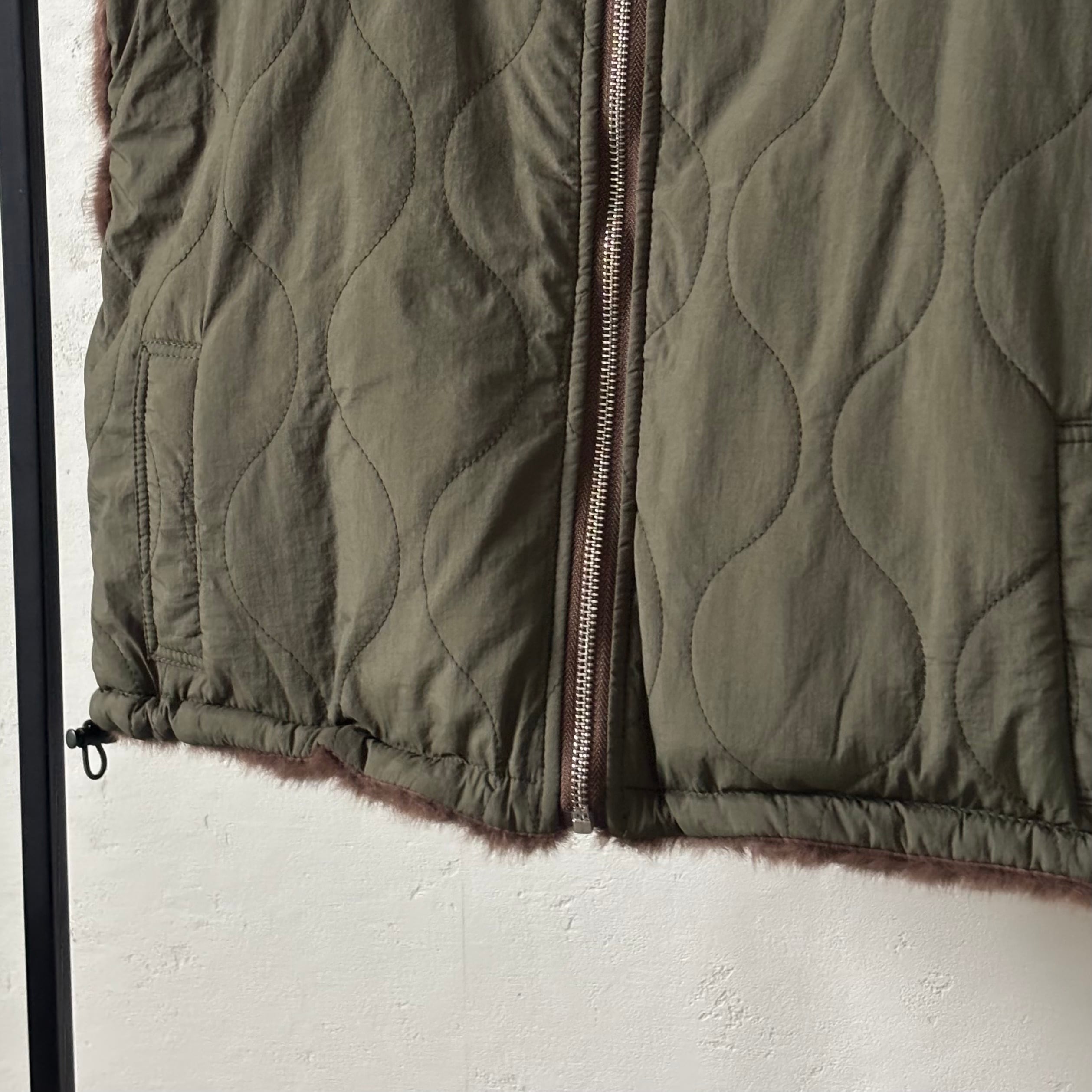 【受注予約:11月下旬入荷予定】キルティングファーショートvest/モカ×カーキ