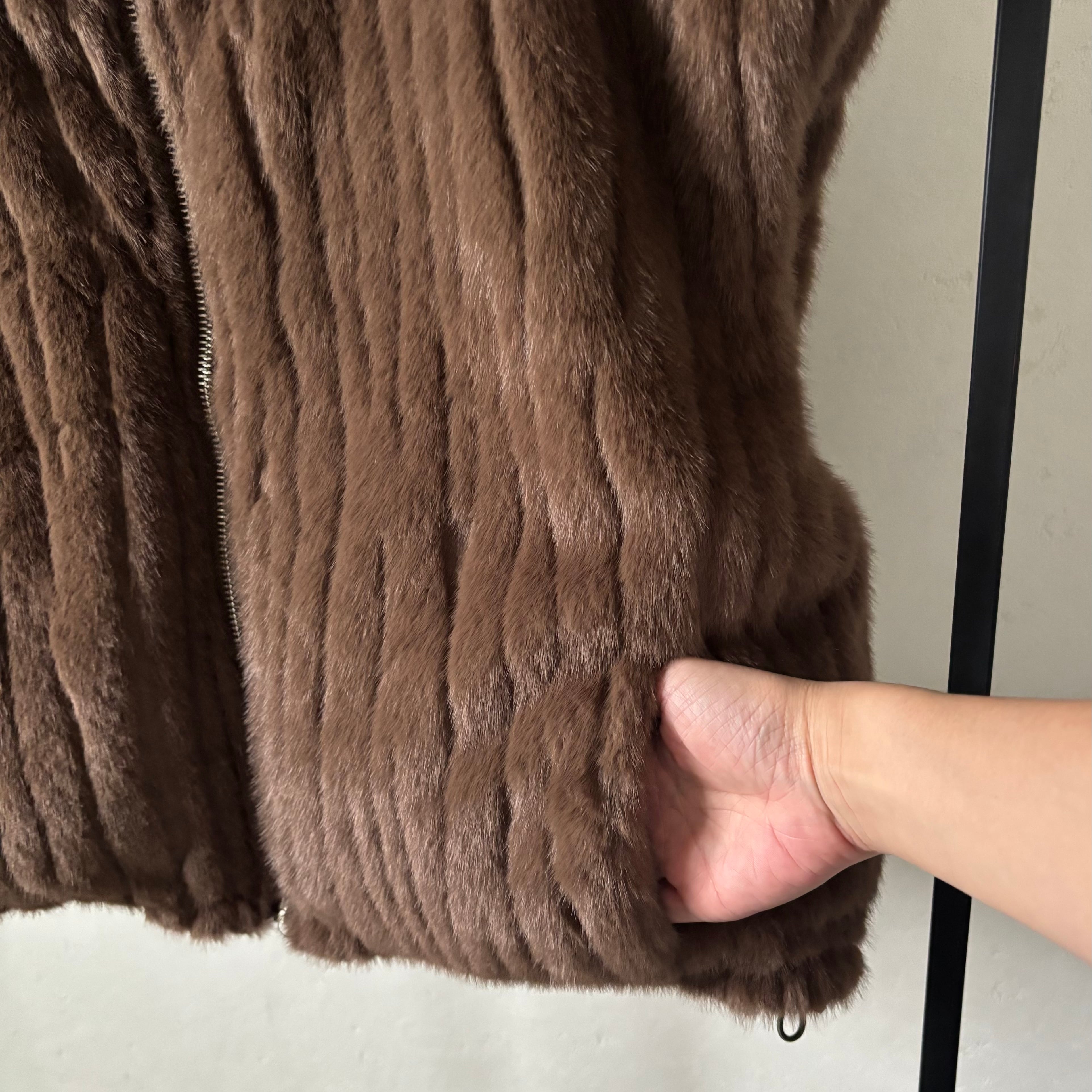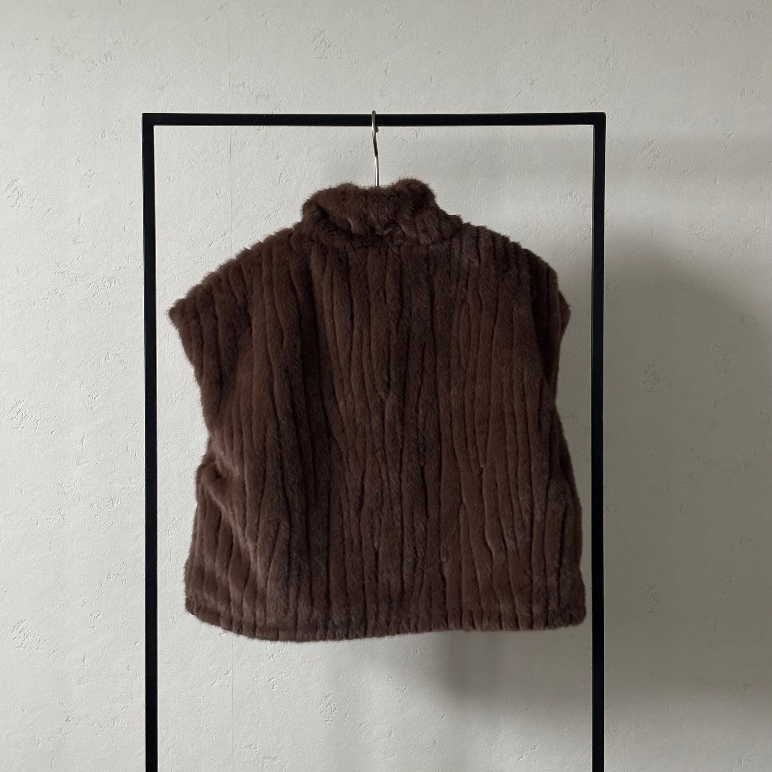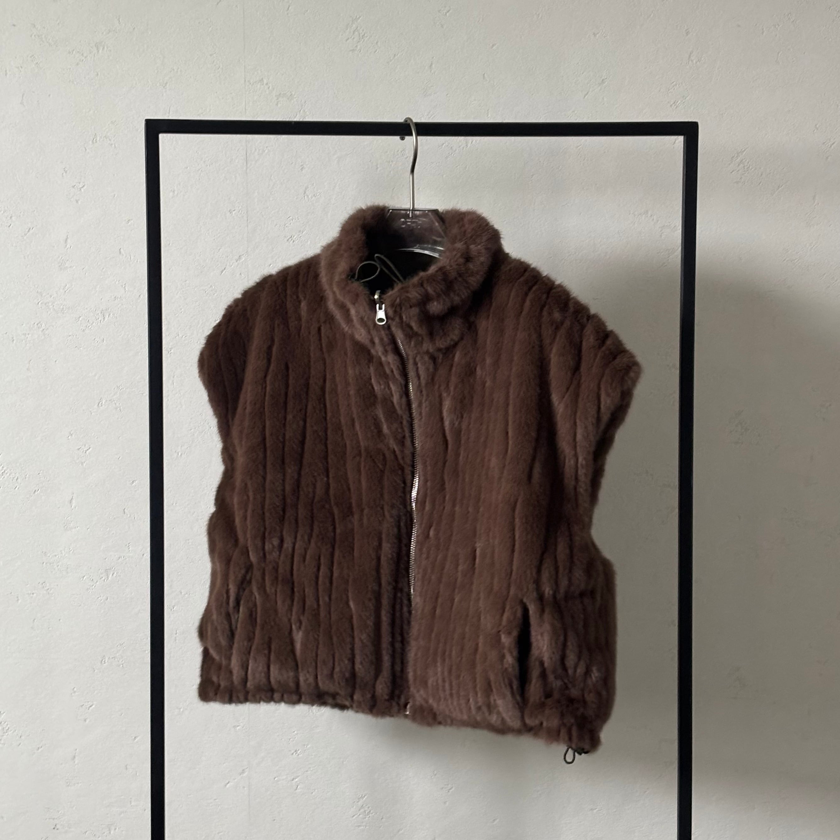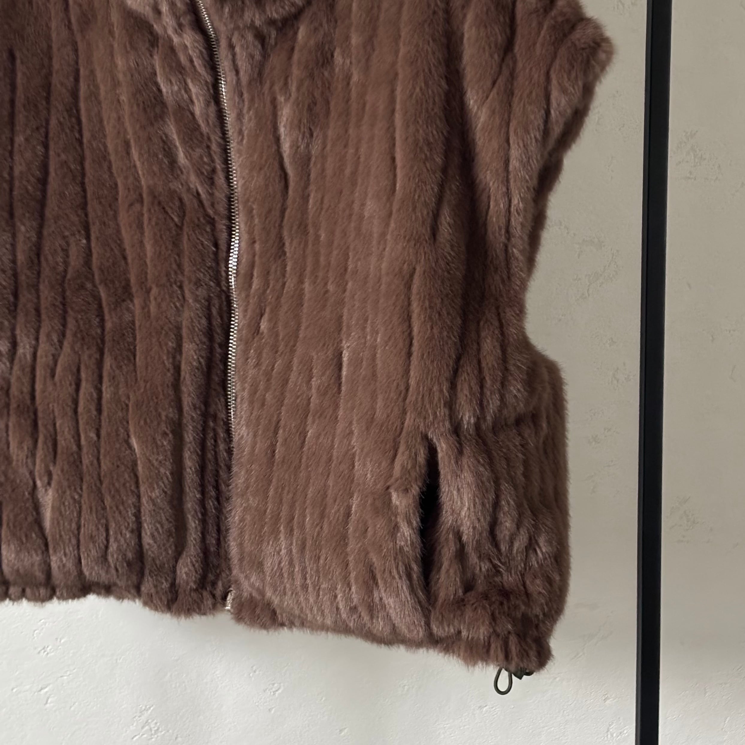 【受注予約:11月下旬入荷予定】キルティングファーショートvest/モカ×カーキ