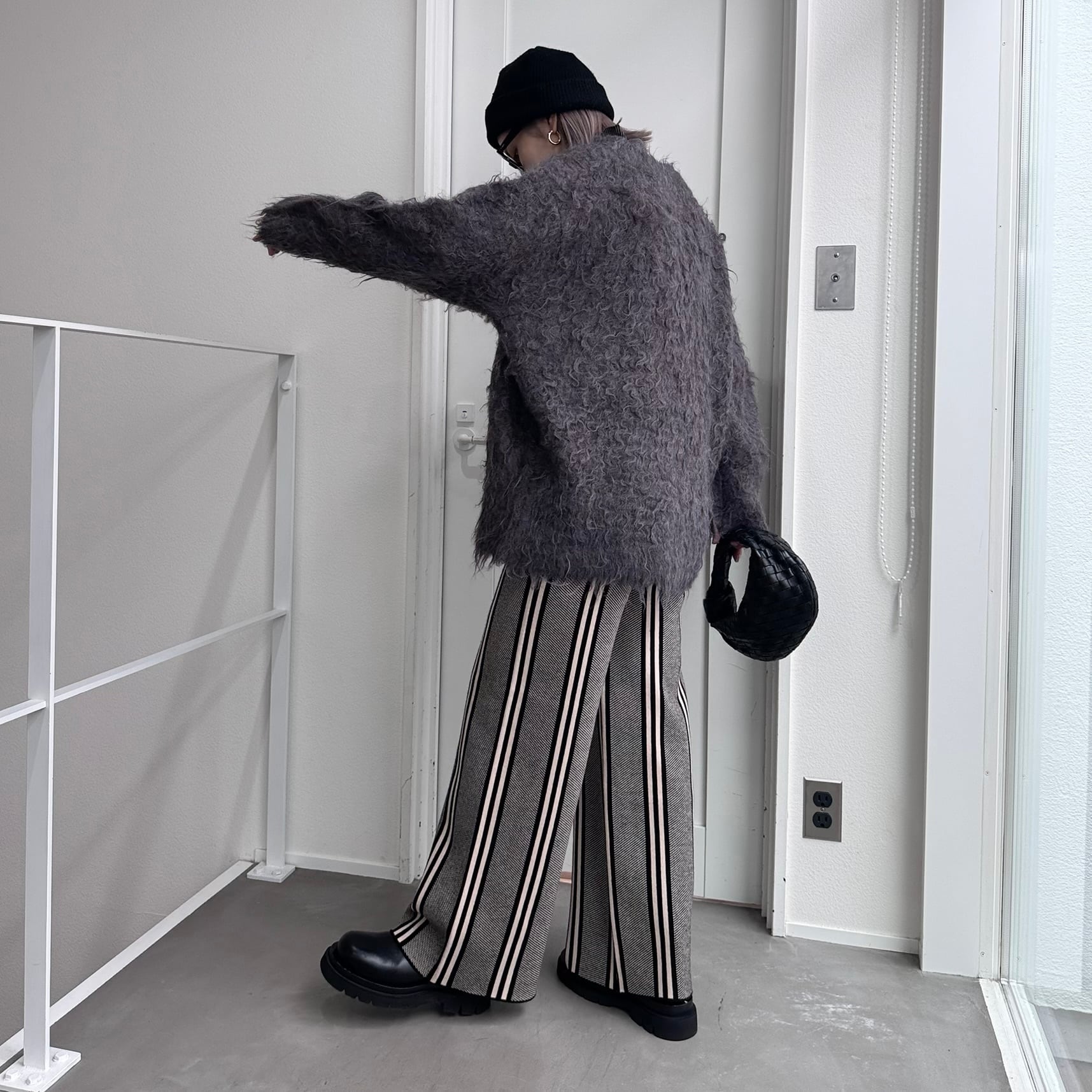 【予約:11月下旬入荷予定】ストライプデザインニットPT/ブラック