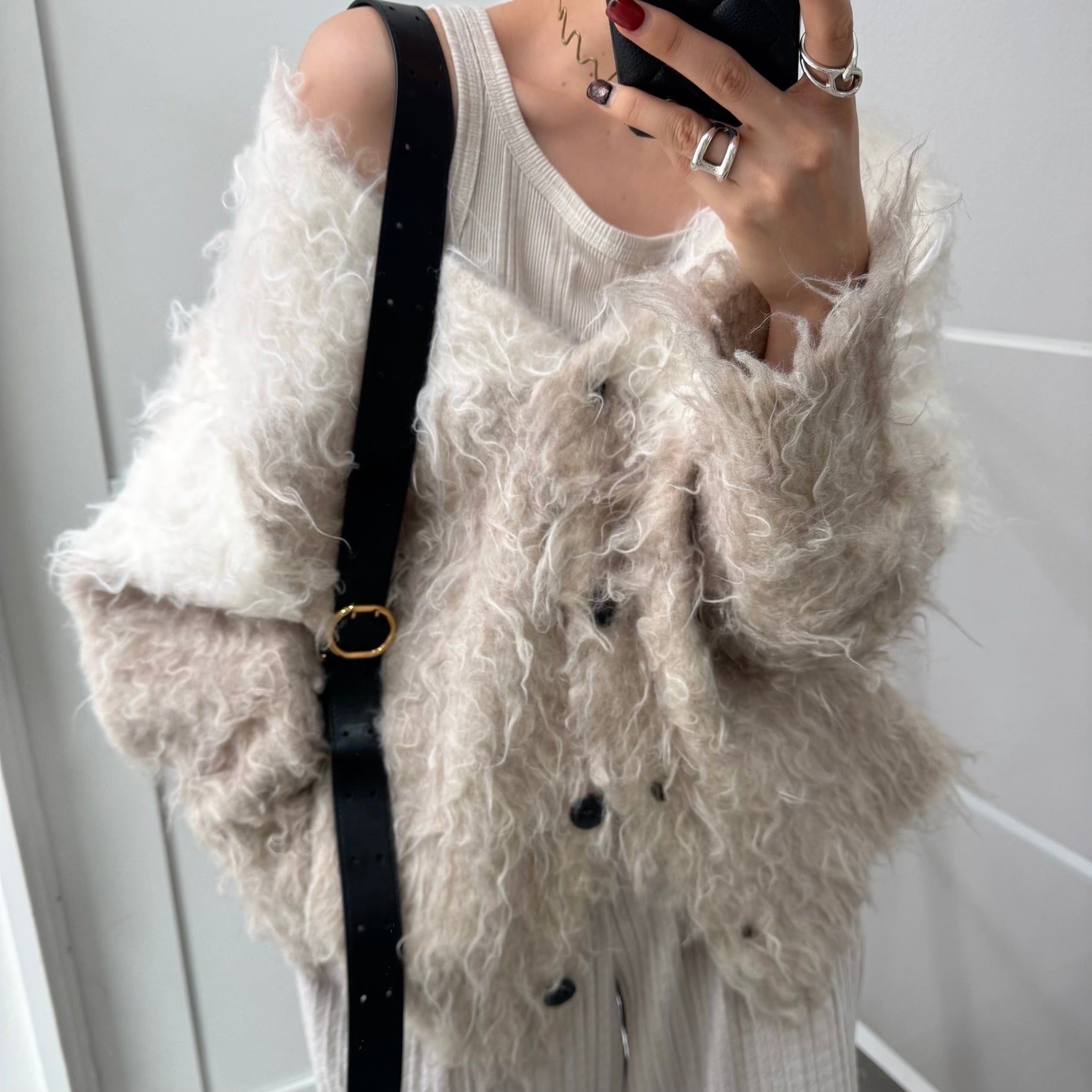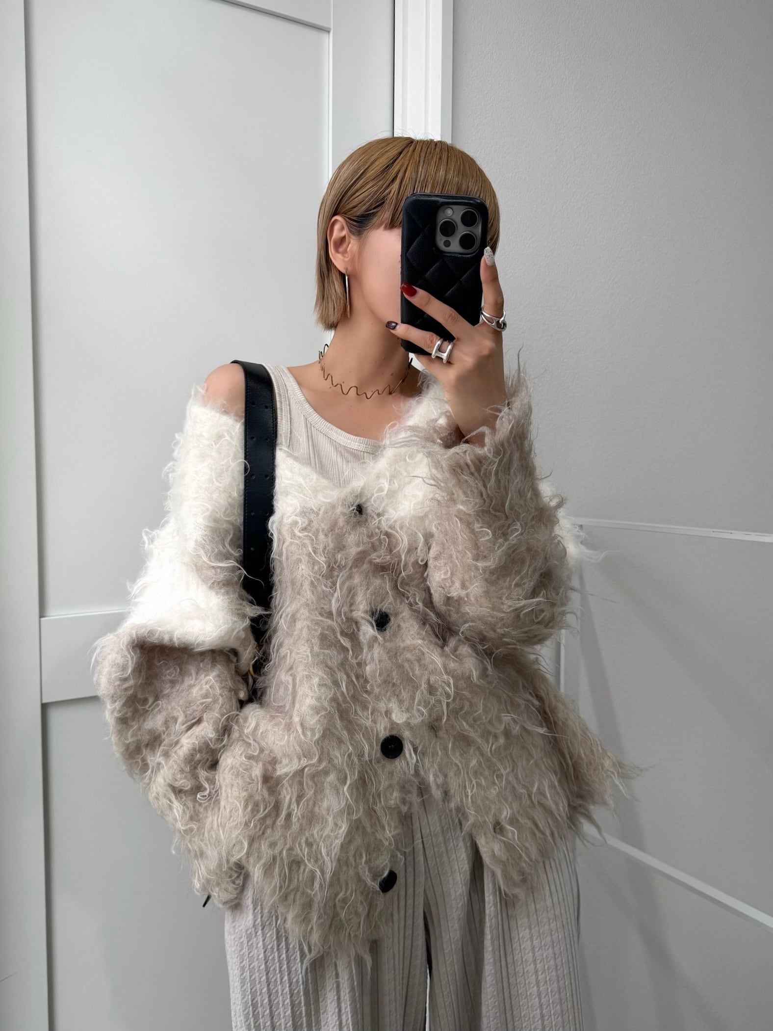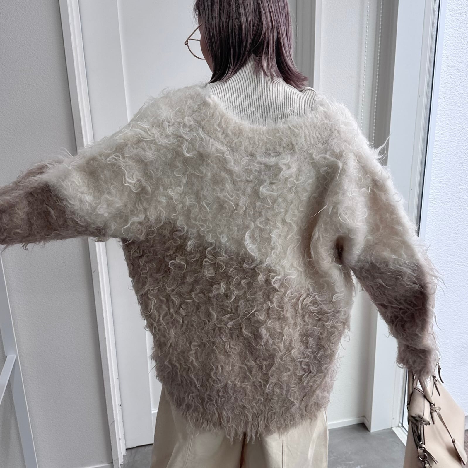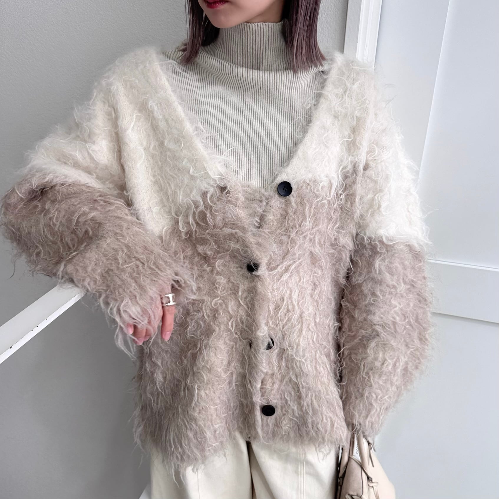 【受注予約:11月下旬入荷予定】VネックシャギーニットCD/ベージュホワイト
