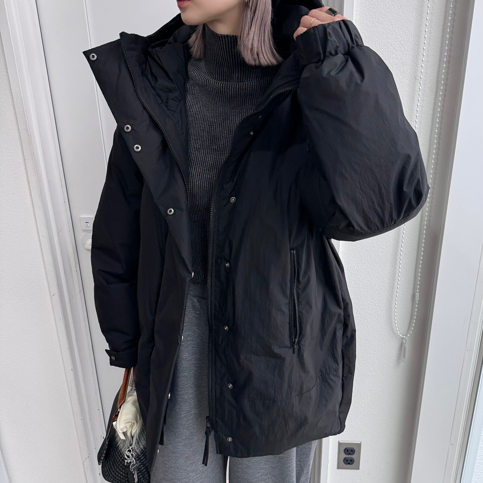 ミディアム丈が扱いやすい中綿コート。裾は程よくコクーンシルエットなので着膨れしないバランスにしています。袖口幅はボタンで調節可能。ボタンやコードエンドなど付属にもこだわり、大人な雰囲気に仕上げています。中綿はSORONA(保温性のある中綿)を使用していてポリエステル中綿に比べて2倍の柔らかさ、保温性があります。さらにキックバックに優れ型崩れしにくい嬉しい機能性も◎ いつものスタイリングに羽織るだけで、今年らしいスタイルに仕上がります。