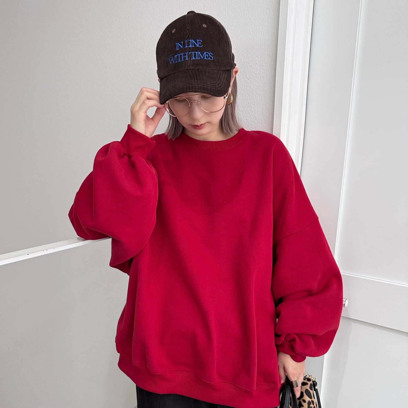 ボリュームシルエットスウェットPO/レッド