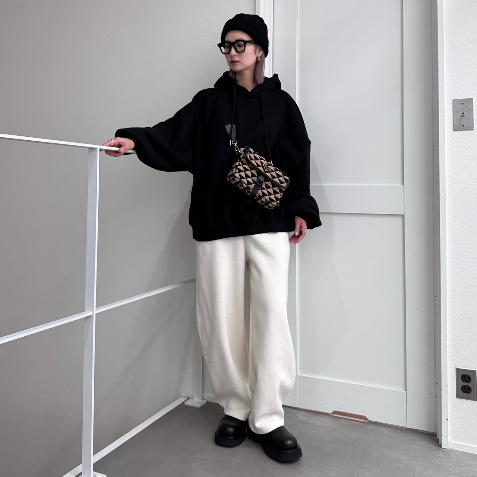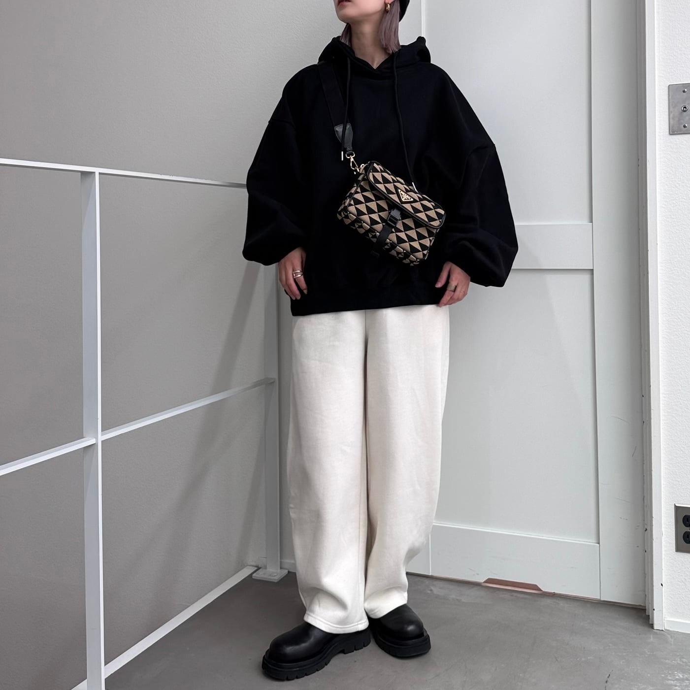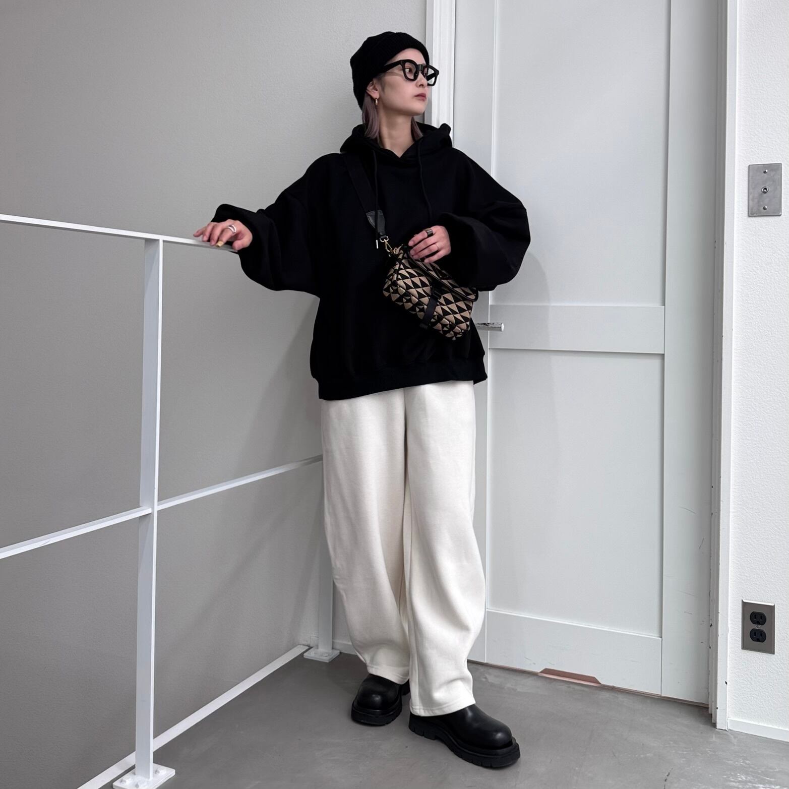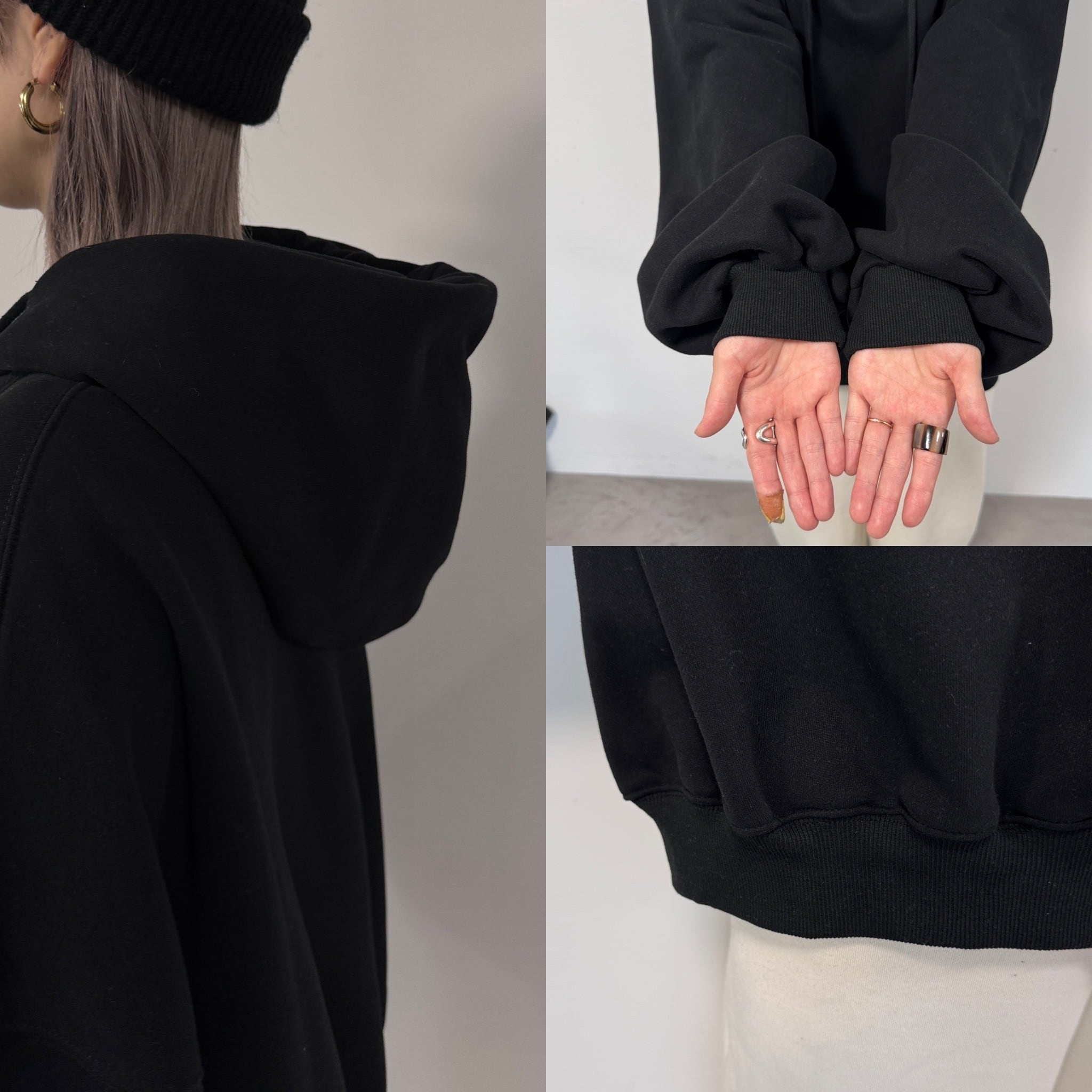 フーディーボリュームシルエットSW/ブラック