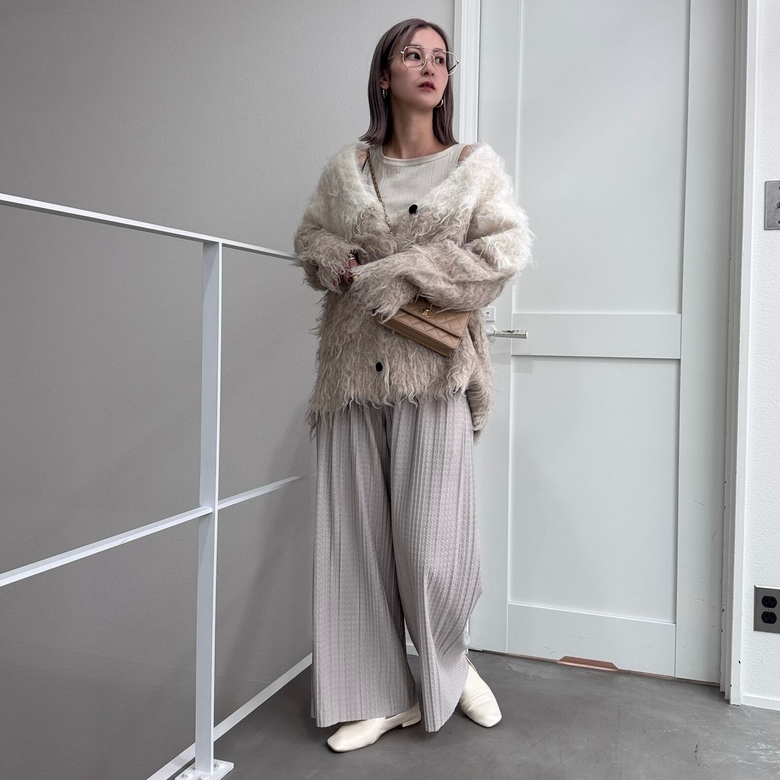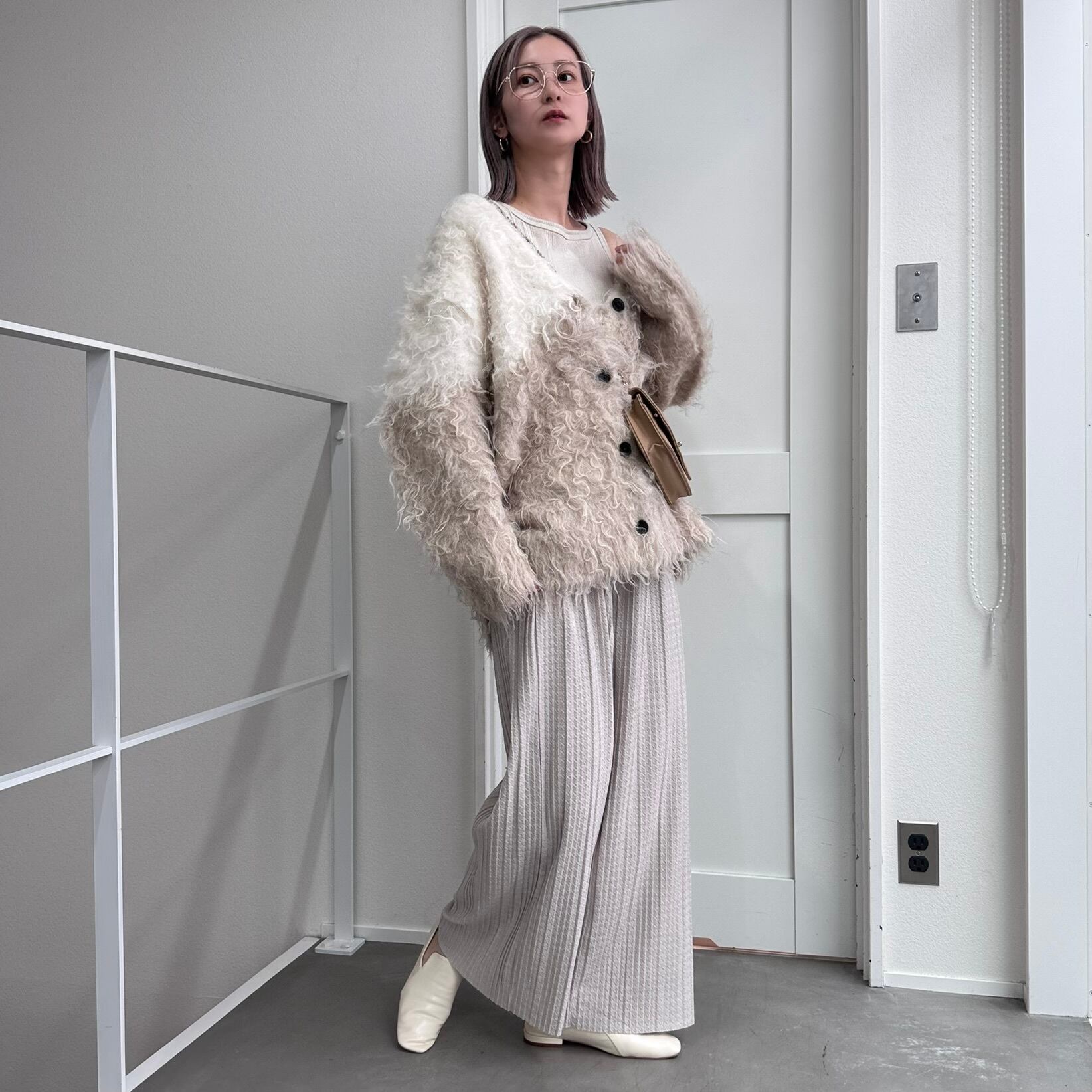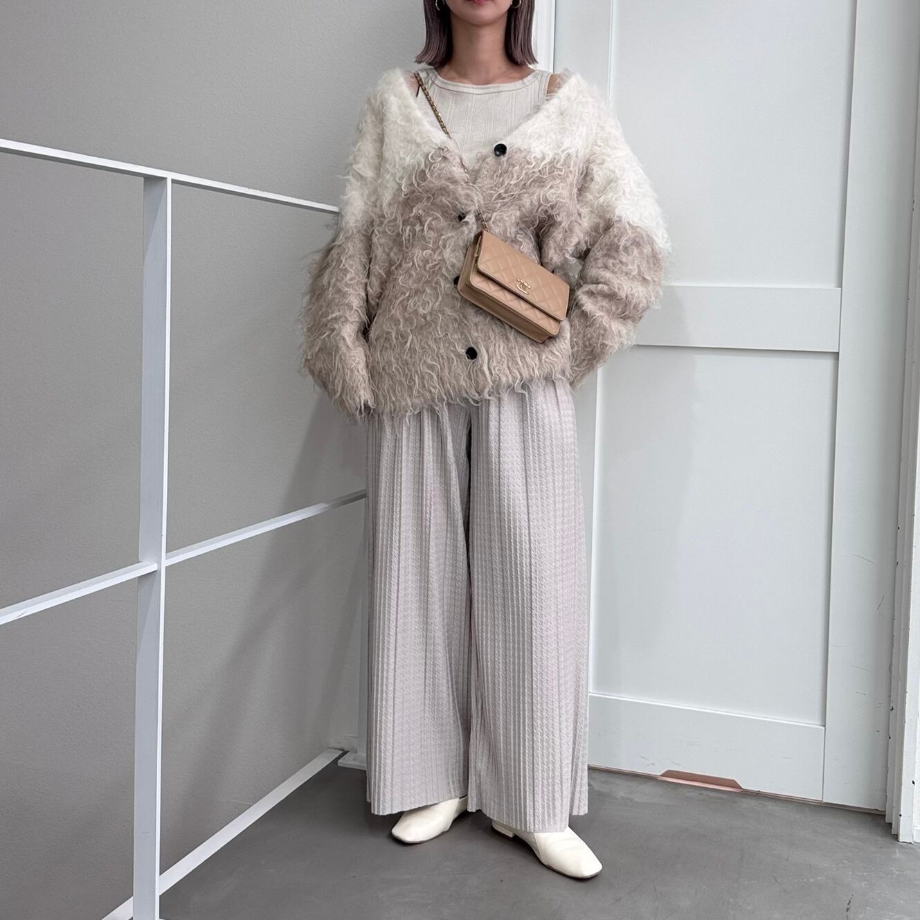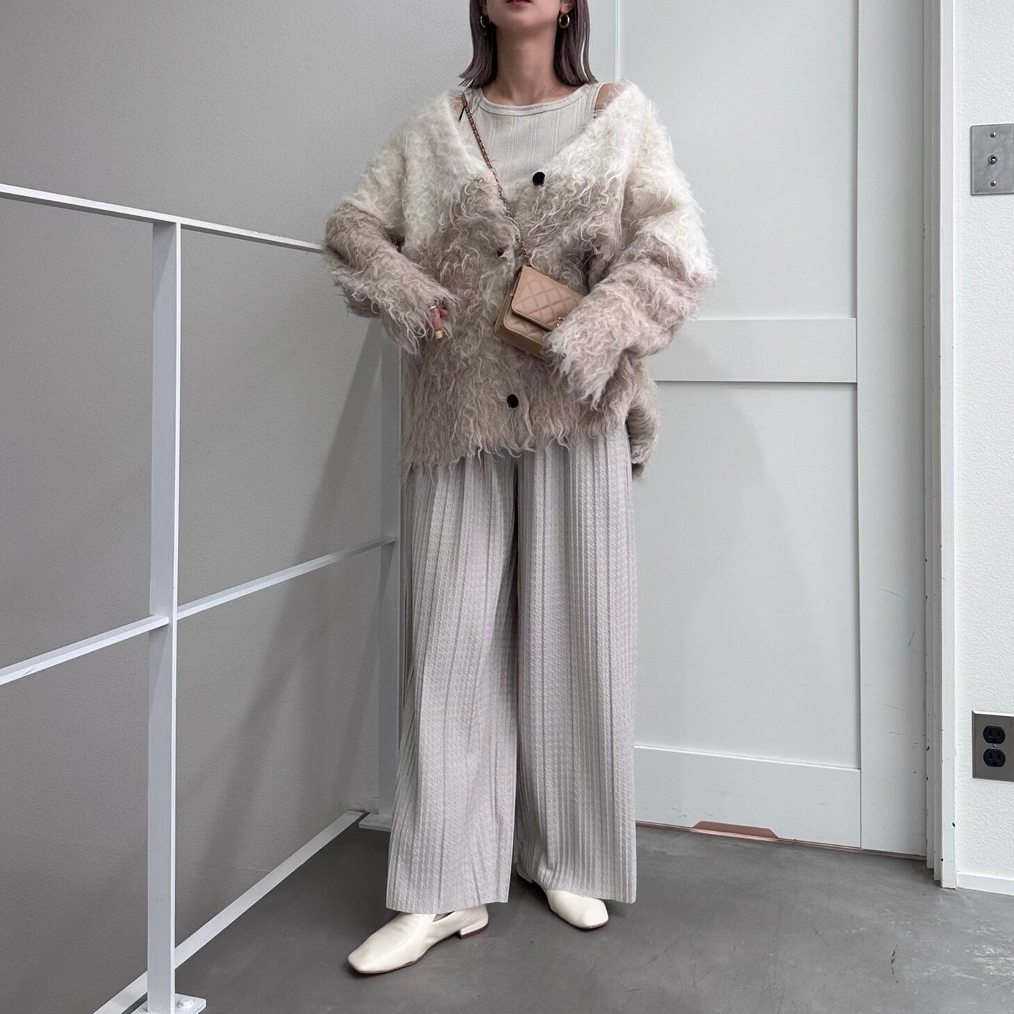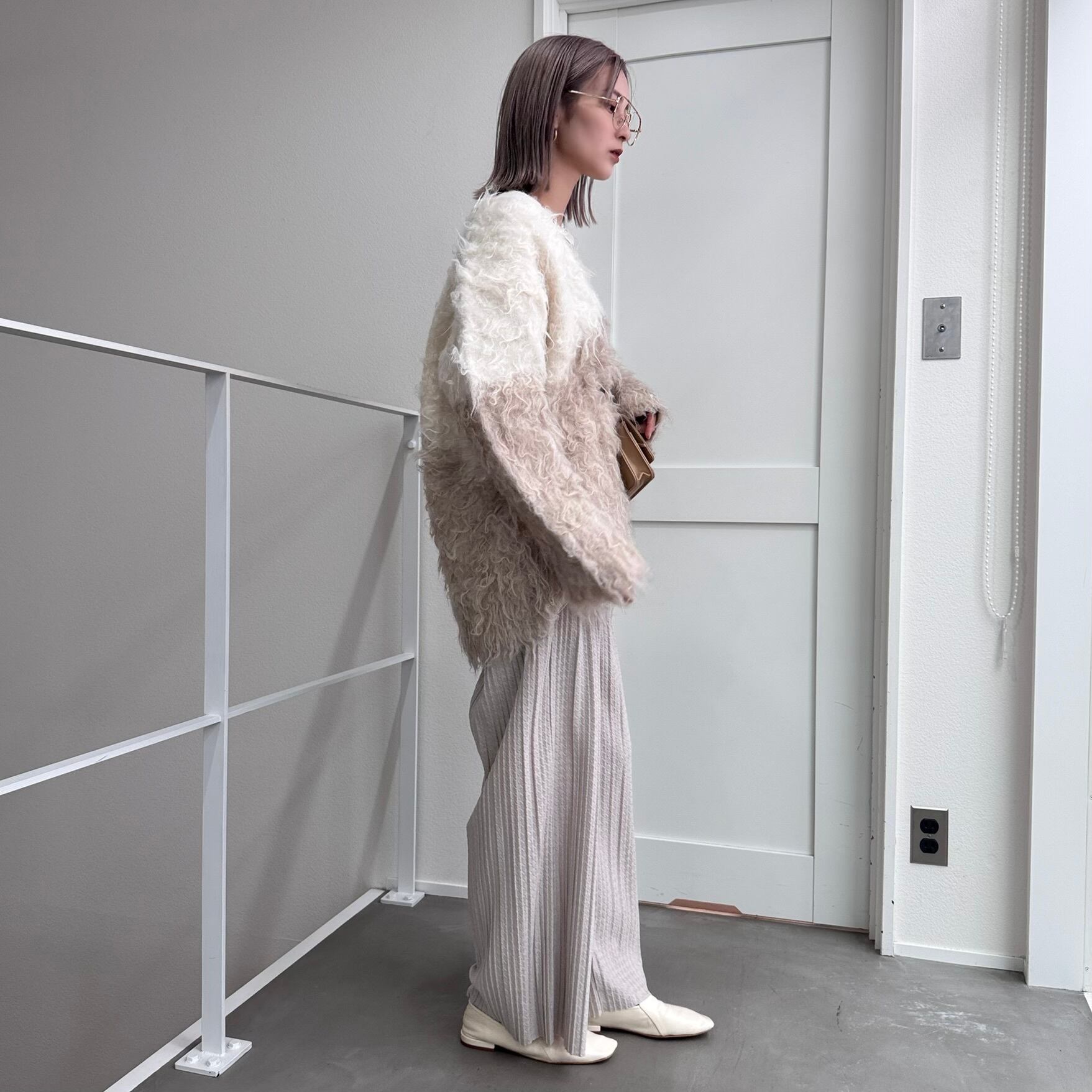 outer:VネックシャギーニットCD/ベージュホワイト
