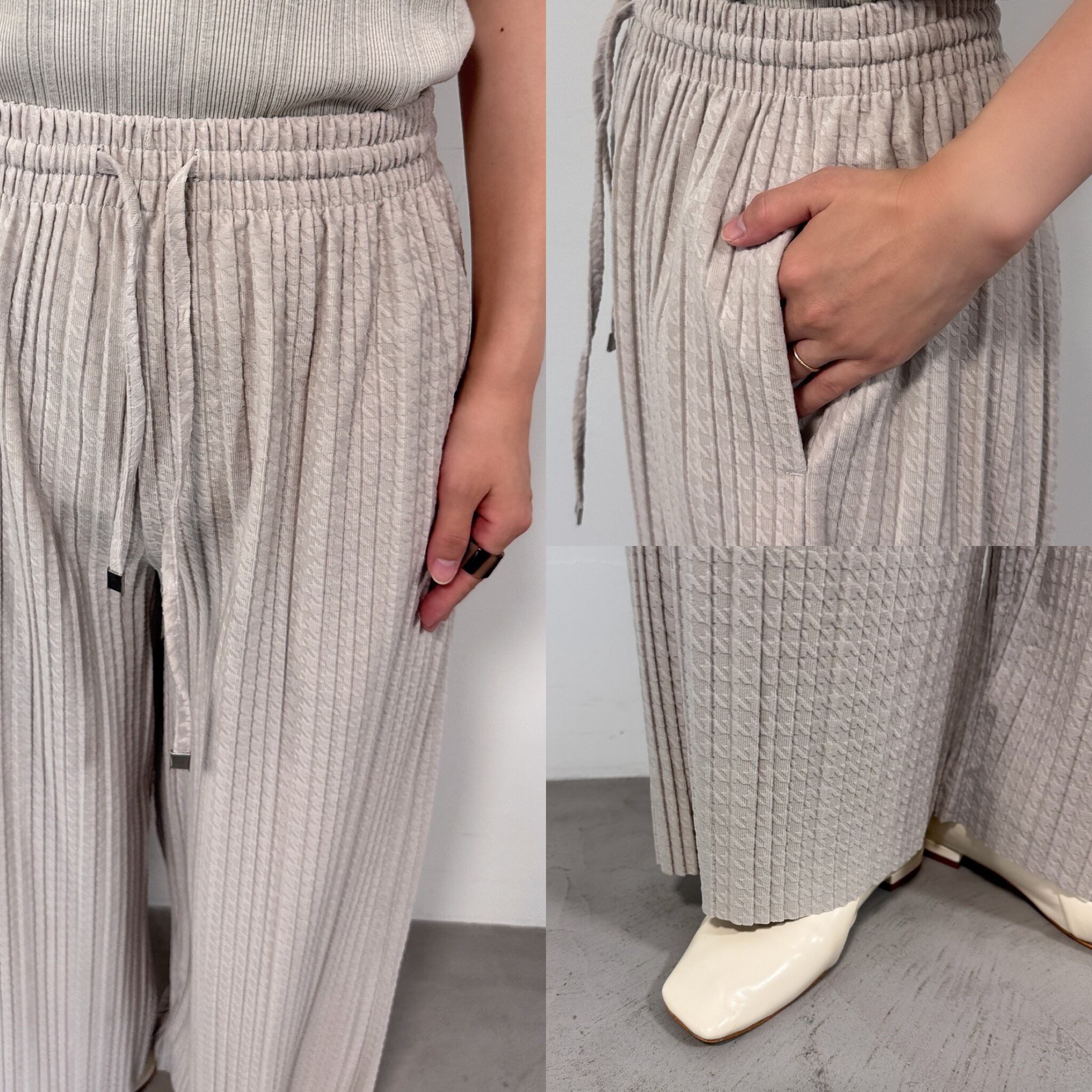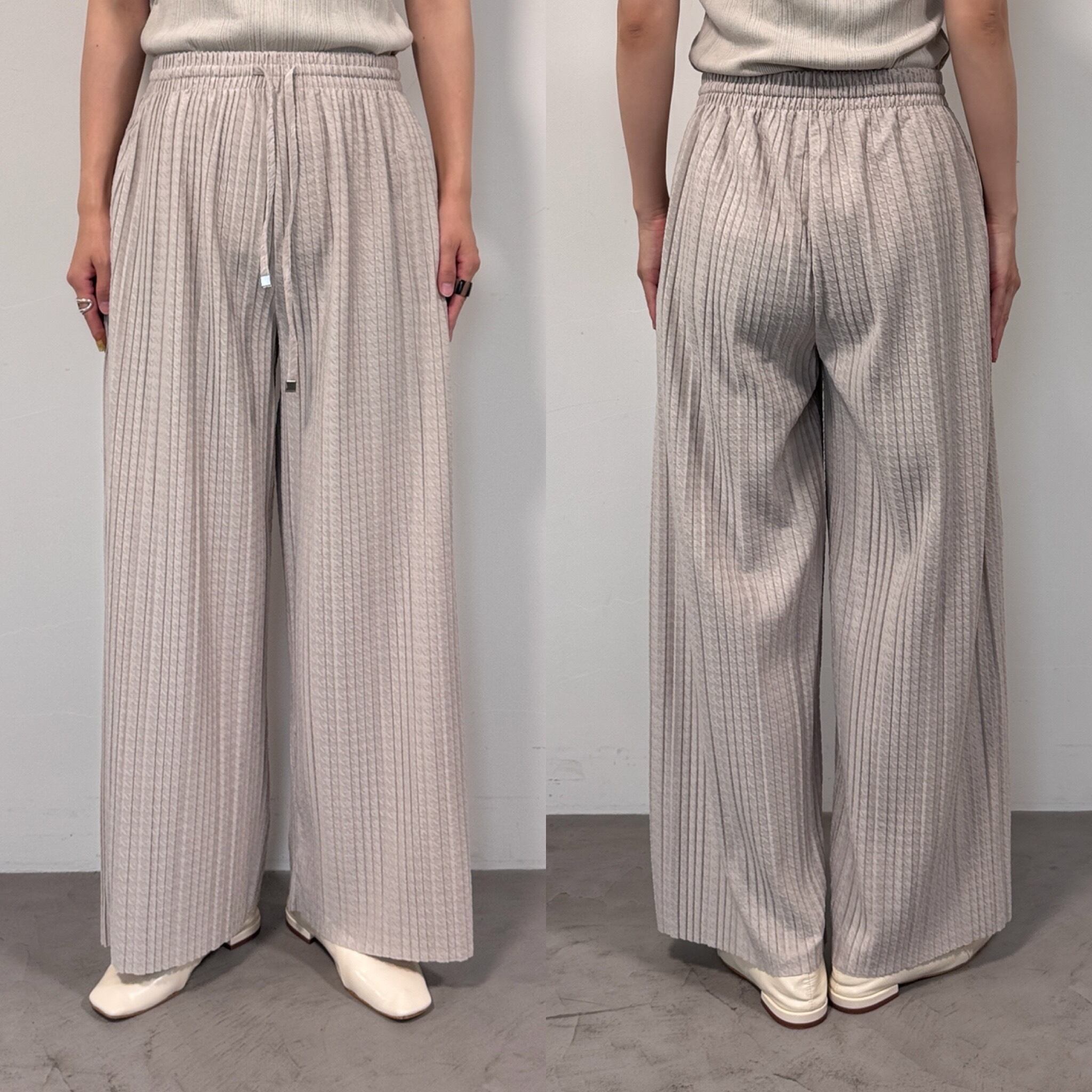 千鳥柄ランダムプリーツPT/エクリュ