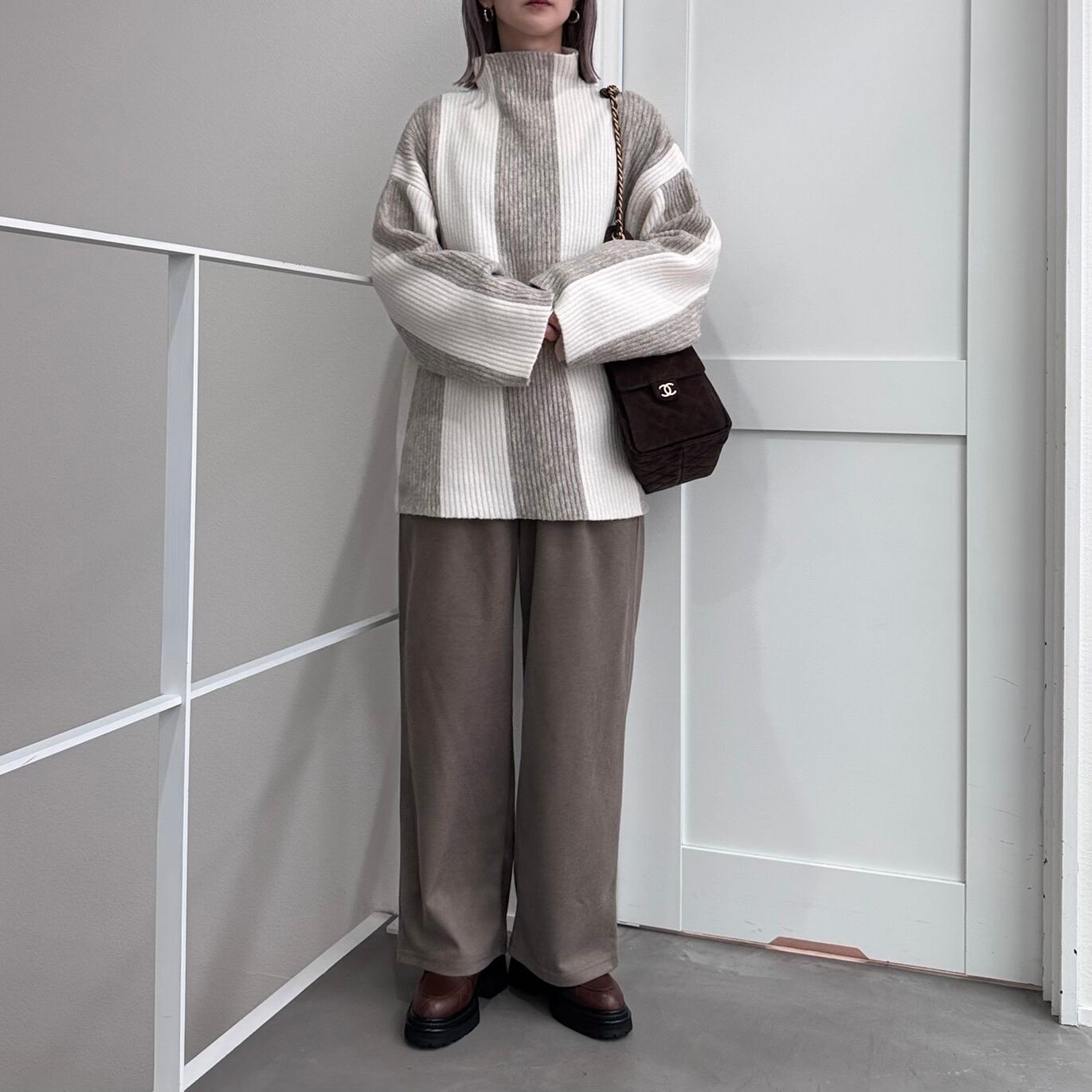 tops:オーバーラインニットボトルネックPO/エクリュ