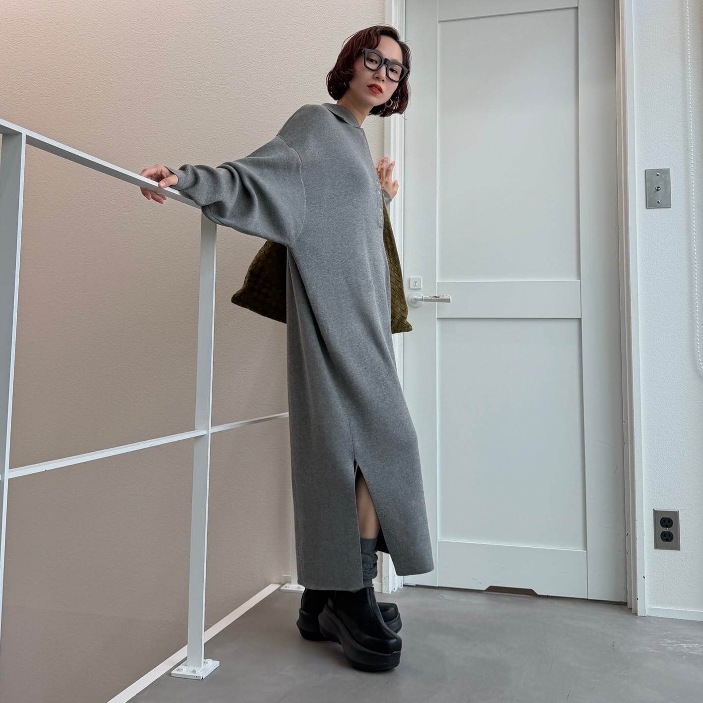 ポロニットロングOP/グレー