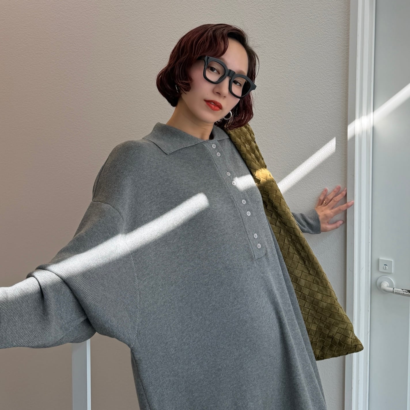 ドルマンシルエットのゆったりとしたポロニットワンピース。総針編みなので生地はしっかりしているのに左右に伸びる為着心地も抜群。かだらのラインも拾わずストレートシルエットなので着やせ効果も◎両サイドにスリットが施されているので足さばきも簡単です。マフラーやベストなど合わせるアイテムで色んな表情のあるコーデが完成します。