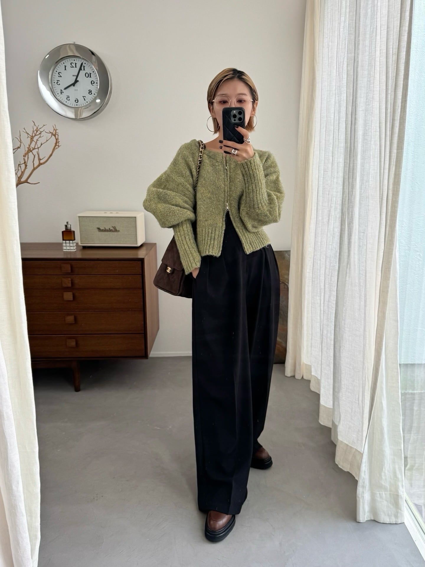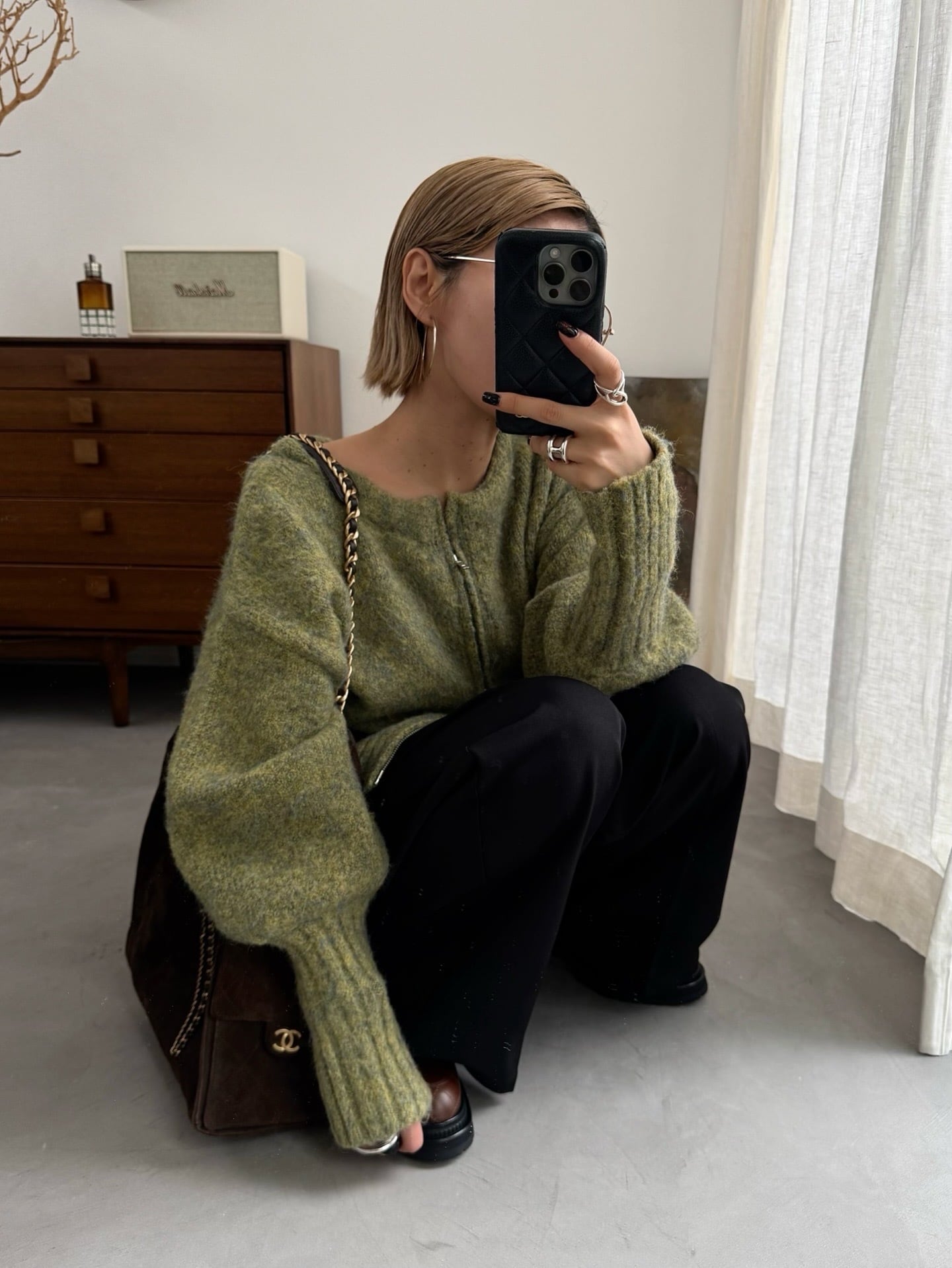 ダブルジップデザインがトレンド感抜群。前後2wayでマルチな着こなしが楽しめるカーディガン。mixされたカラーの色味が心くすぐる表情豊かなニットアイテム。カフス部分はきゅっと長めデザインでお袖ボリューム感が魅力。ジップの開き具合で自由にアレンジを楽しめる万能デザインです。