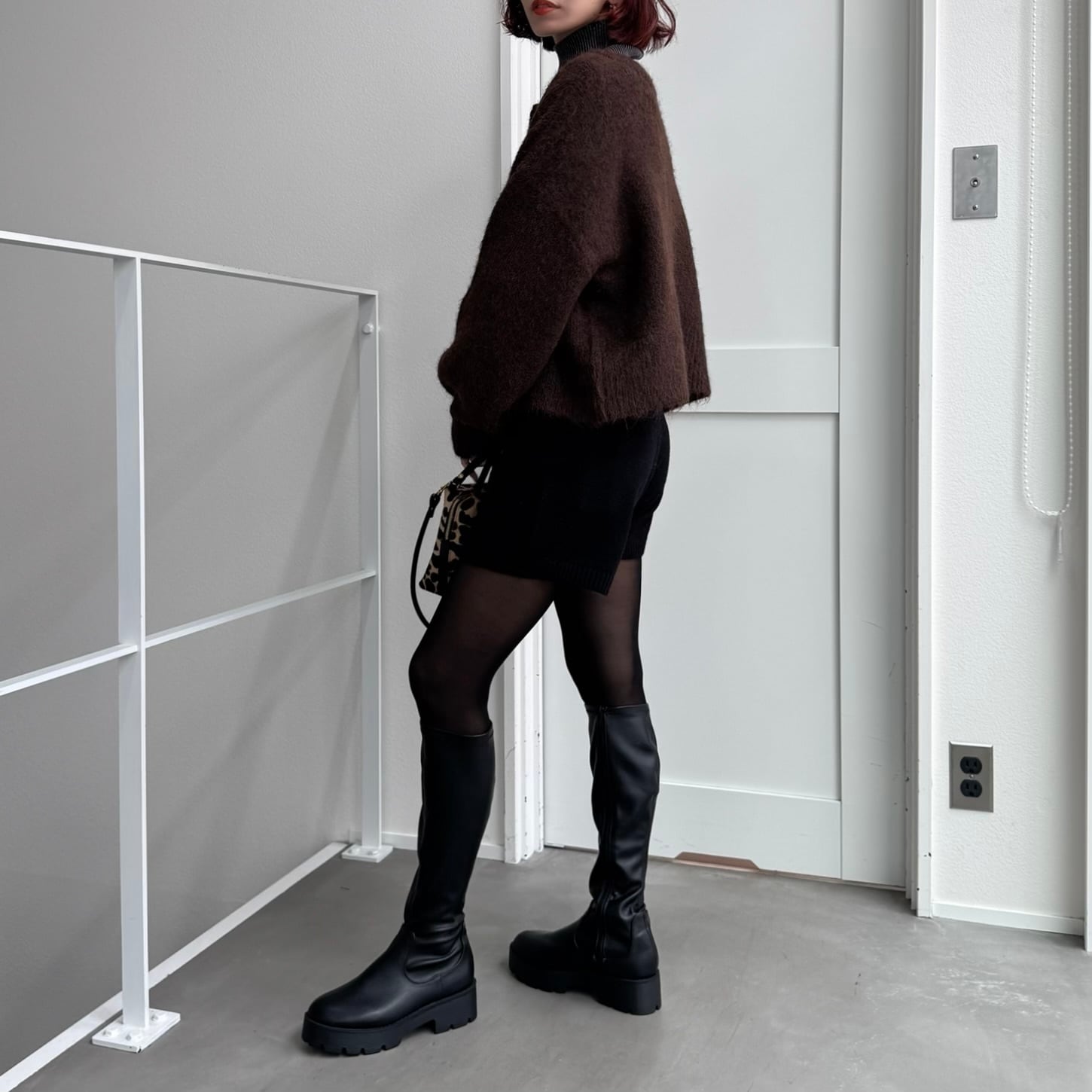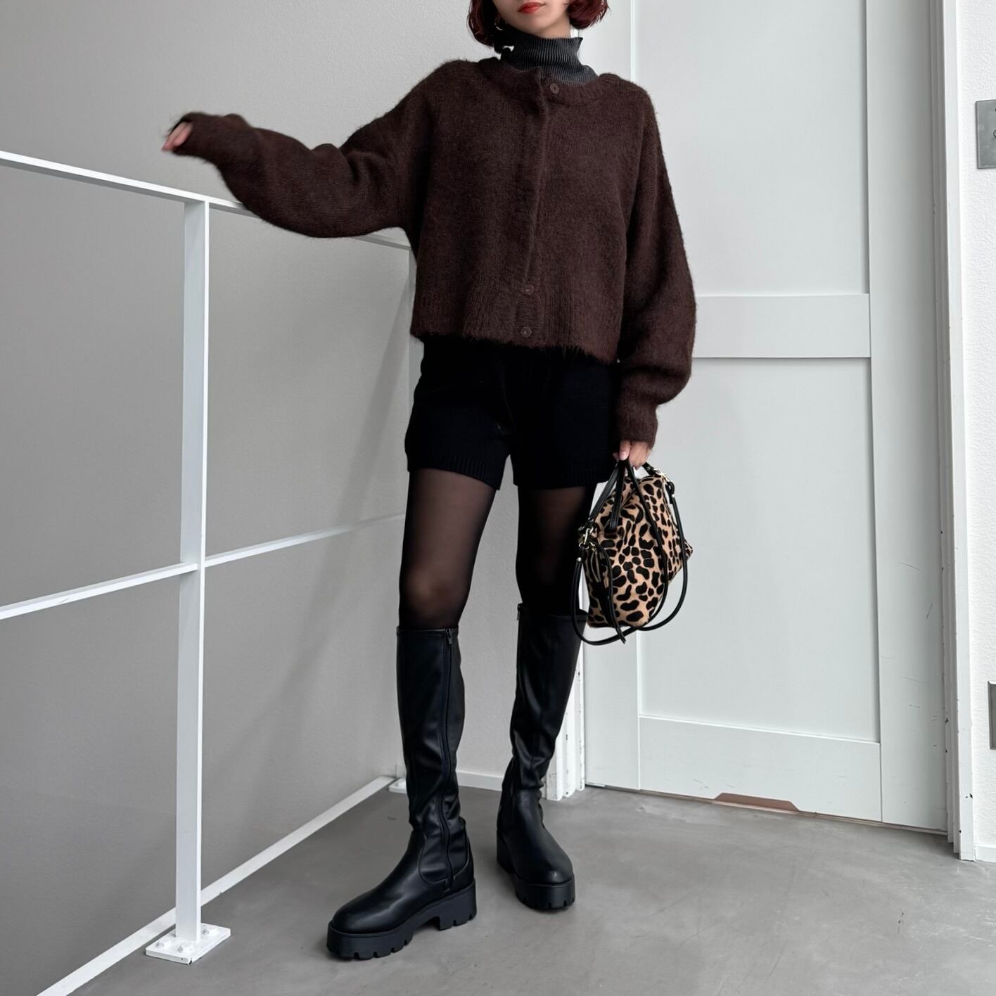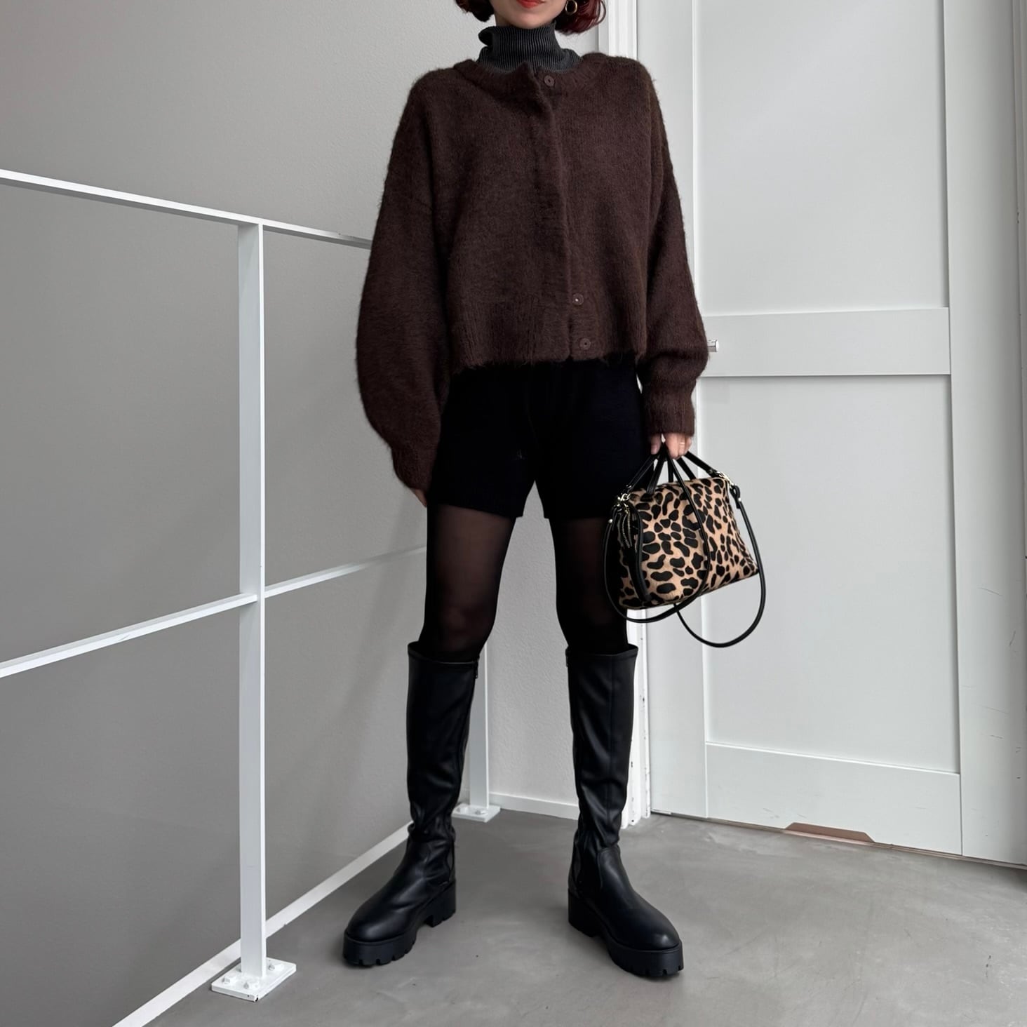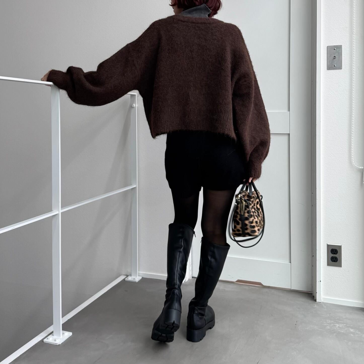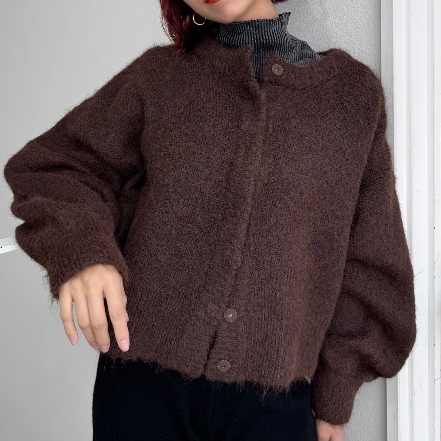 ふわふわとした起毛と、見た目にも暖かいミックス糸の風合いが魅力の2wayニットカーディガン。ゆったりとしたボディは体のラインを拾わずリラックスした着心地です。ワイドな巾と、少しだけ短めの丈感。カーデとしても、ボタン側を後ろにしてプルオーバーのようにも着用できます。合わせるボトムを選ばない絶妙な丈感で、パンツは勿論、ショートパンツ、スカートでもバランス良く着ていただけます。