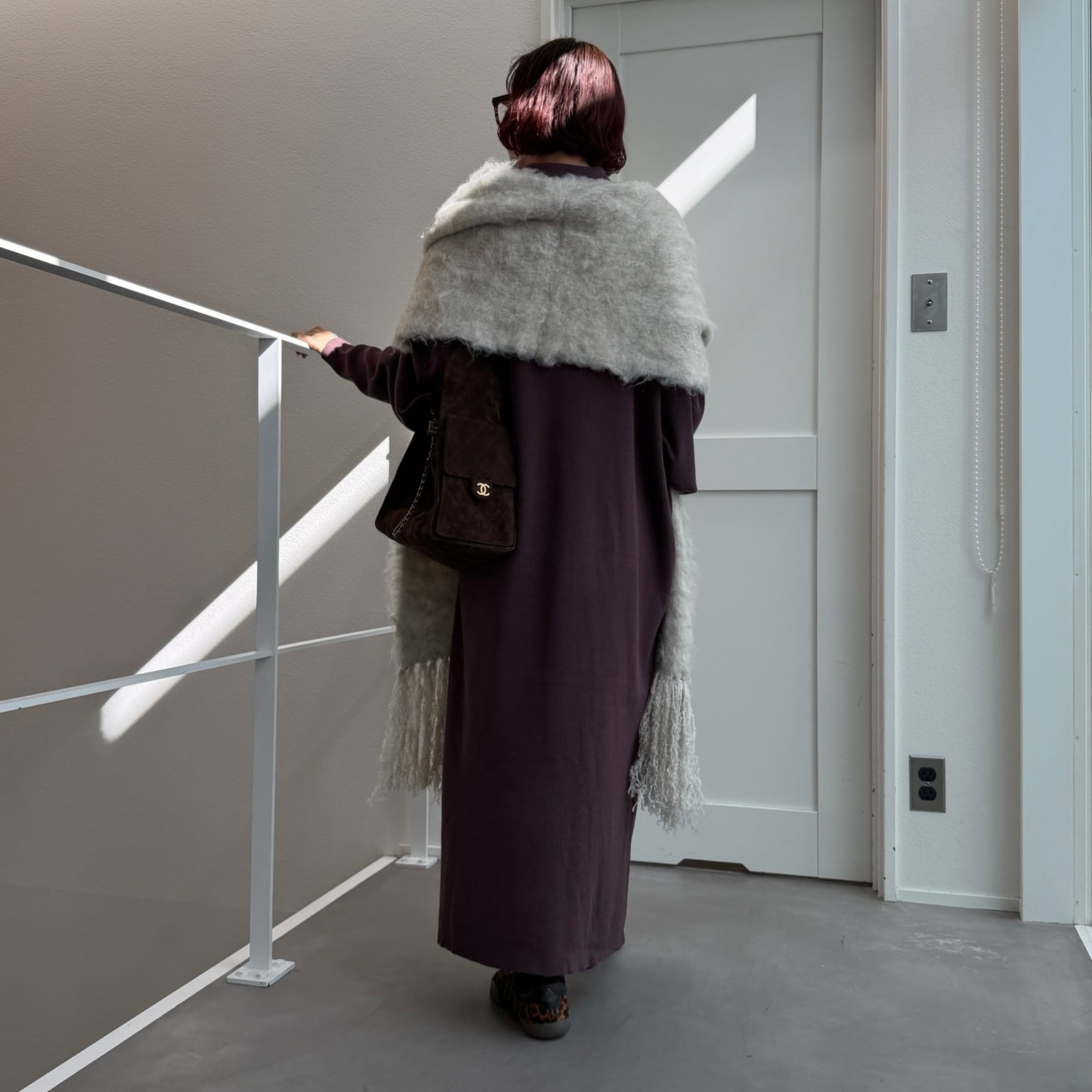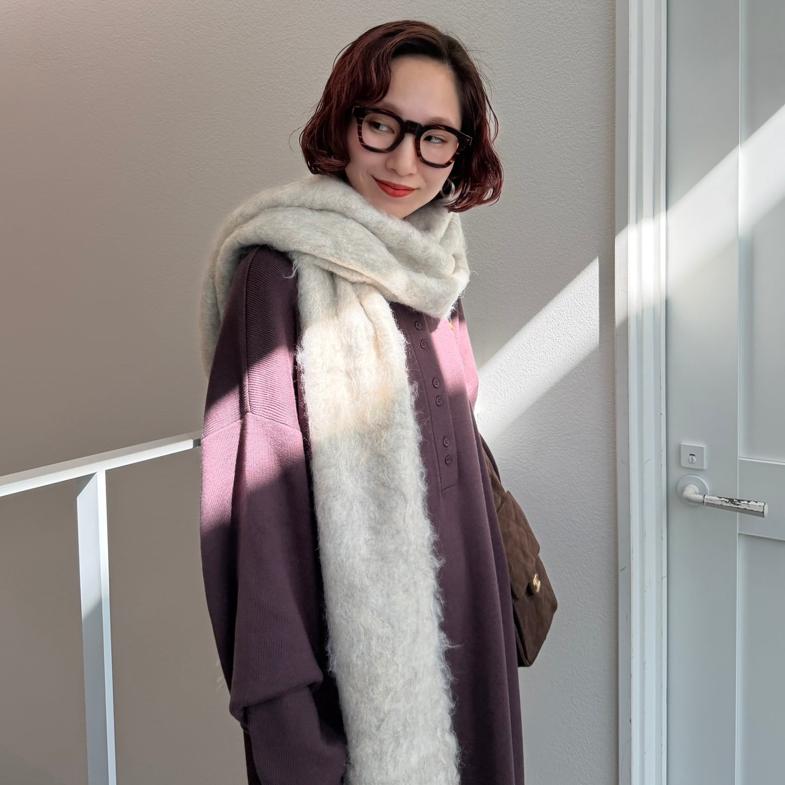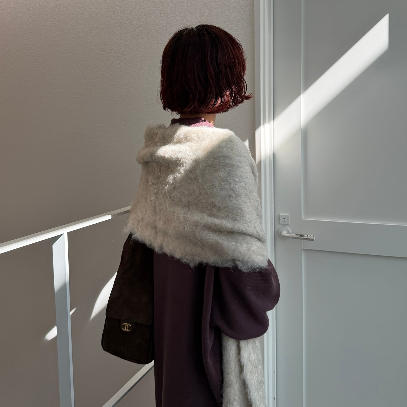 ふんわりと柔らかな、シャギーフリンジストールマフラー。長めのフリンジが、動くたびに表情豊かに揺れ、華やかさをプラスしてくれます。シンプルなデザインで、様々なスタイリングに合わせやすいのも魅力です。巻き方次第で様々な表情を楽しめ、首元にボリュームを持たせると小顔効果も◎ 大きめのサイズなので羽織ったり、ひざ掛けにしたりと寒い季節にぴったり です。