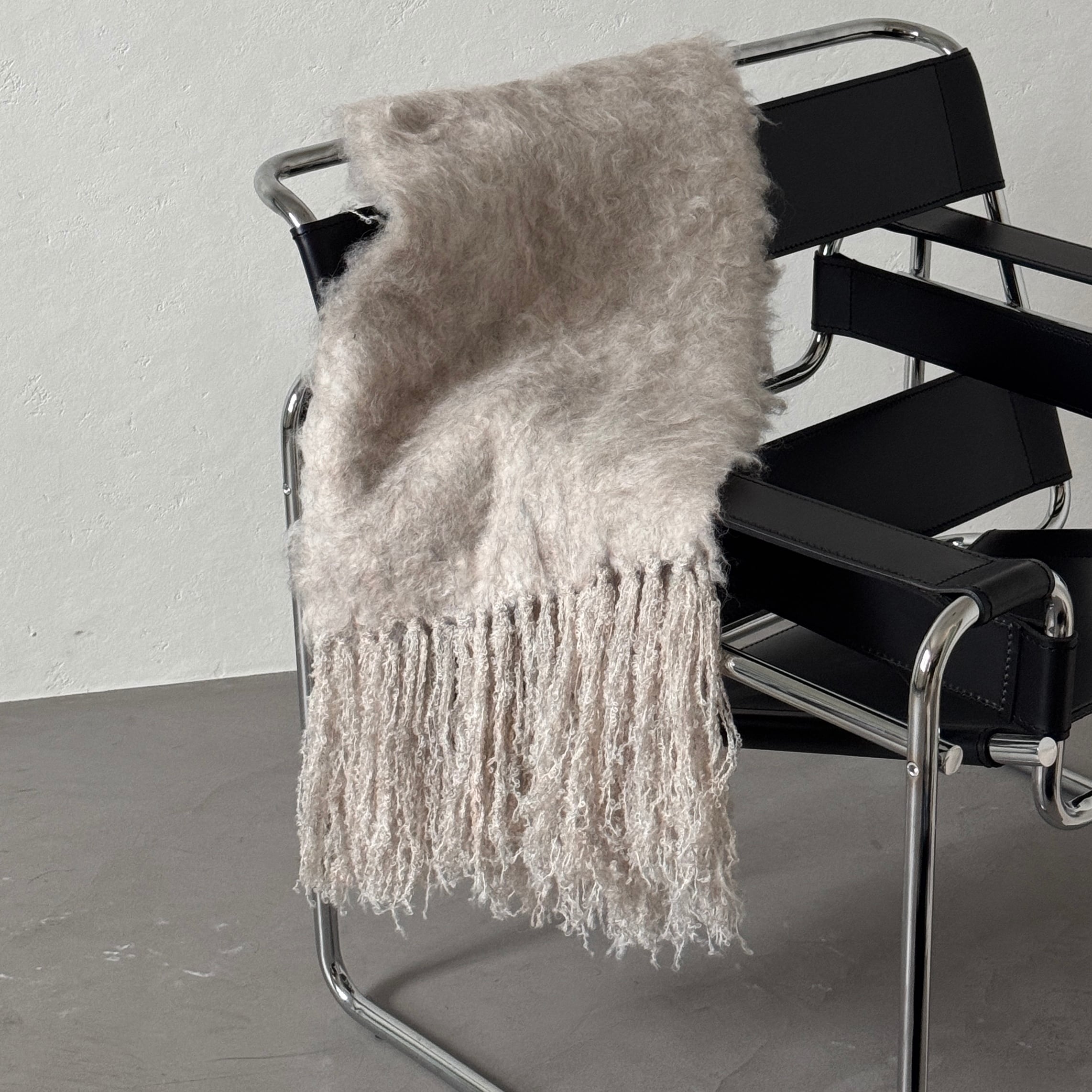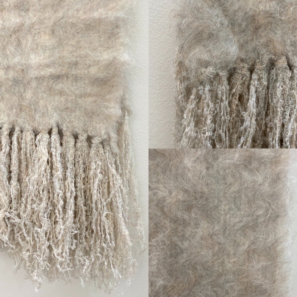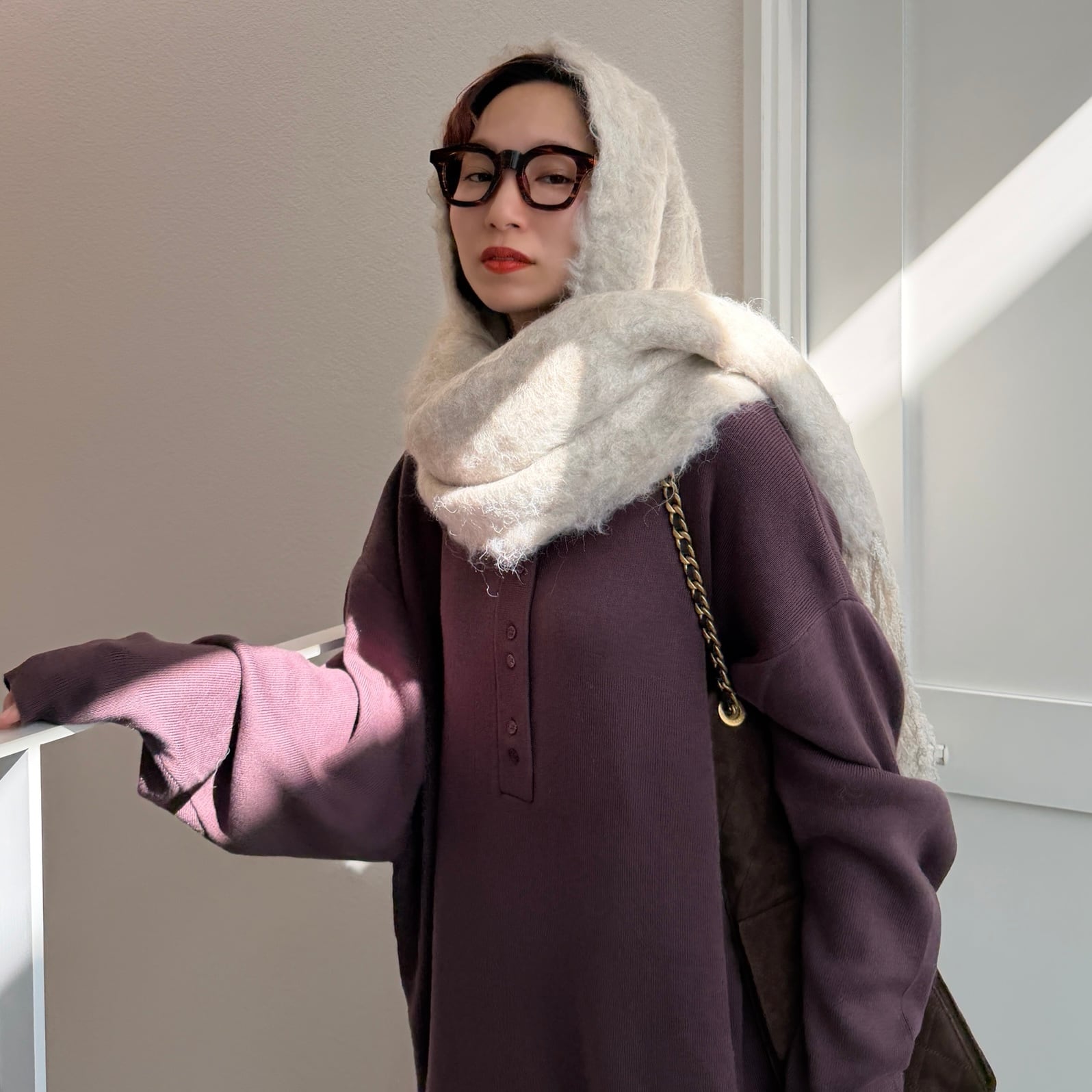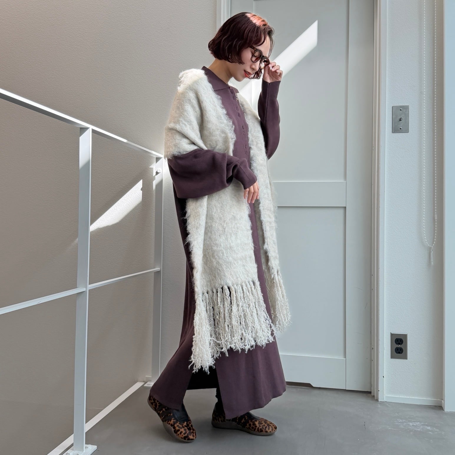 ふんわりと柔らかな、シャギーフリンジストールマフラー。長めのフリンジが、動くたびに表情豊かに揺れ、華やかさをプラスしてくれます。シンプルなデザインで、様々なスタイリングに合わせやすいのも魅力です。巻き方次第で様々な表情を楽しめ、首元にボリュームを持たせると小顔効果も◎ 大きめのサイズなので羽織ったり、ひざ掛けにしたりと寒い季節にぴったり です。