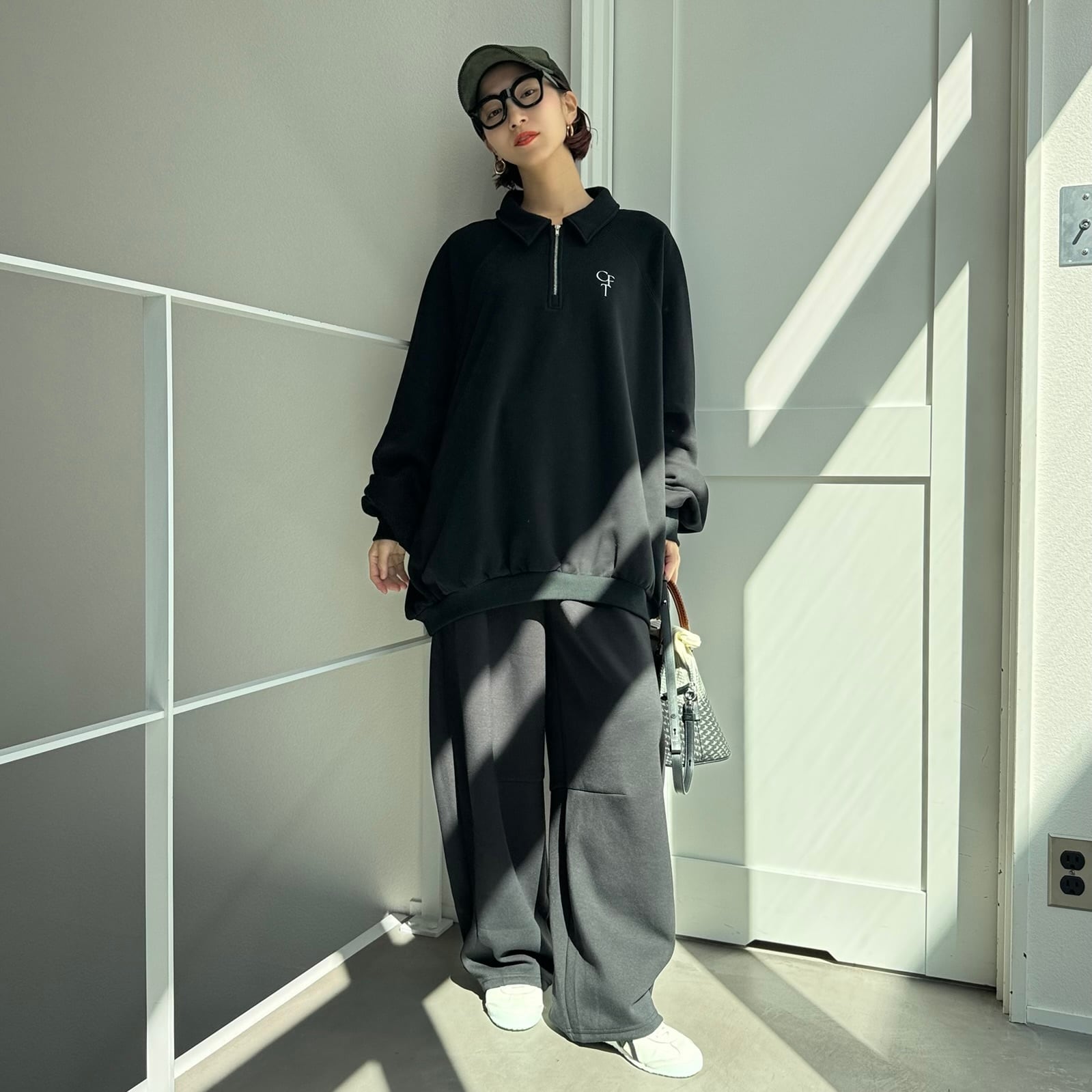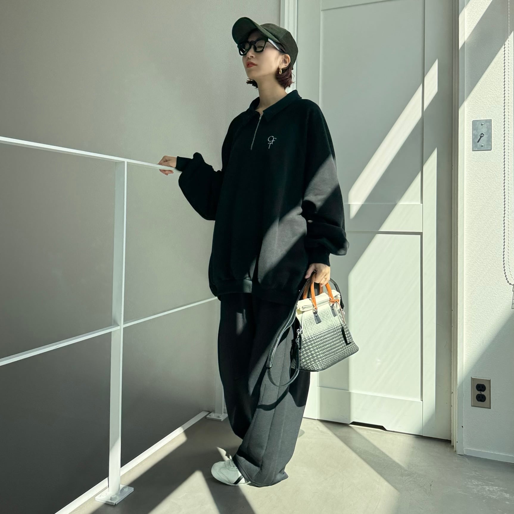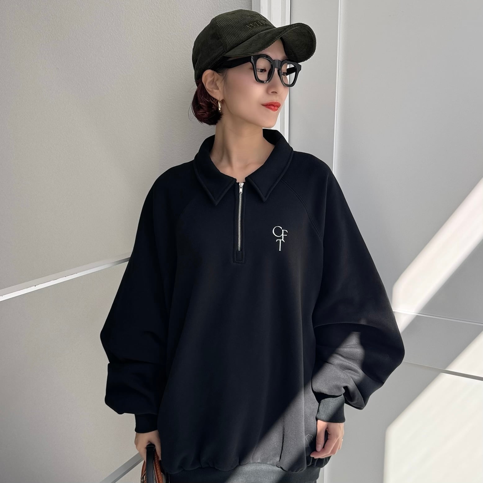 CFT.オリジナルのハーフスウェットシャツ。暖かい裏起毛でCFTロゴ刺繍がアクセントになっています。身幅たっぷりながらシンプルデザインでコーディネートがしやすく、ベーシック、カジュアル、スポーティーと幅広いジャンルで相性が抜群◎ゆったりサイズで程よい厚みの裏起毛生地が着心地よく、裾のリブ部分がスッキリスタイリッシュシルエットに見せてくれます。フロントのジップを開けてインナーを見せるレイヤードスタイルもオススメ。