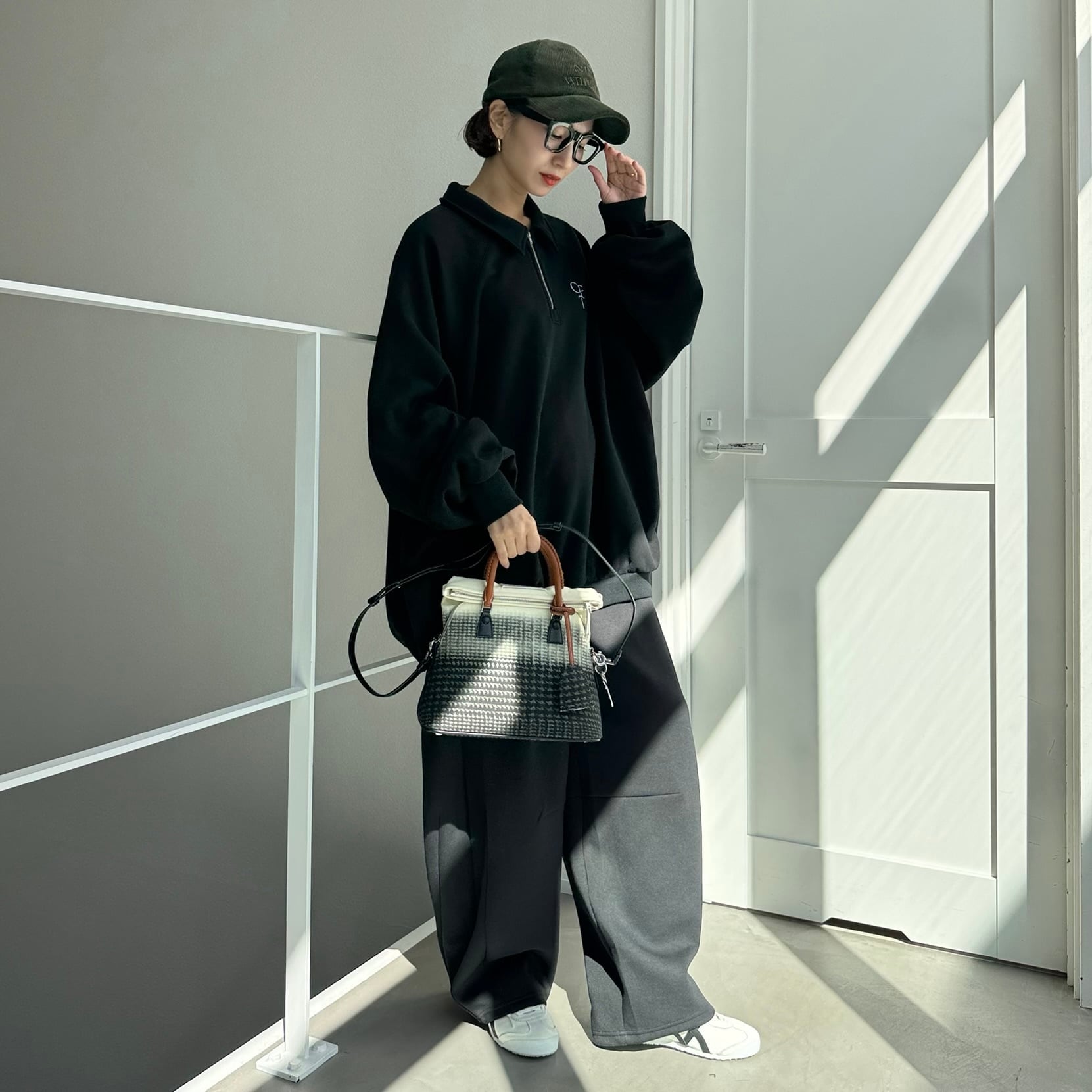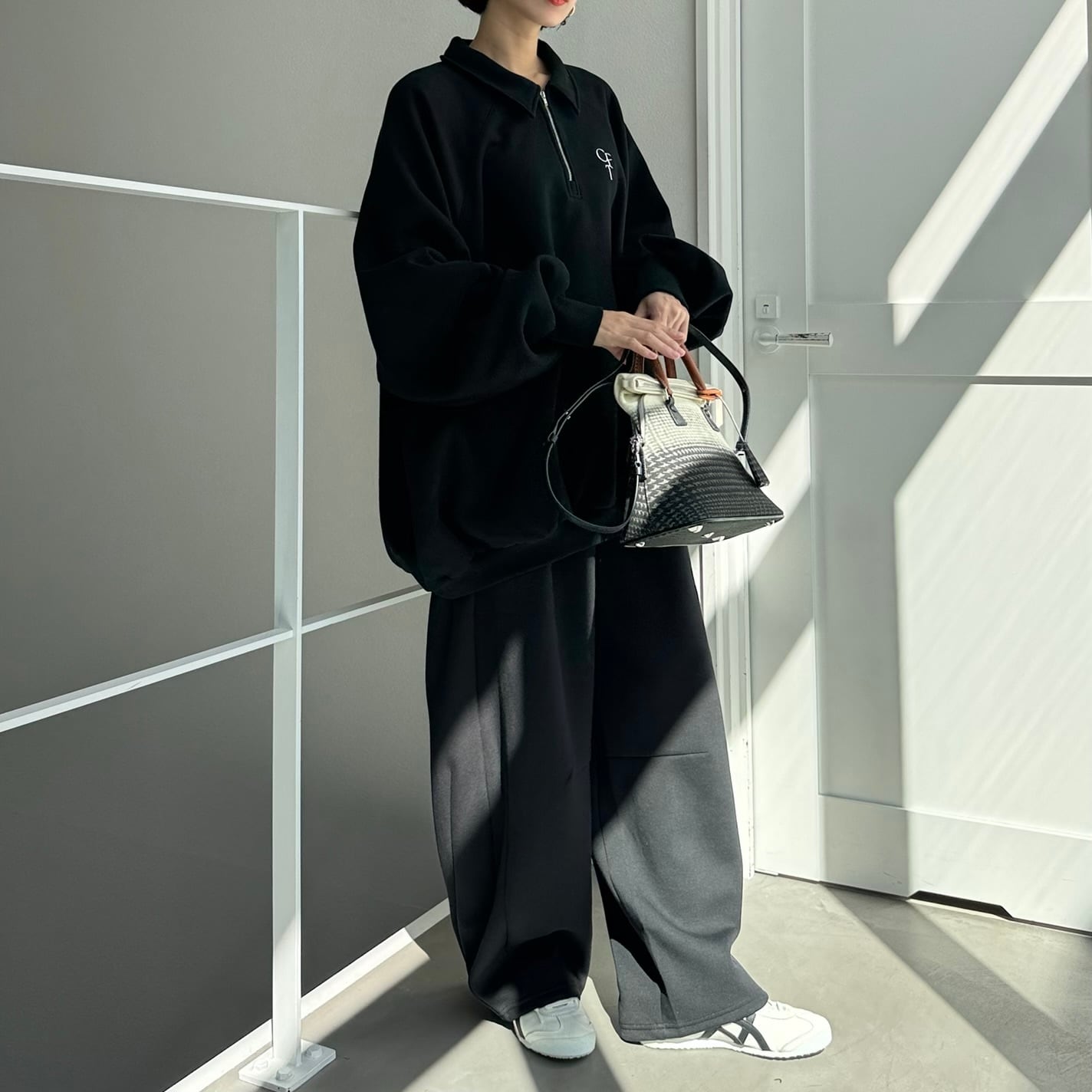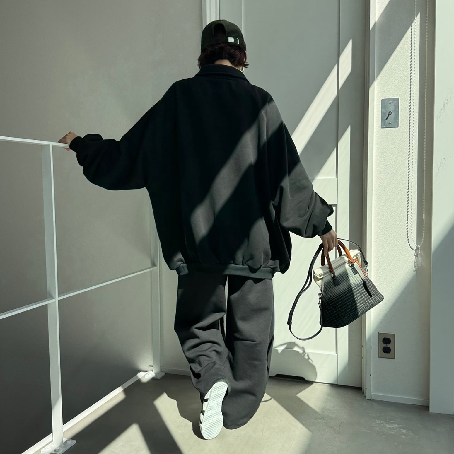 CFT.オリジナルのハーフスウェットシャツ。暖かい裏起毛でCFTロゴ刺繍がアクセントになっています。身幅たっぷりながらシンプルデザインでコーディネートがしやすく、ベーシック、カジュアル、スポーティーと幅広いジャンルで相性が抜群◎ゆったりサイズで程よい厚みの裏起毛生地が着心地よく、裾のリブ部分がスッキリスタイリッシュシルエットに見せてくれます。フロントのジップを開けてインナーを見せるレイヤードスタイルもオススメ。