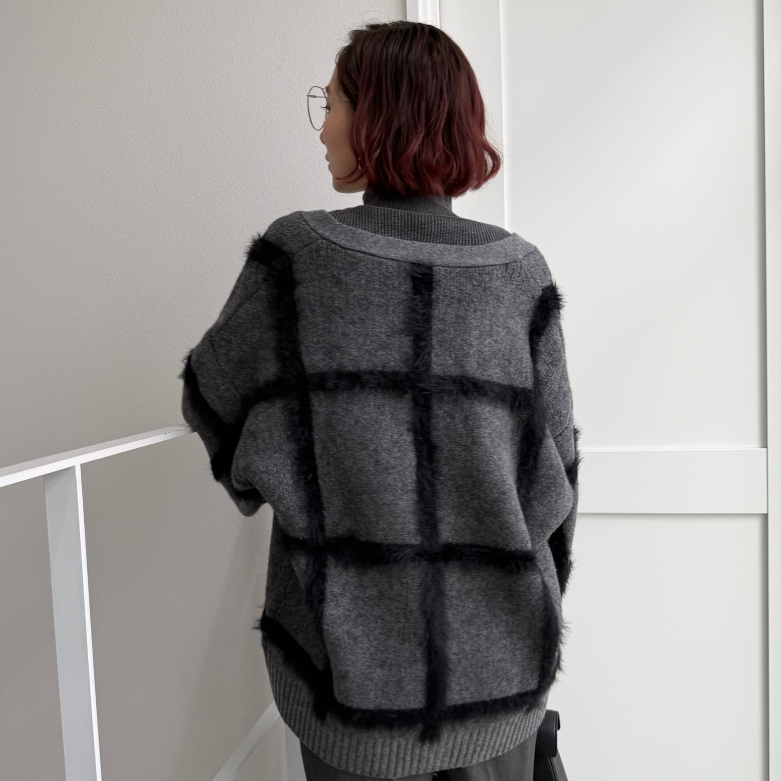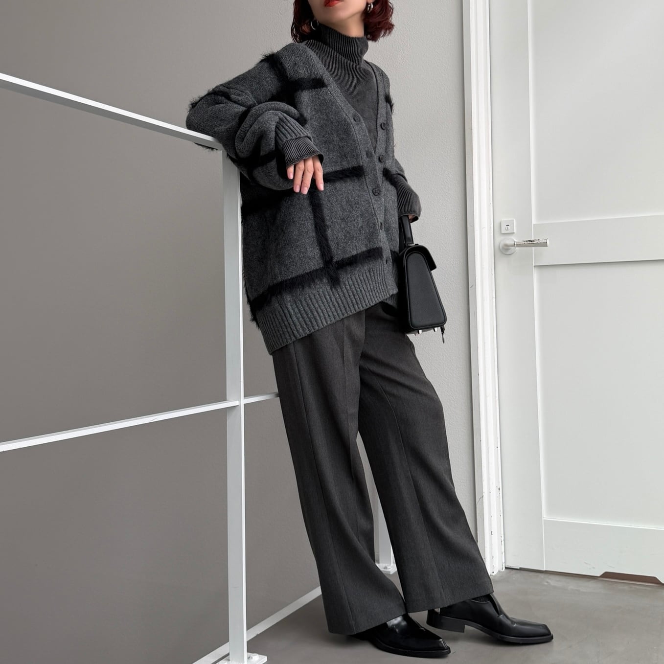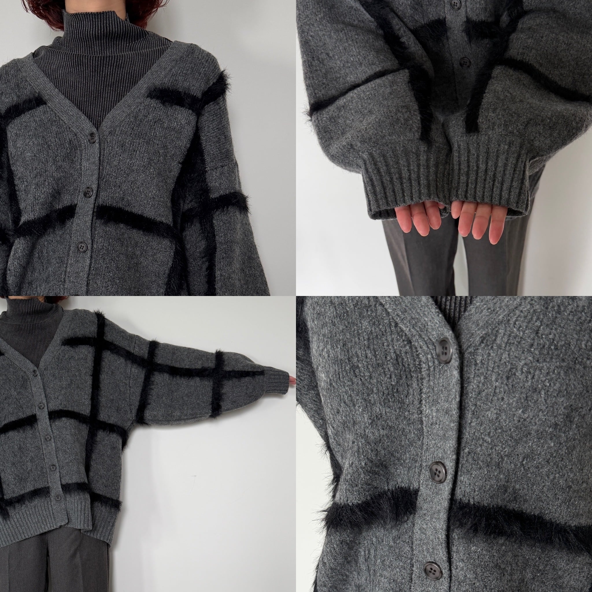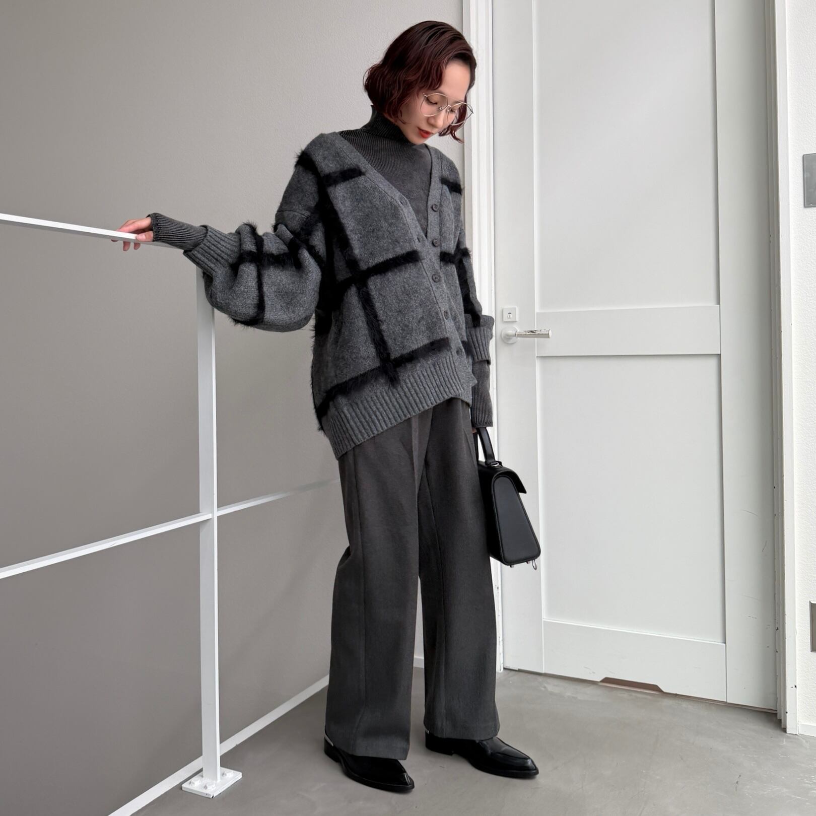 秋冬の装いに華やかさをプラスするチェック柄のVネックカーディガン。大きなチェックデザインが目を惹きます。シャギー部分は毛足が長く立体的な表面感に、少しもっちりした質感がやみつきに。着丈は程良く長めなので体型カバーも◎少し深めのVネックで抜け感もありつつ、目を惹く新鮮なカラーリングが魅力の一着。