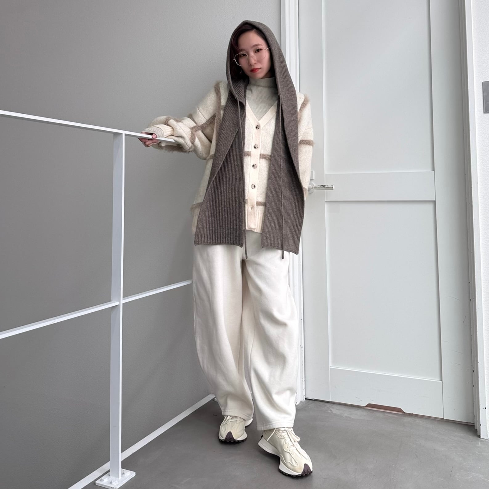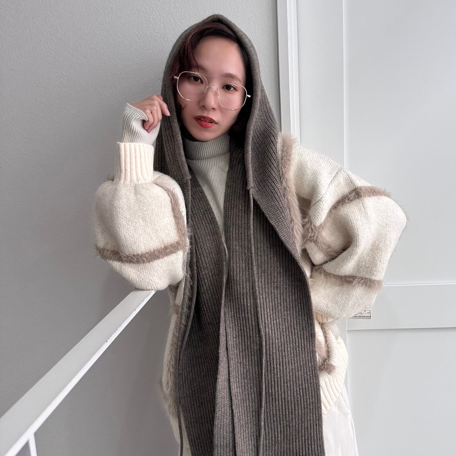 いつものコーデのプラスするだけでトレンドコーデが完成するバラクラバフードマフラー。マフラー部分はあえて長さのあるデザインなのでそのまま巻かずにおろしても◎、首もとにぐるっと巻いたりとコーデに合わせてアレンジ可能です。防寒としても活躍するので重宝します。