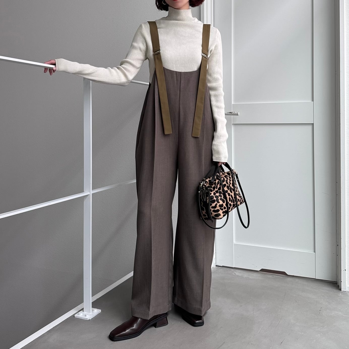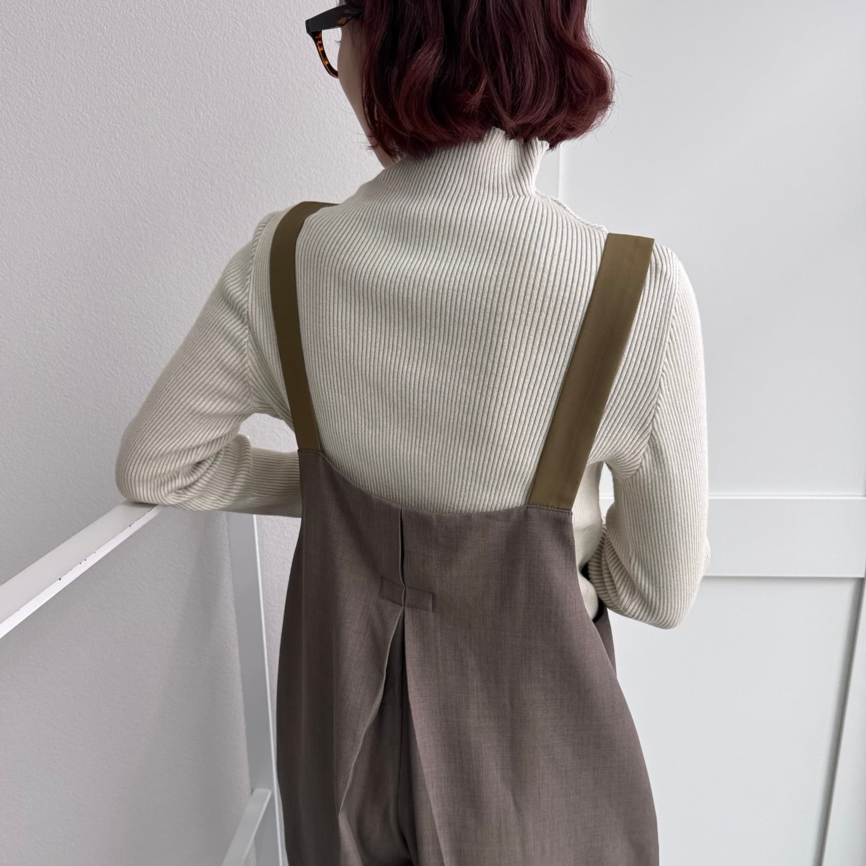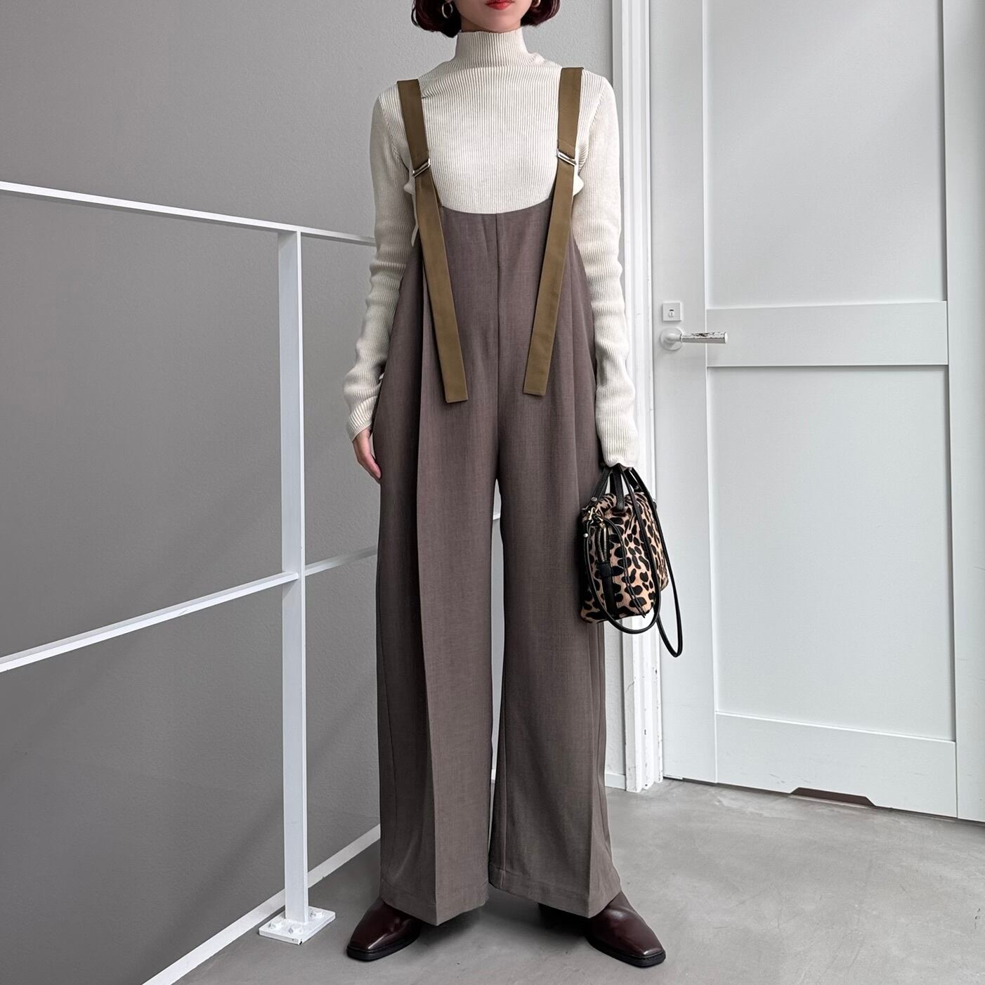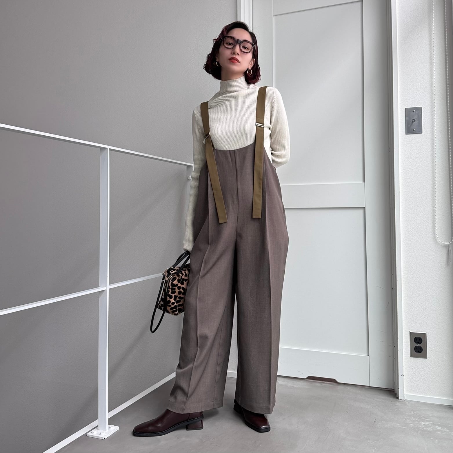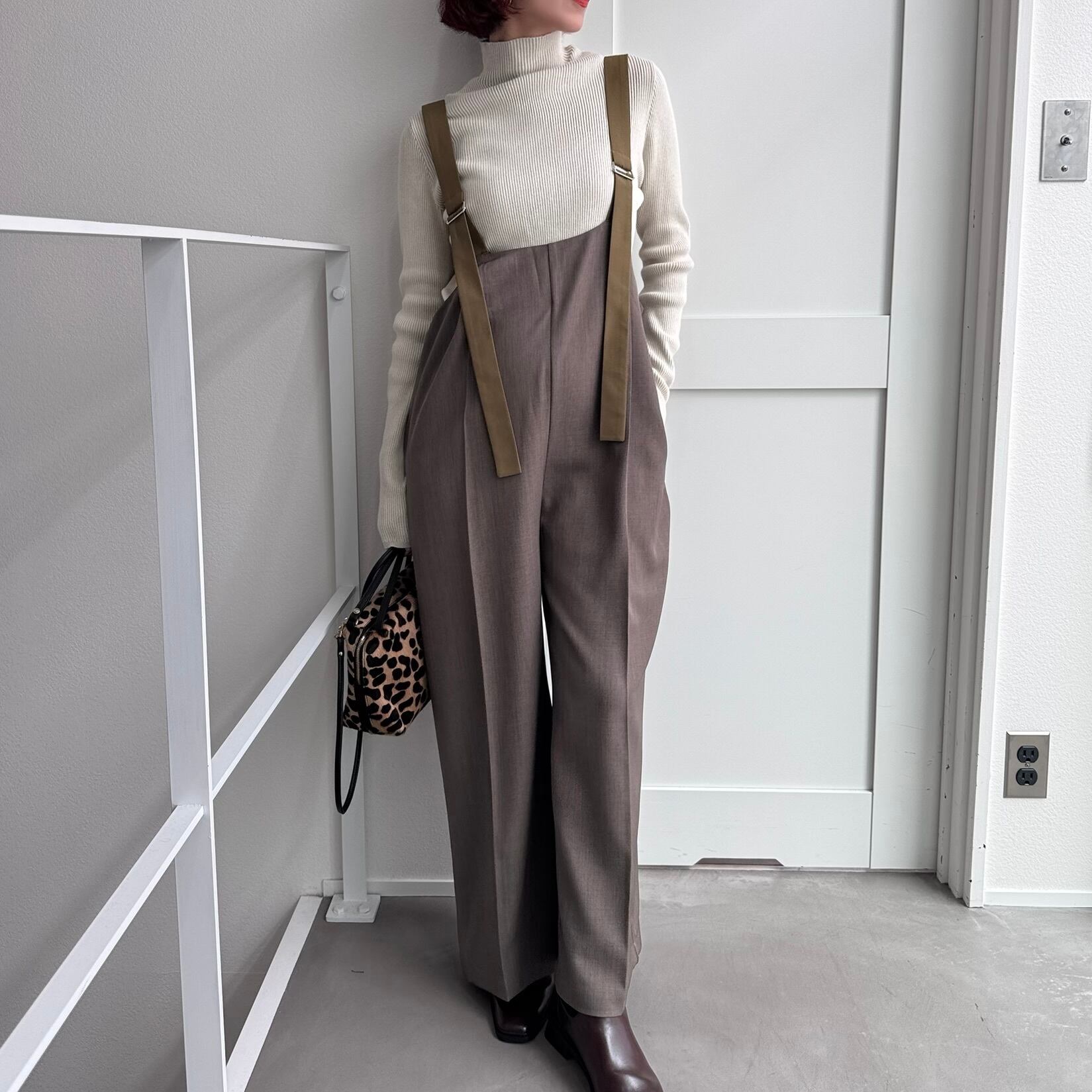 落ち感のある美しいIラインシルエットで魅せるタックサロペットパンツ。フロントにもタックデザインを施し、バックにも抜かりなく美しいタックを落とし込んだマニッシュな雰囲気の一枚。ストラップテープとの配色合わせがお洒落に決まります。絶妙なラフ感が、コンパクトなトップスと合わせるだけで大人の余裕を感じさせるスタイリングに。