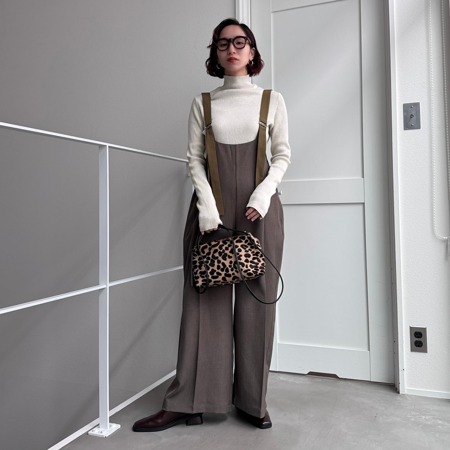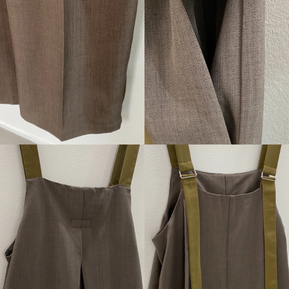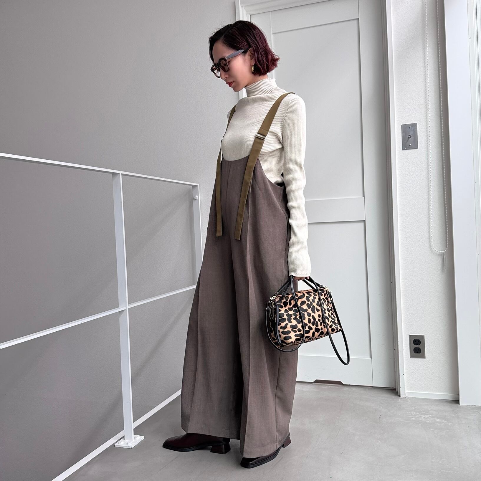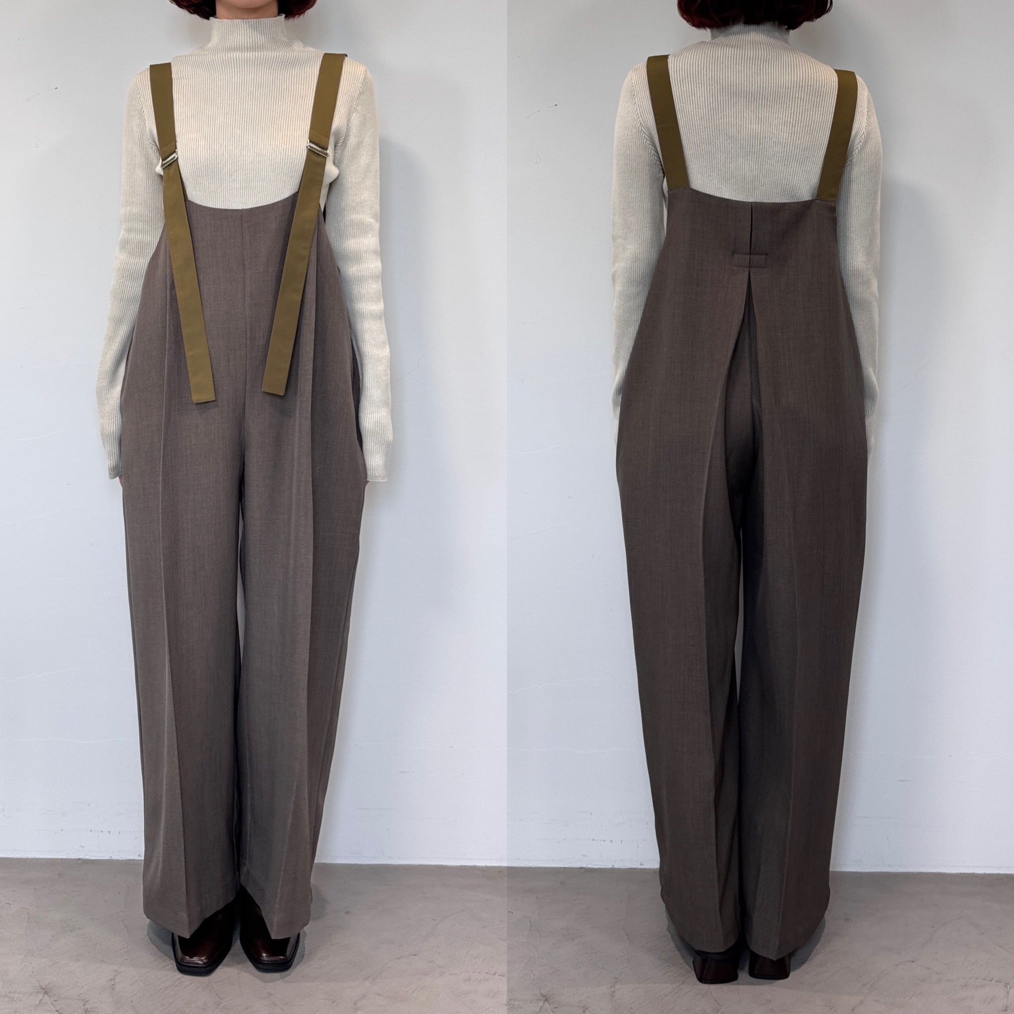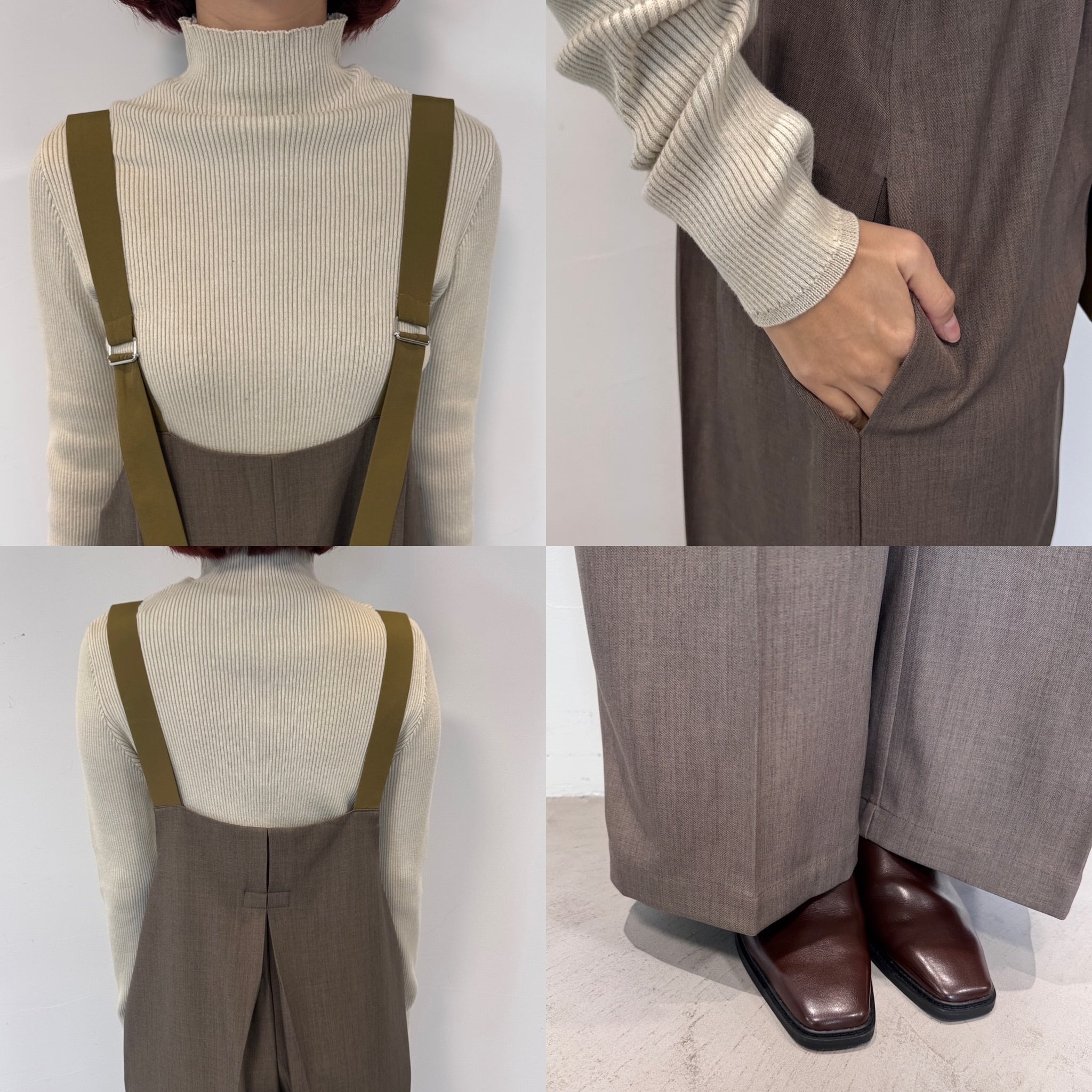 落ち感のある美しいIラインシルエットで魅せるタックサロペットパンツ。フロントにもタックデザインを施し、バックにも抜かりなく美しいタックを落とし込んだマニッシュな雰囲気の一枚。ストラップテープとの配色合わせがお洒落に決まります。絶妙なラフ感が、コンパクトなトップスと合わせるだけで大人の余裕を感じさせるスタイリングに。