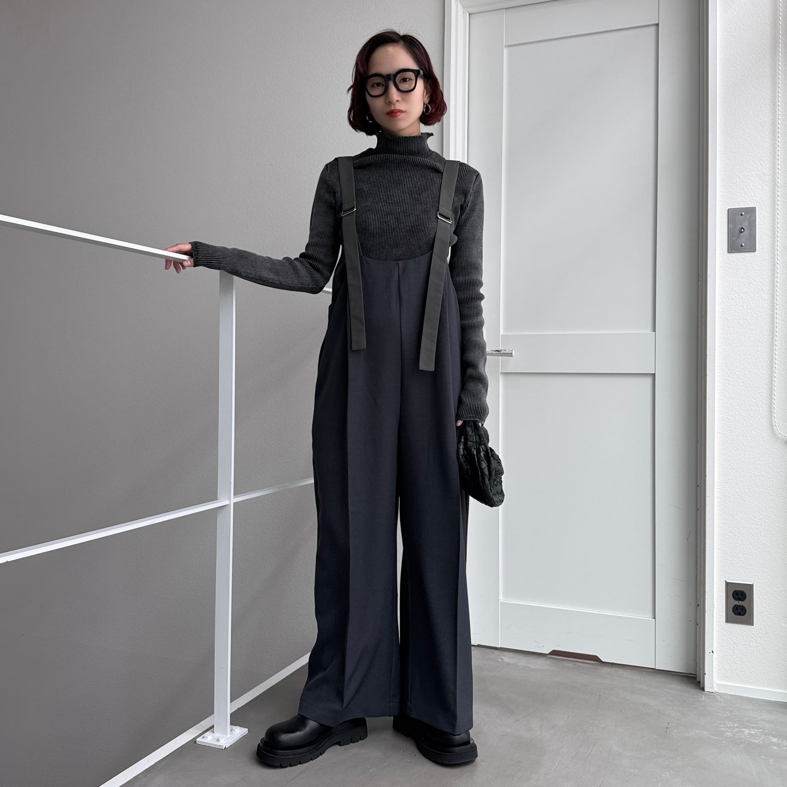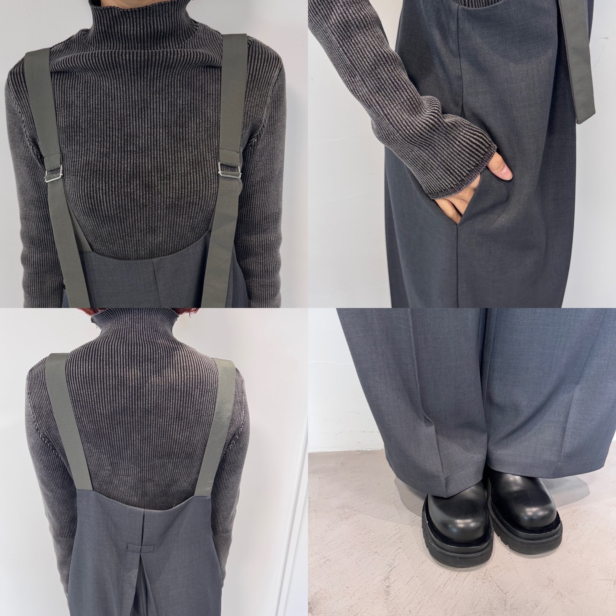 バックデザインタックサロペットPT/チャコール