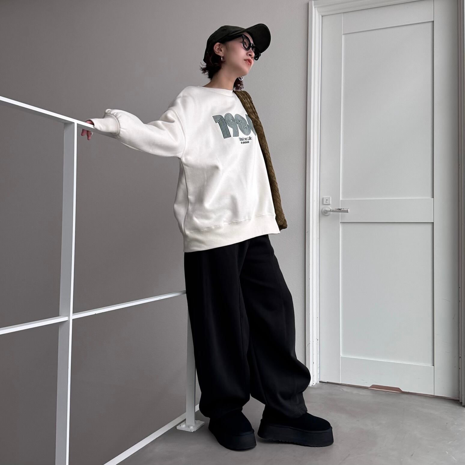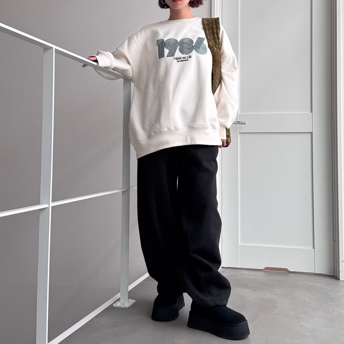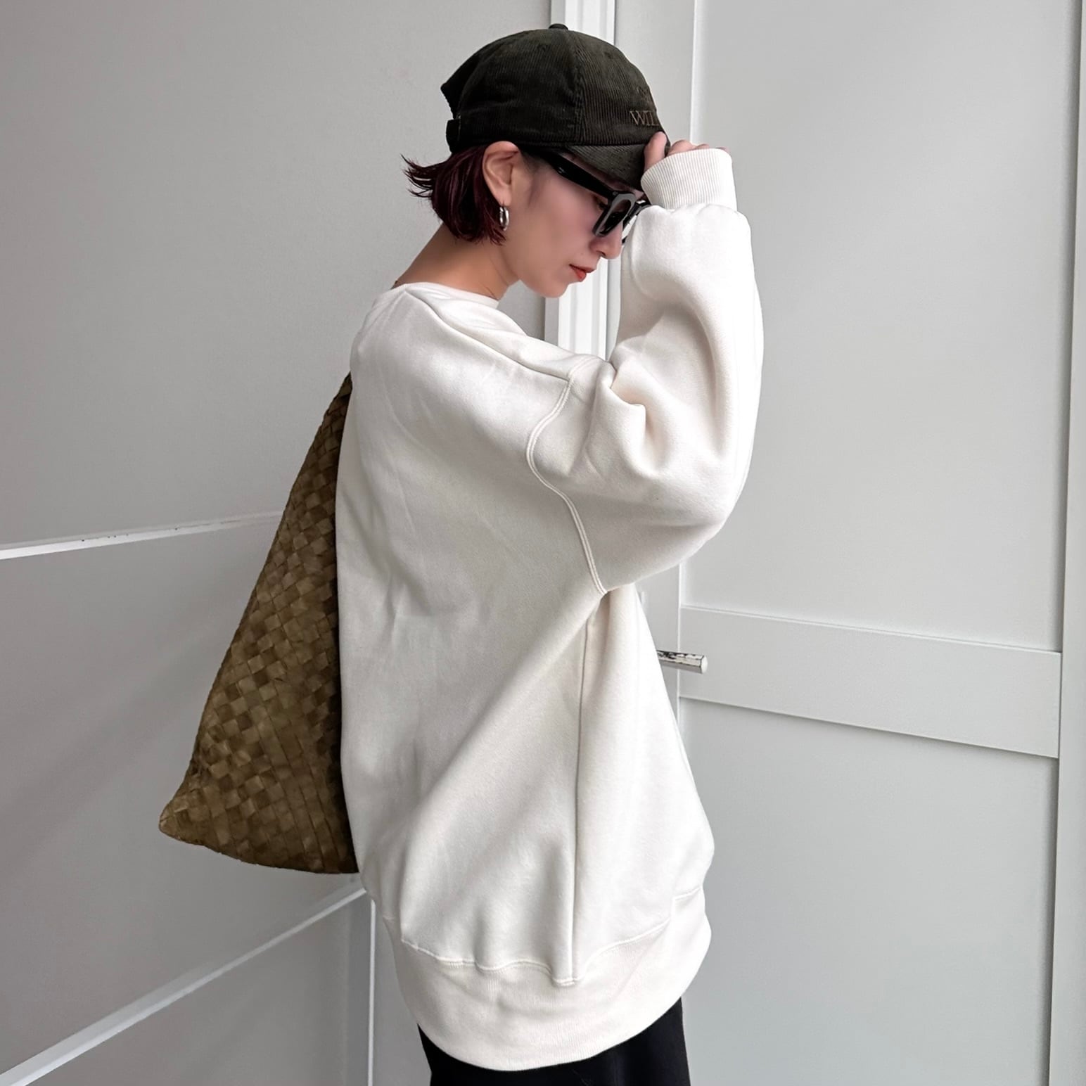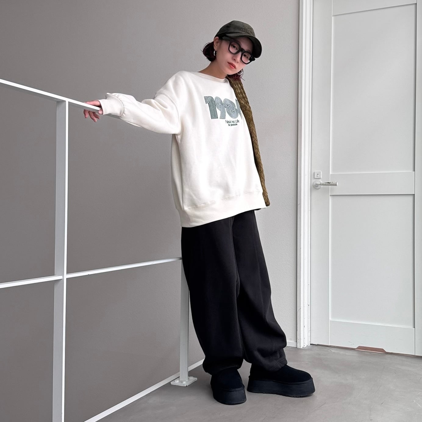 遊び心のあるグラフィックデザインがポイントのスウェット。立体感のある刺繍ロゴなので大人カジュアルコーデにもピッタリです。ほどよいオーバーサイズなのでお尻周りも隠しつつ、ラグランデザインなのでこなれ感もプラス。柔らかい裏起毛素材なので着心地も良い1枚です。