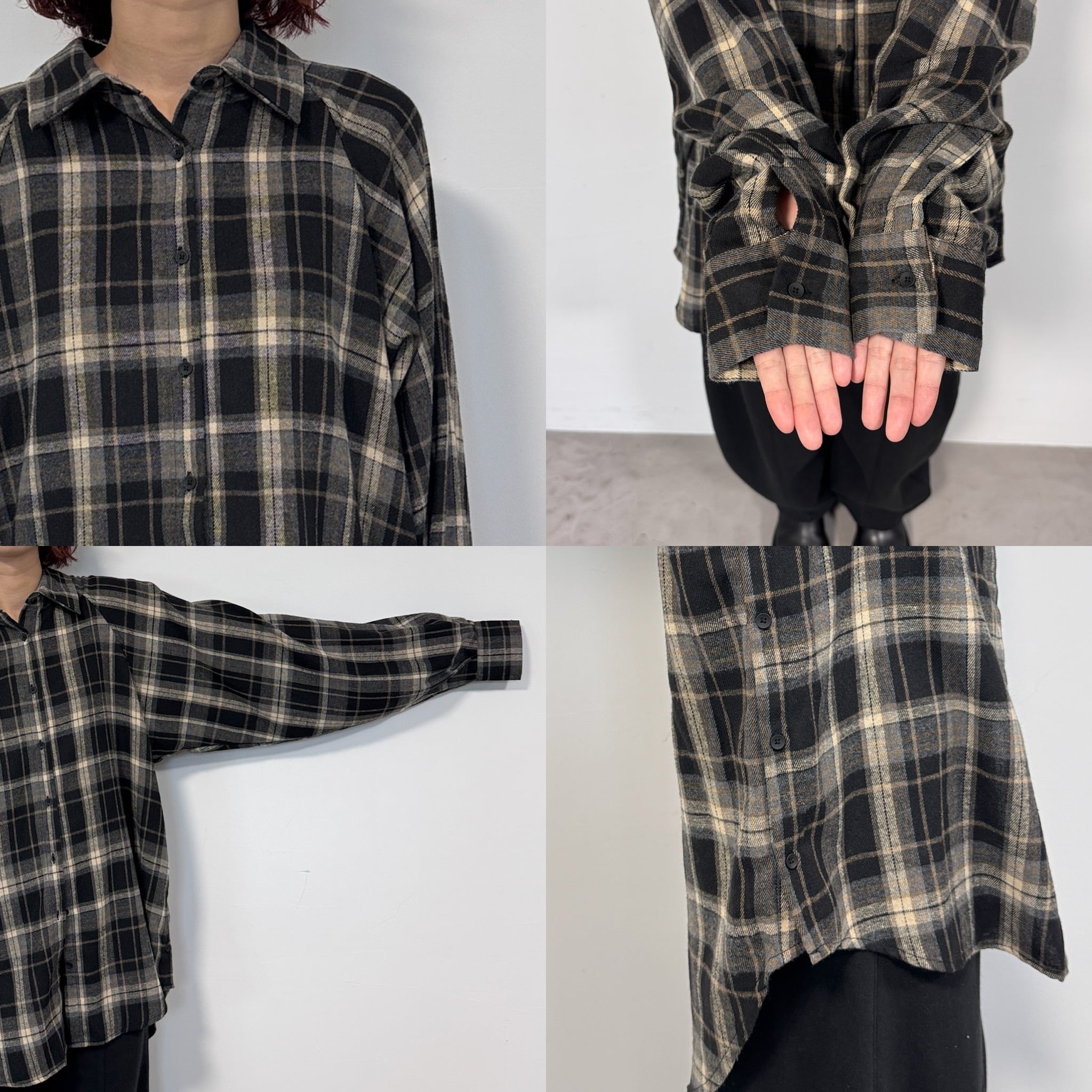 ヴィンテージライクな雰囲気を演出するフランネルチェックシャツ。バックやサイドにもボタンデザインがあしらわれています。裾がラウンドしていてお尻も隠れる丈感。前後差があるのでこなれ感もプラス。フランネル素材ですが生地は厚すぎず柔らかな肌触りなので長くご使用いただけます。