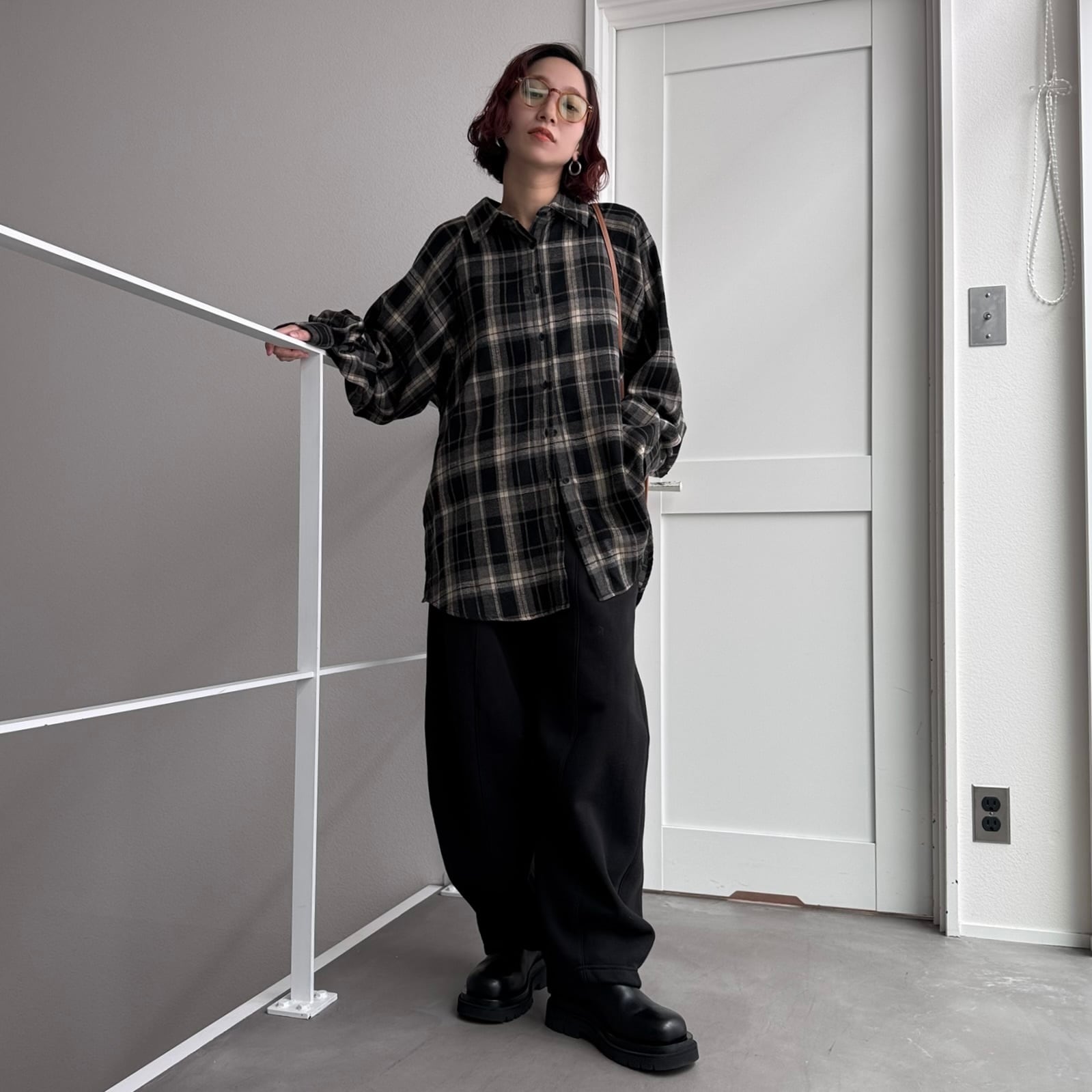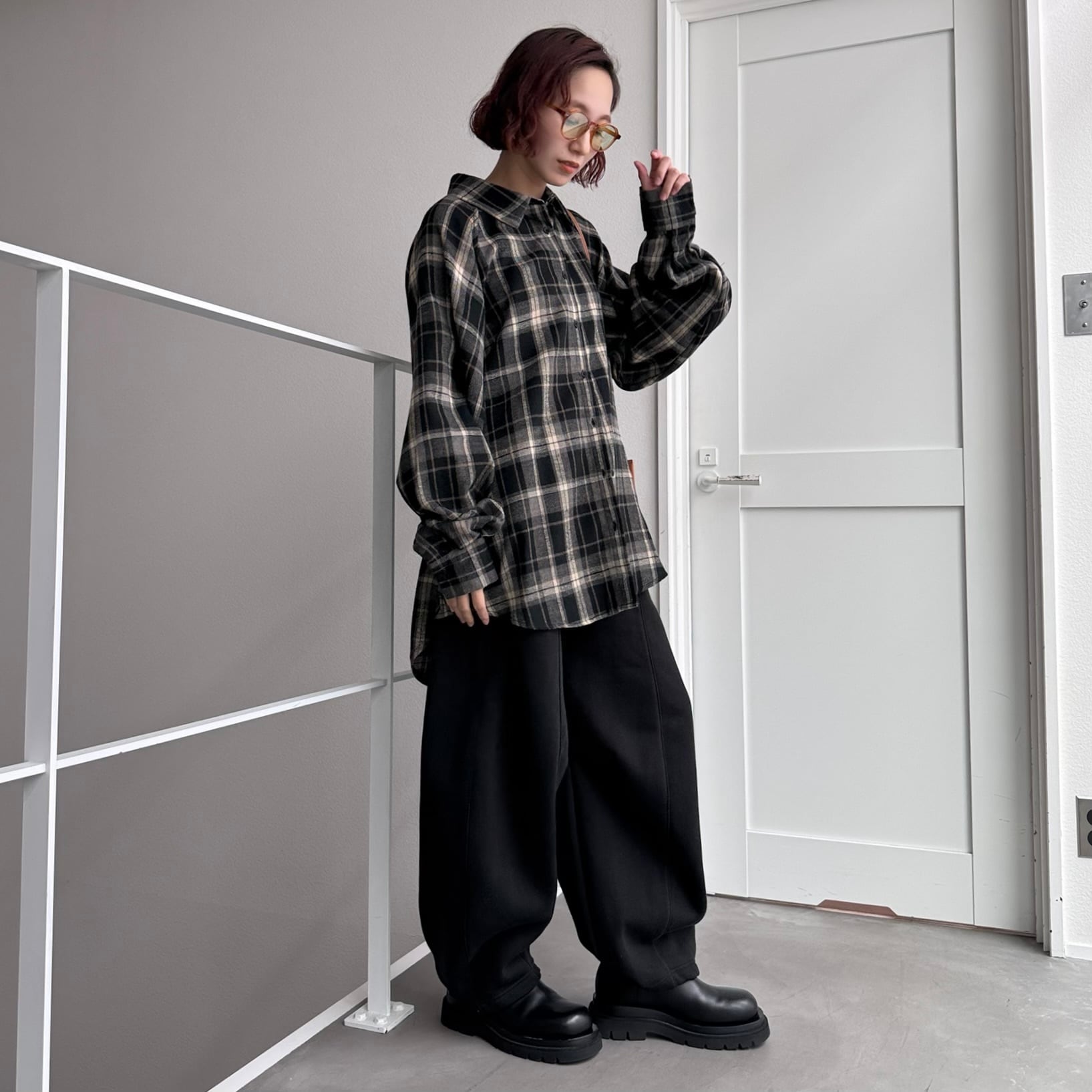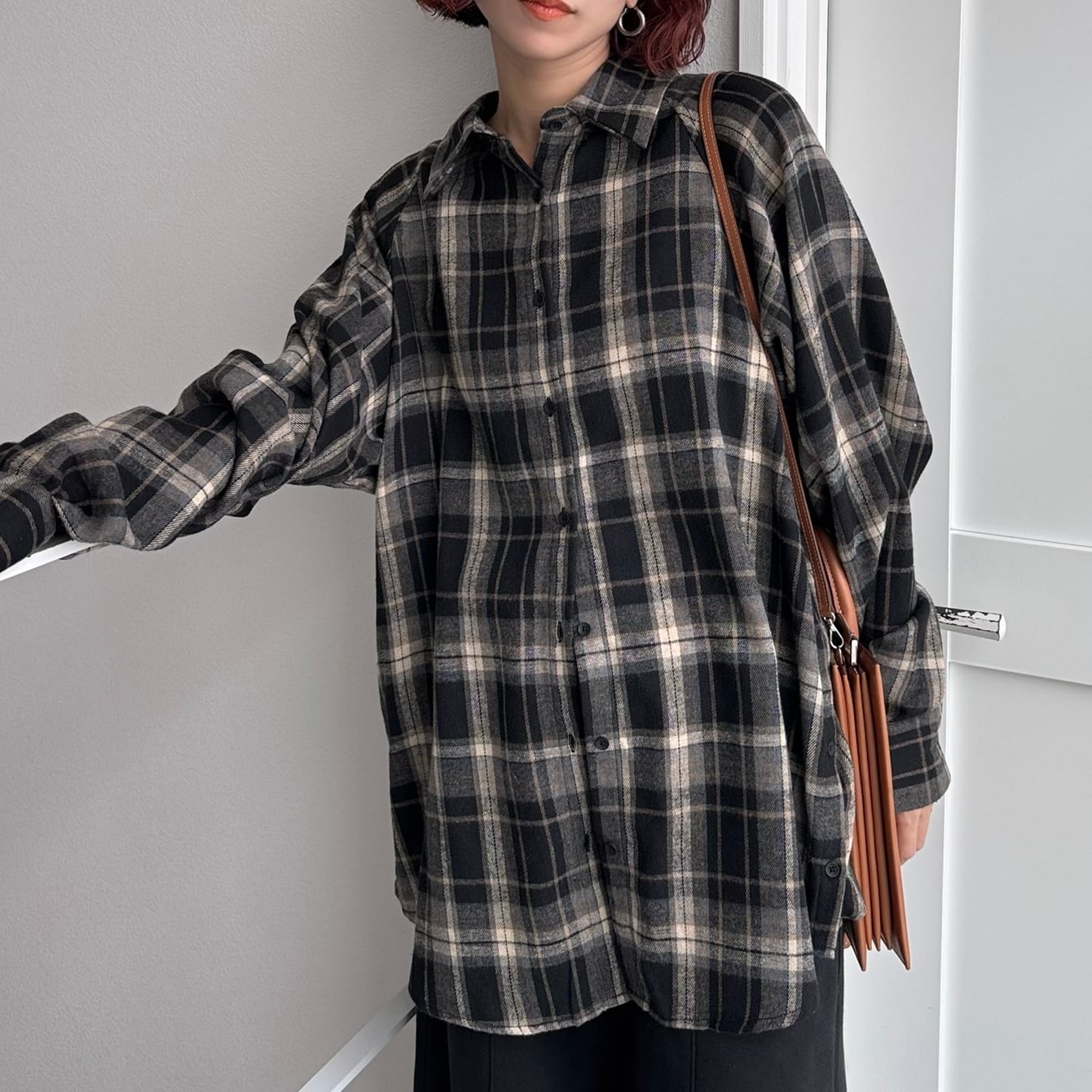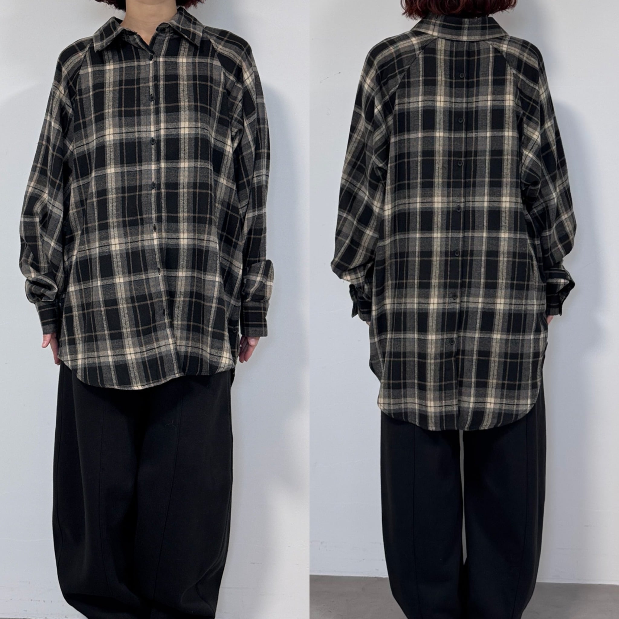 フランネルマルチウェイボタンルーズSH/ブラック