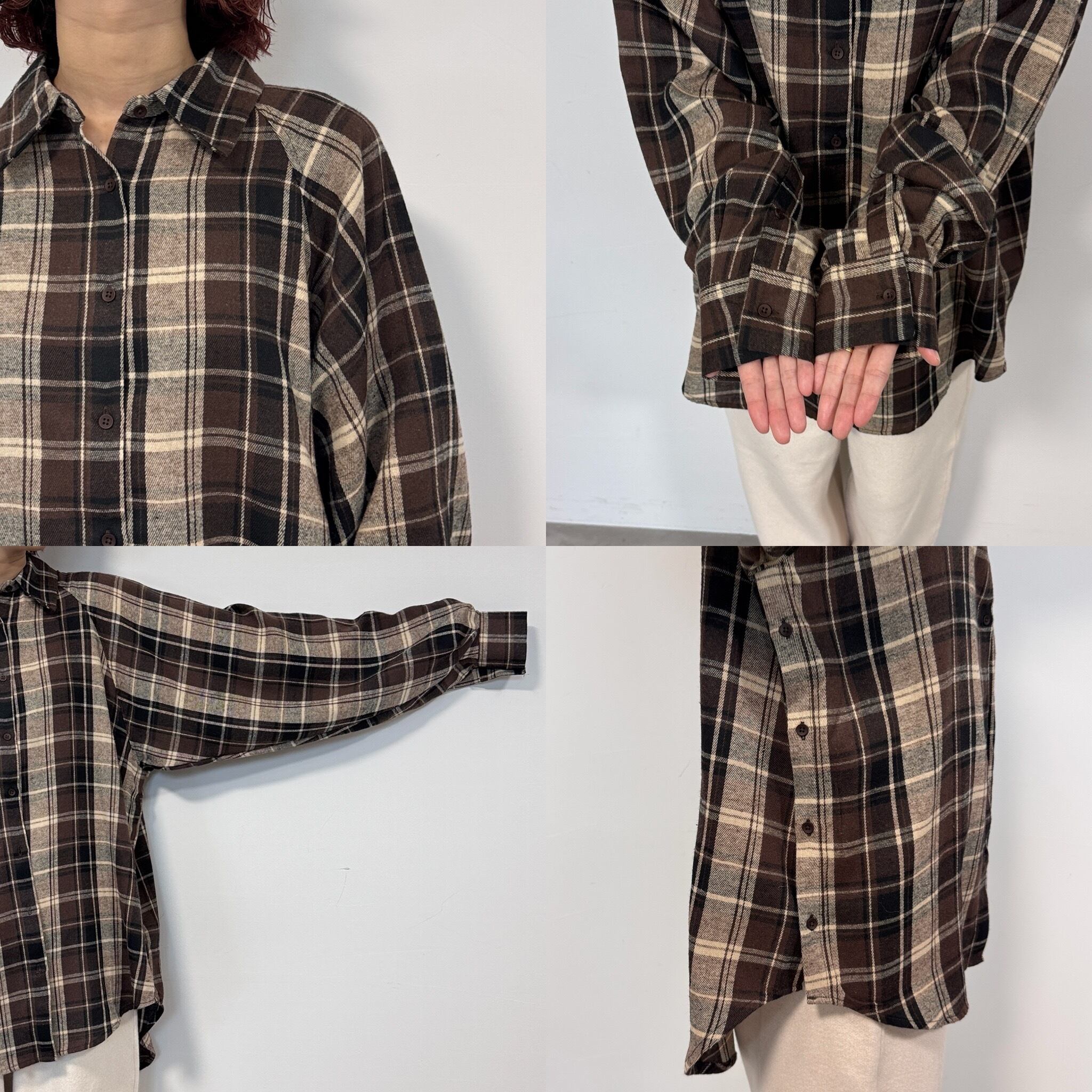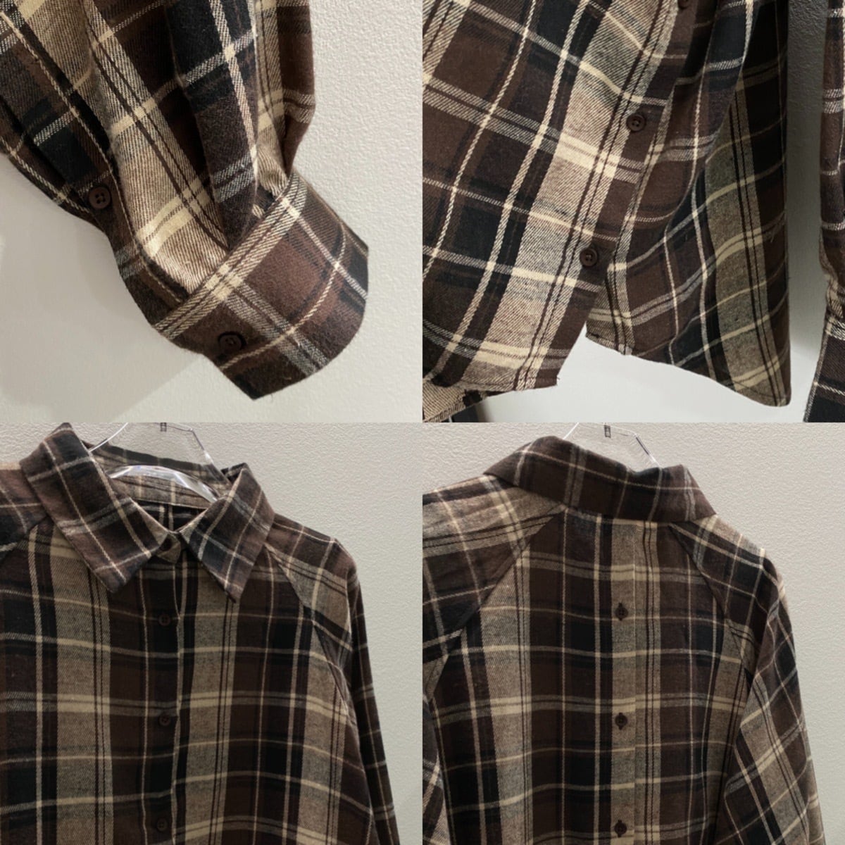ヴィンテージライクな雰囲気を演出するフランネルチェックシャツ。バックやサイドにもボタンデザインがあしらわれています。裾がラウンドしていてお尻も隠れる丈感。前後差があるのでこなれ感もプラス。フランネル素材ですが生地は厚すぎず柔らかな肌触りなので長くご使用いただけます。