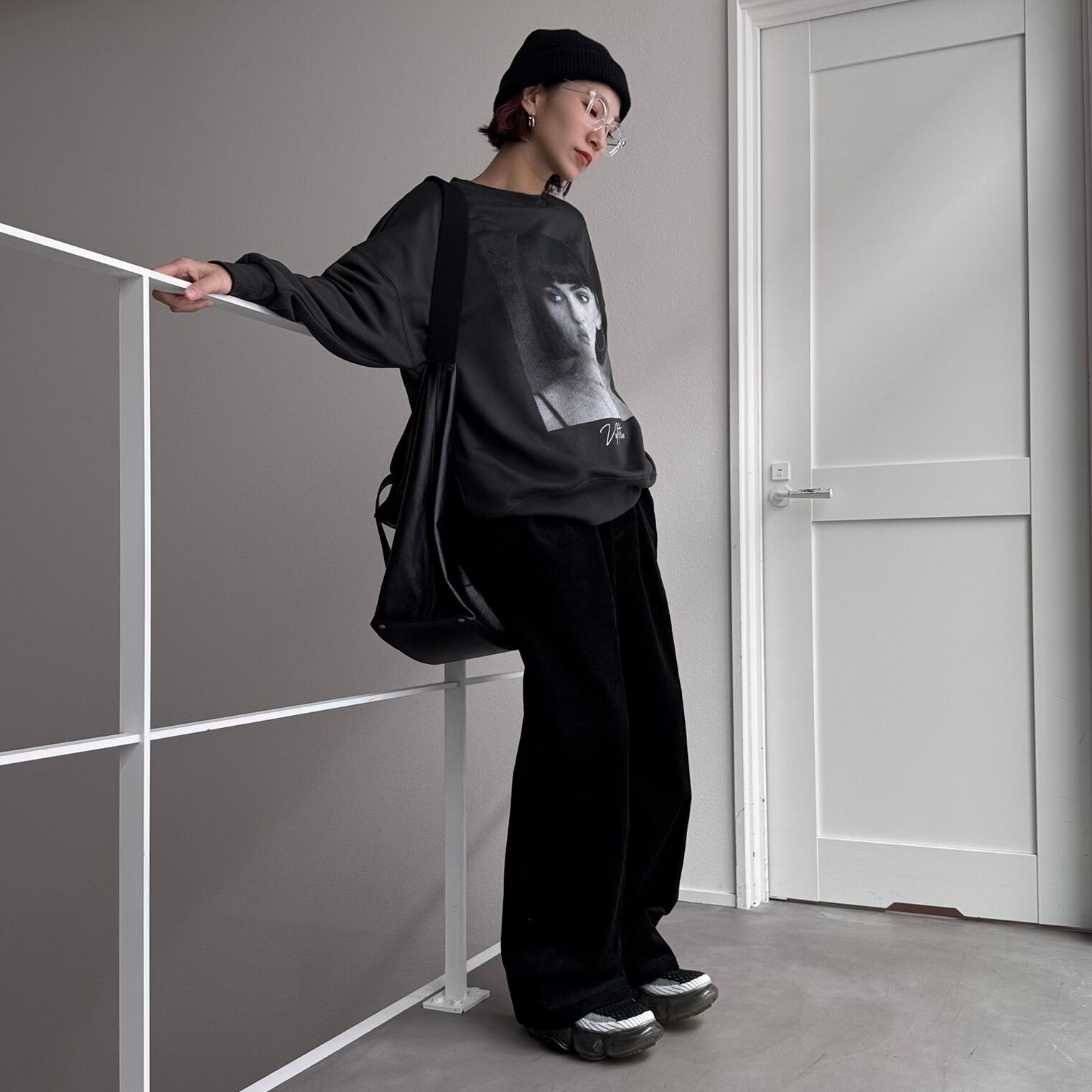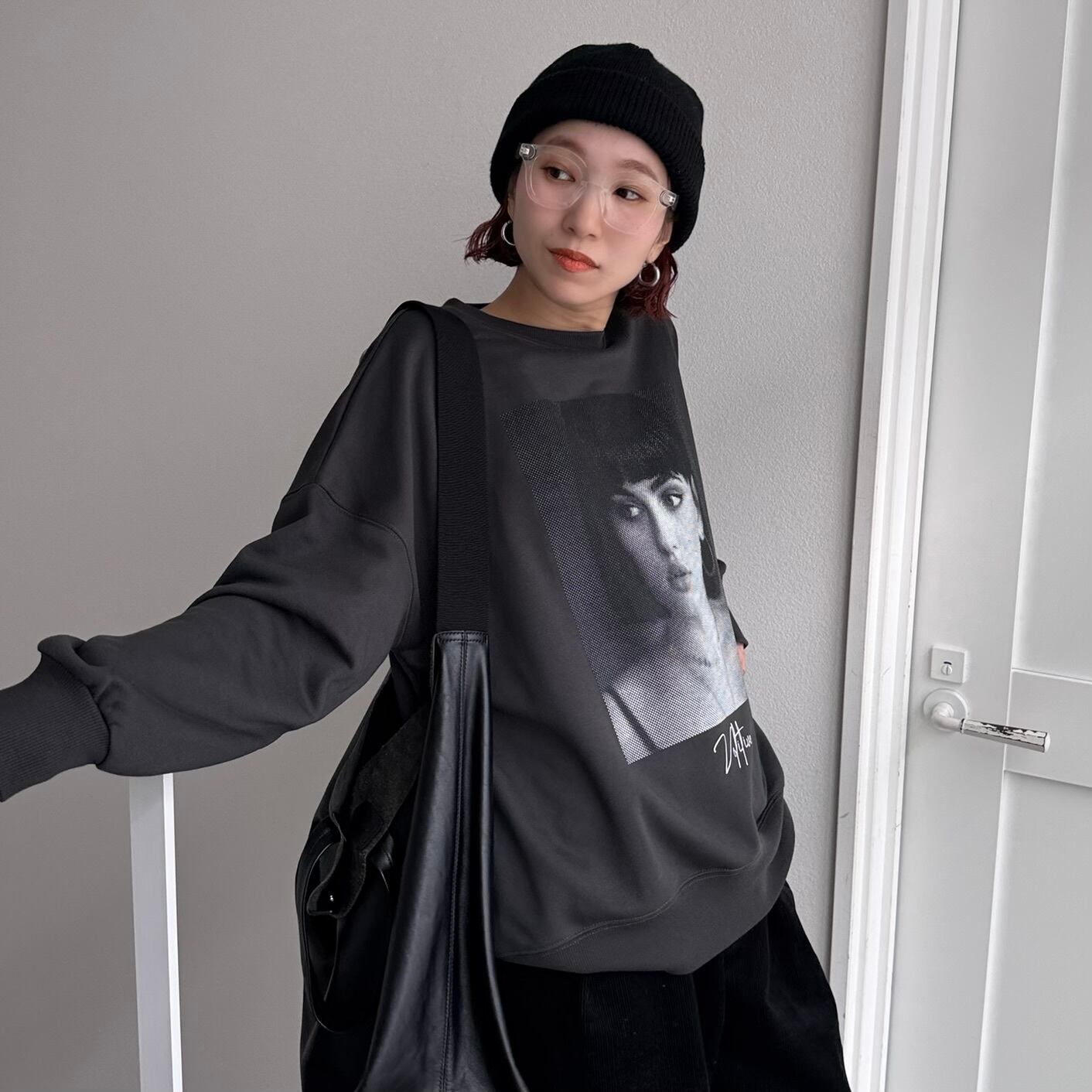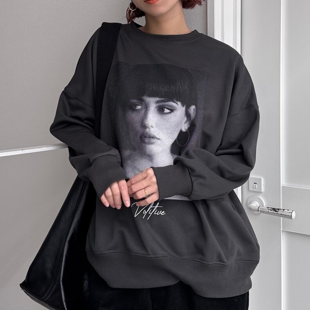 インパクトのあるphotoデザインがめをひくスウェットプルオーバー。モノトーンベースなので飽きがこず、カジュアルからモードまで幅広いスタイリングに馴染む1枚。オーバーサイズなのでお尻周りもスッキリ見えします。裏毛仕立てなのでサラリとした着心地で長くご使用いただけます。