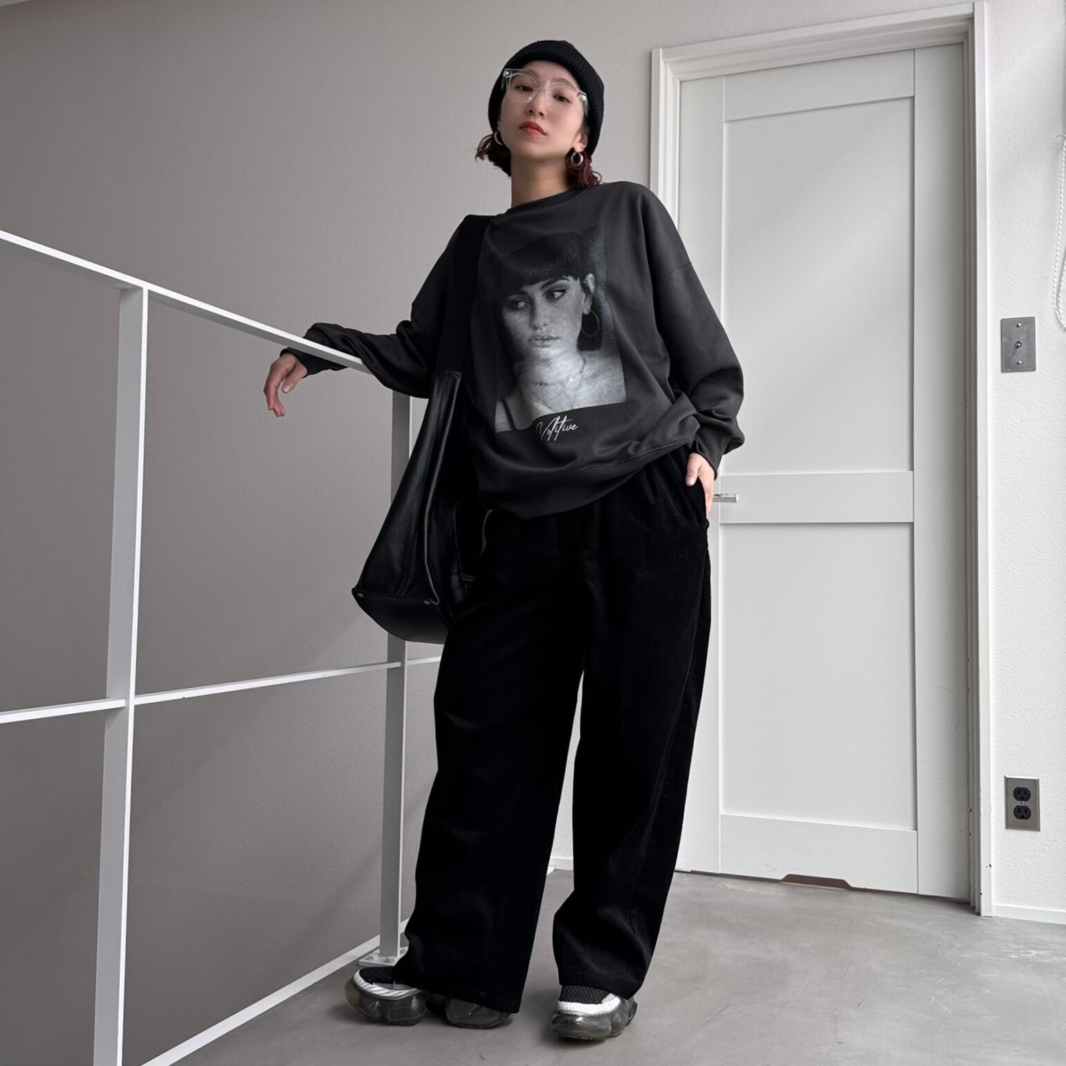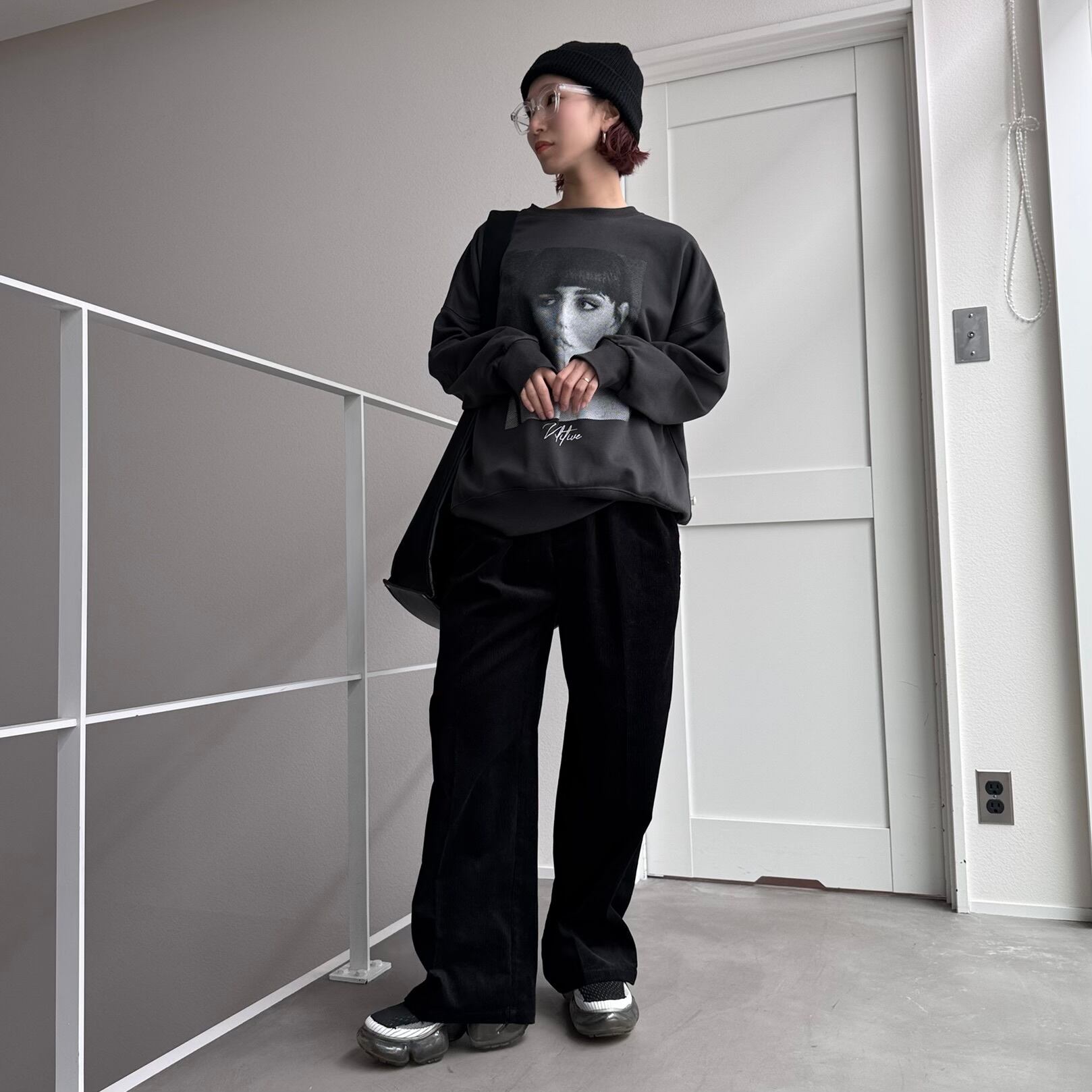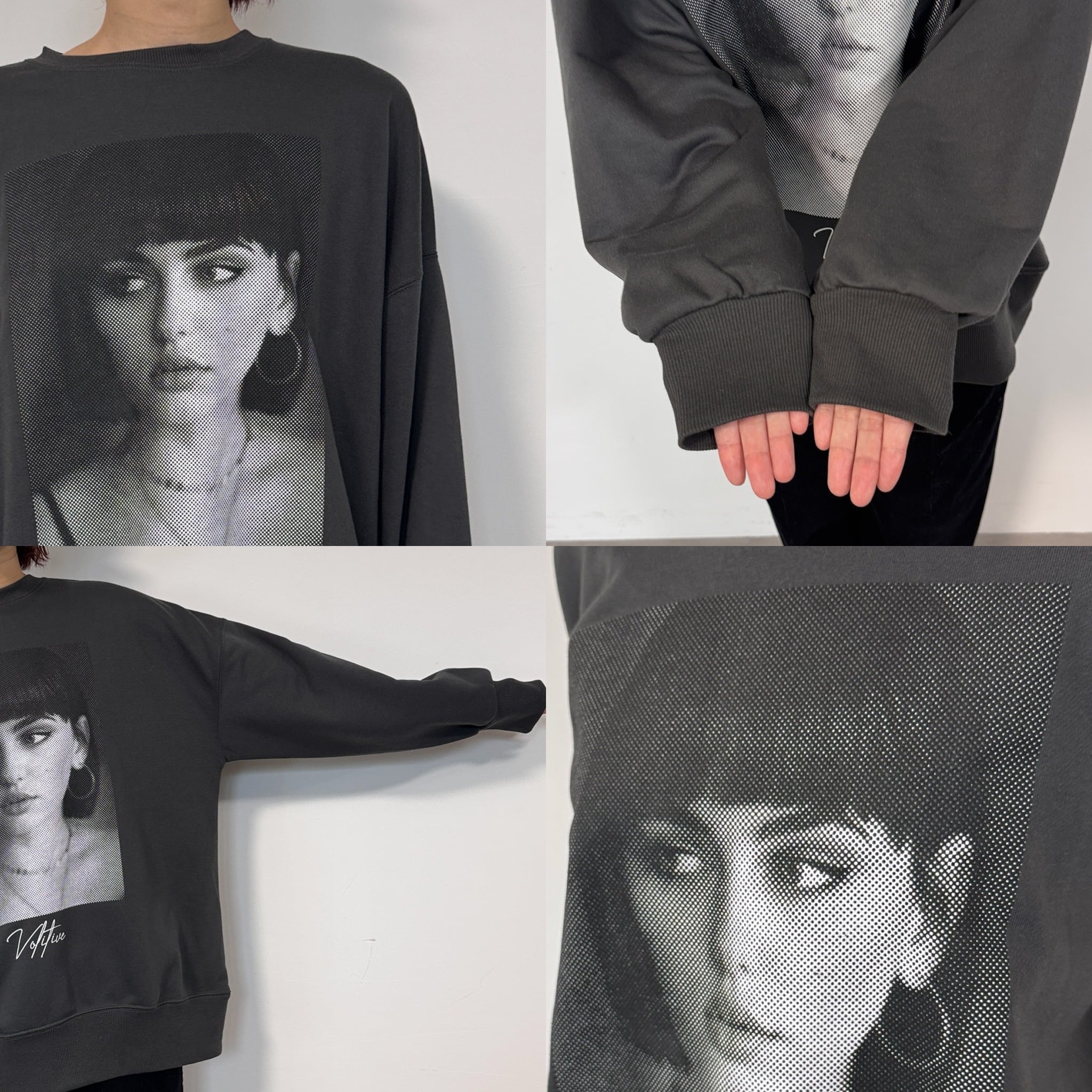 インパクトのあるphotoデザインがめをひくスウェットプルオーバー。モノトーンベースなので飽きがこず、カジュアルからモードまで幅広いスタイリングに馴染む1枚。オーバーサイズなのでお尻周りもスッキリ見えします。裏毛仕立てなのでサラリとした着心地で長くご使用いただけます。