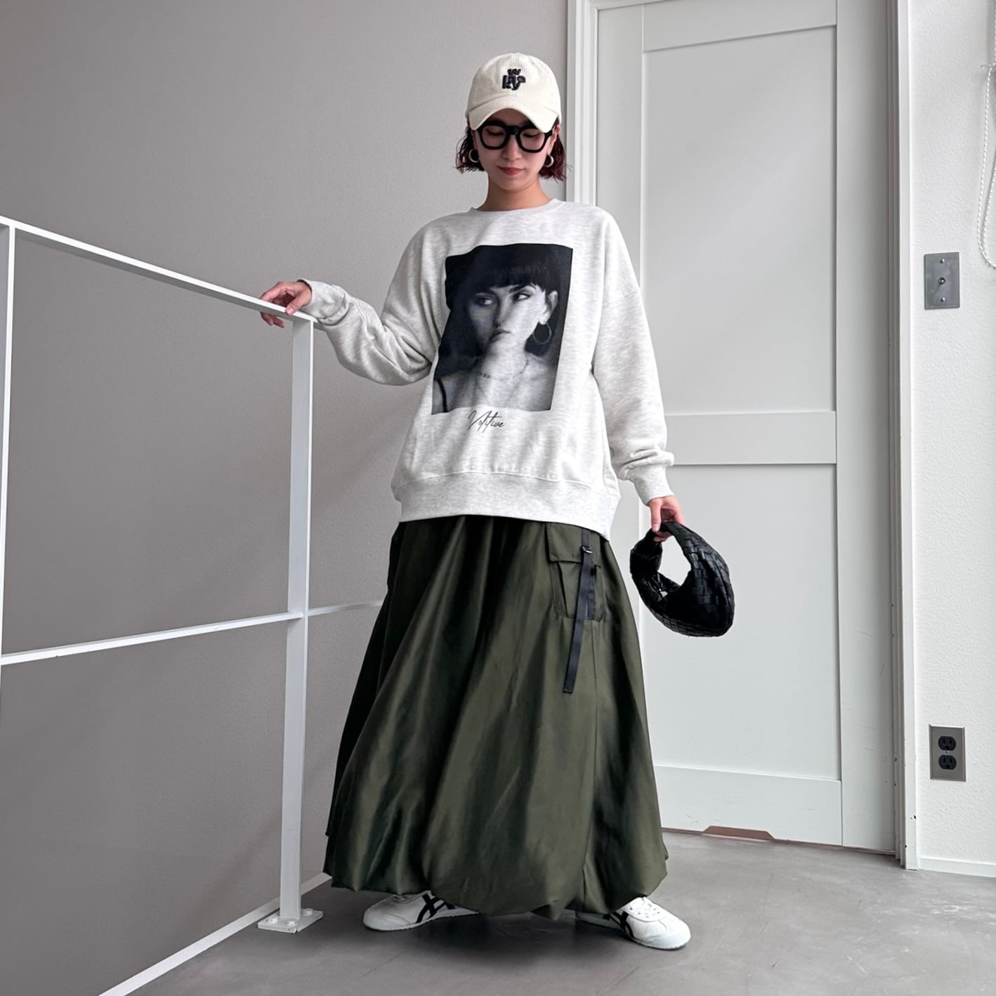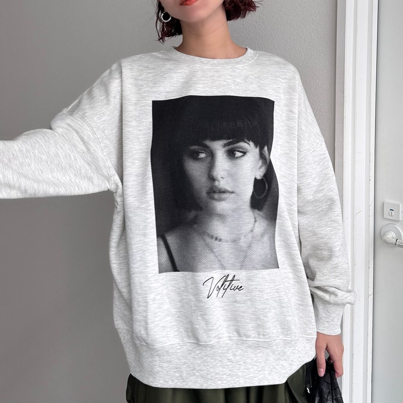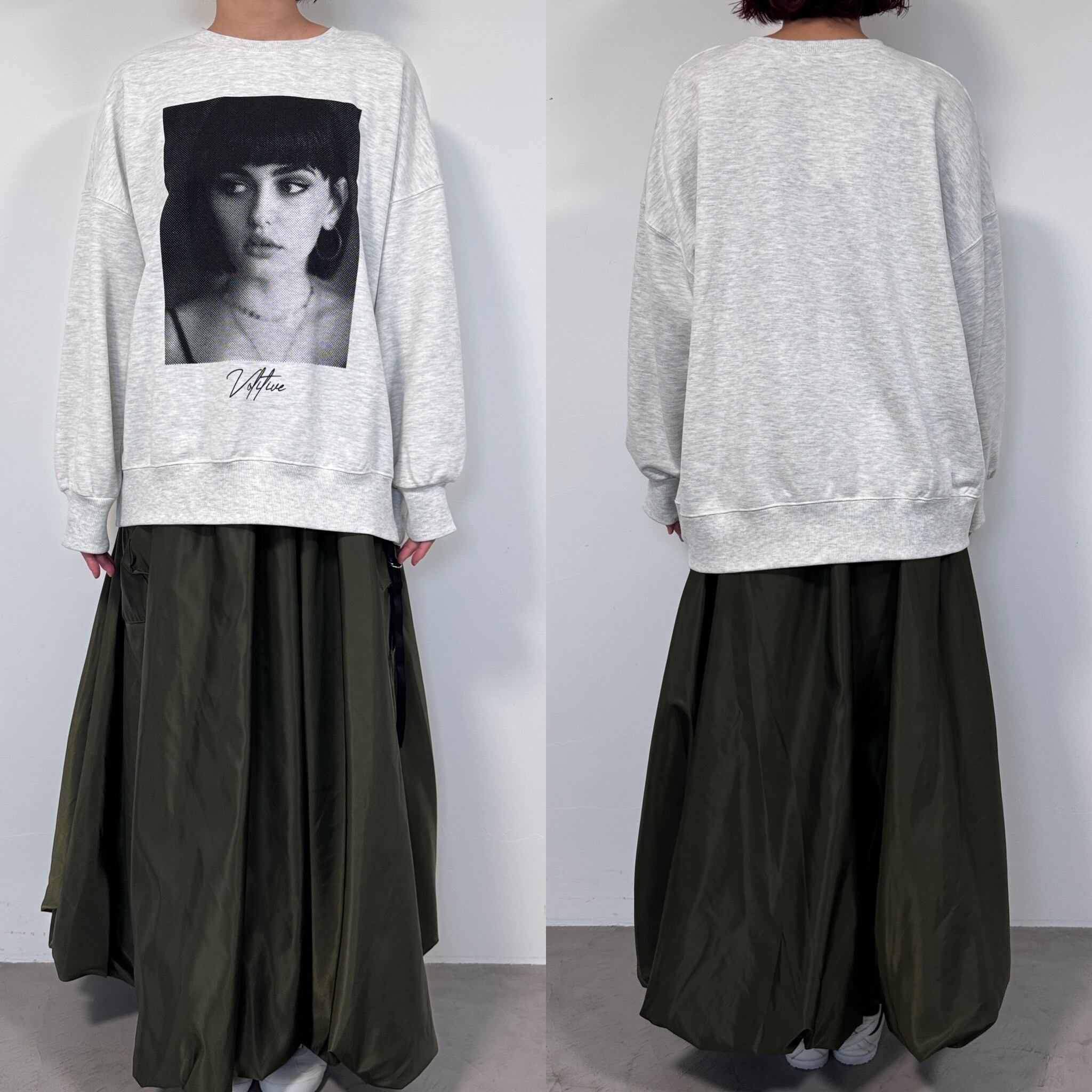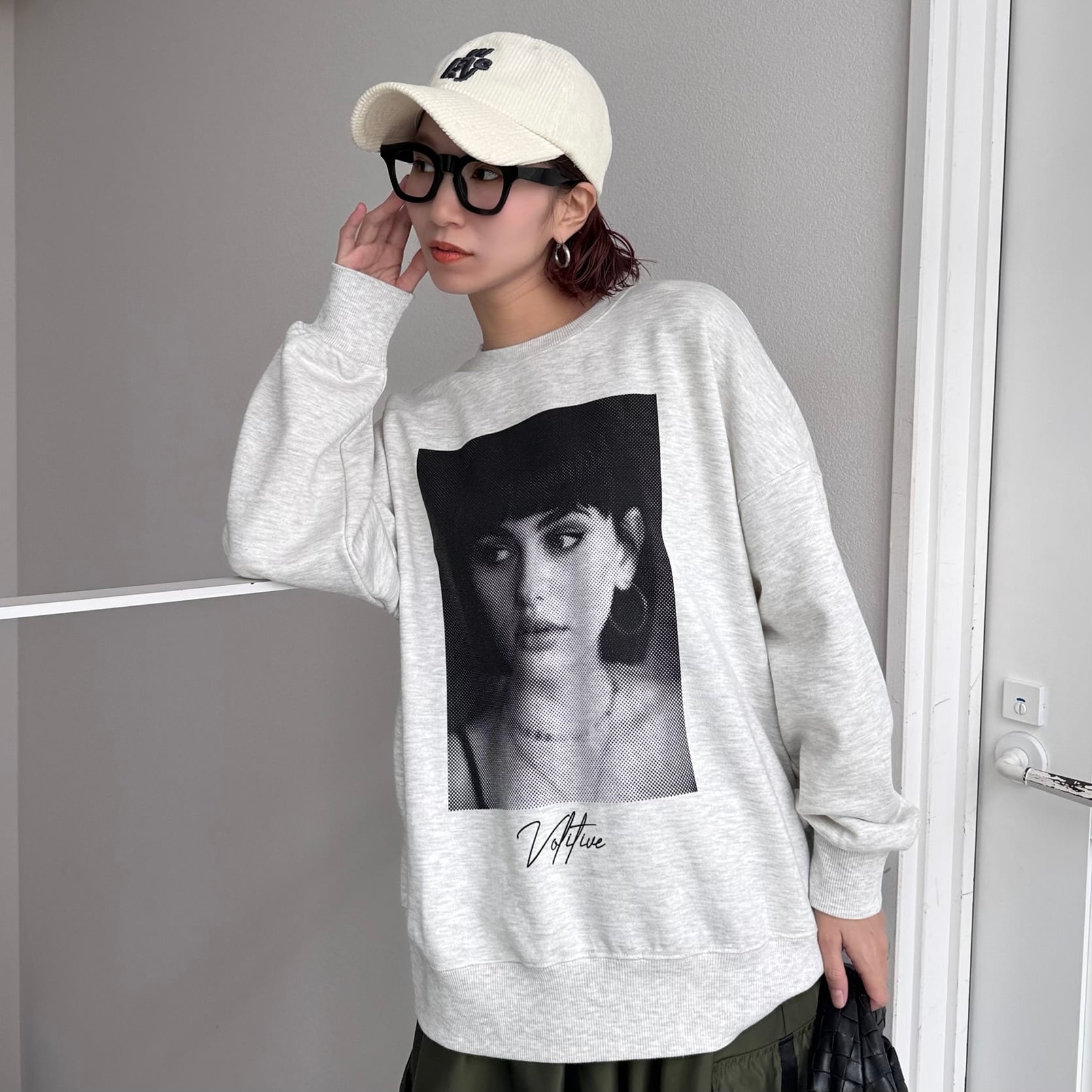 インパクトのあるphotoデザインがめをひくスウェットプルオーバー。モノトーンベースなので飽きがこず、カジュアルからモードまで幅広いスタイリングに馴染む1枚。オーバーサイズなのでお尻周りもスッキリ見えします。裏毛仕立てなのでサラリとした着心地で長くご使用いただけます。