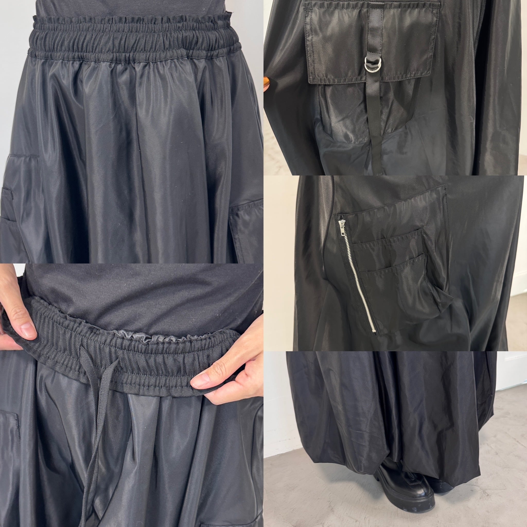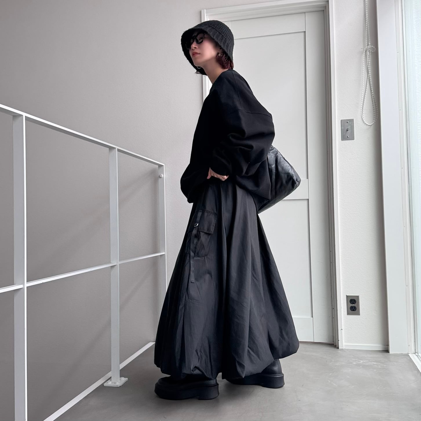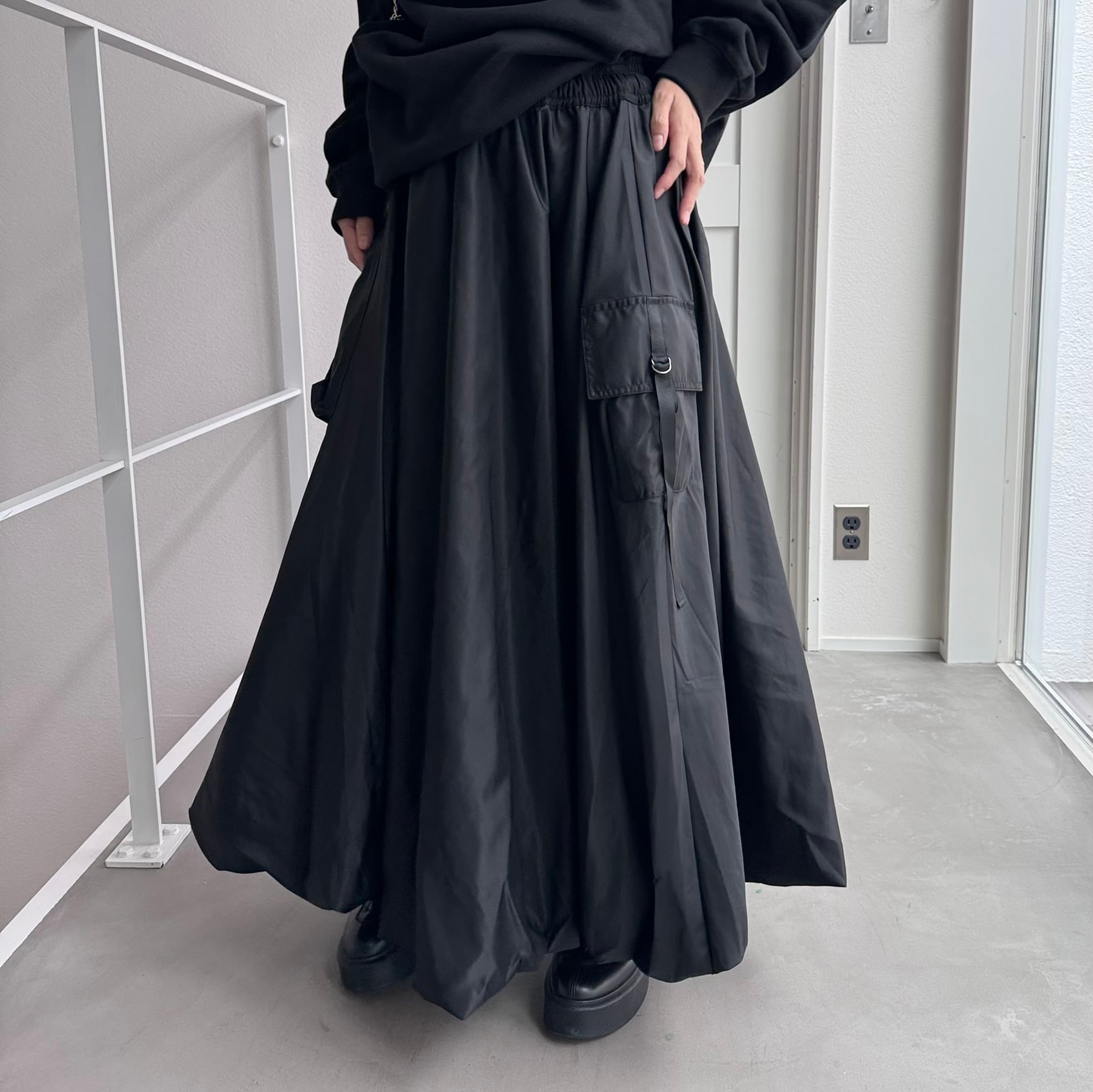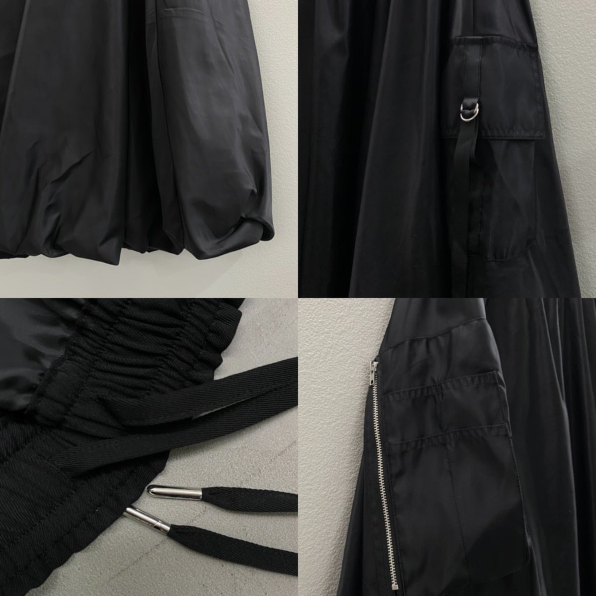 トレンドのバルーンシルエットにボリュームたっぷりのナイロンスカート。MA-1調のナイロン素材とポケットディテールを使用しておりモードなコーデからカジュアルコーデまで幅広くご使用いただけます。ウエストはゴム仕立てになっており内側には紐でサイズ調節可能なのでサイズは問いません。立体的なシルエットなので体型カバーしつつ動くたびにふんわりと揺れ大人可愛い女性を演出します。