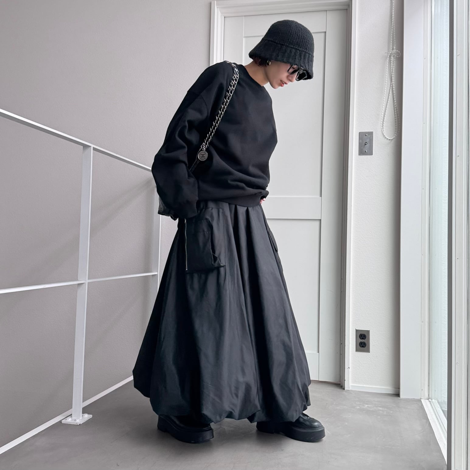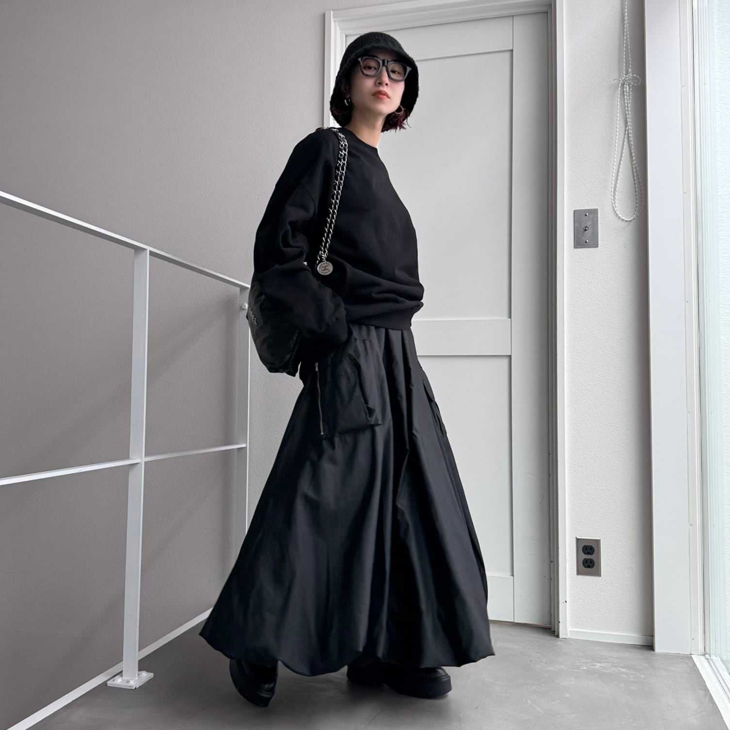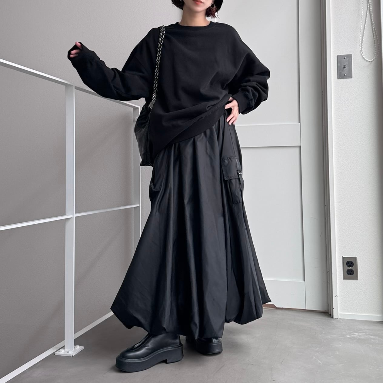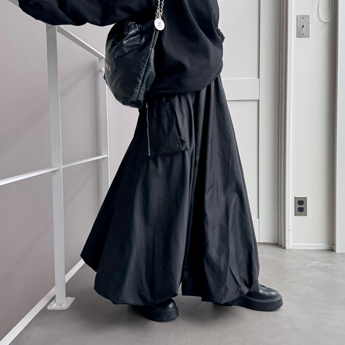 トレンドのバルーンシルエットにボリュームたっぷりのナイロンスカート。MA-1調のナイロン素材とポケットディテールを使用しておりモードなコーデからカジュアルコーデまで幅広くご使用いただけます。ウエストはゴム仕立てになっており内側には紐でサイズ調節可能なのでサイズは問いません。立体的なシルエットなので体型カバーしつつ動くたびにふんわりと揺れ大人可愛い女性を演出します。