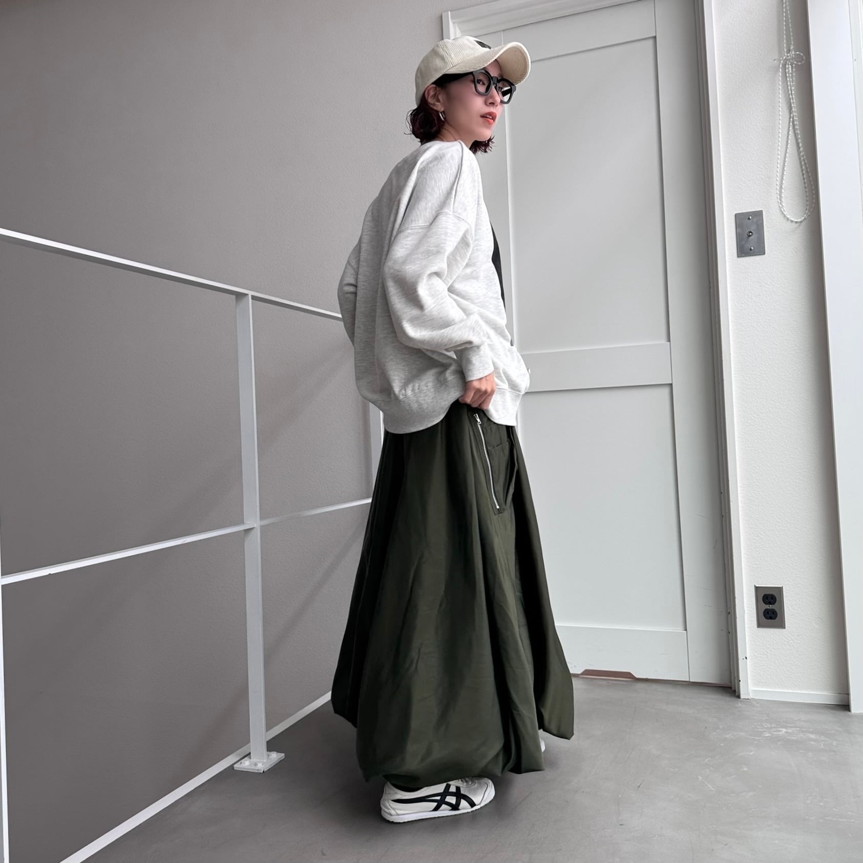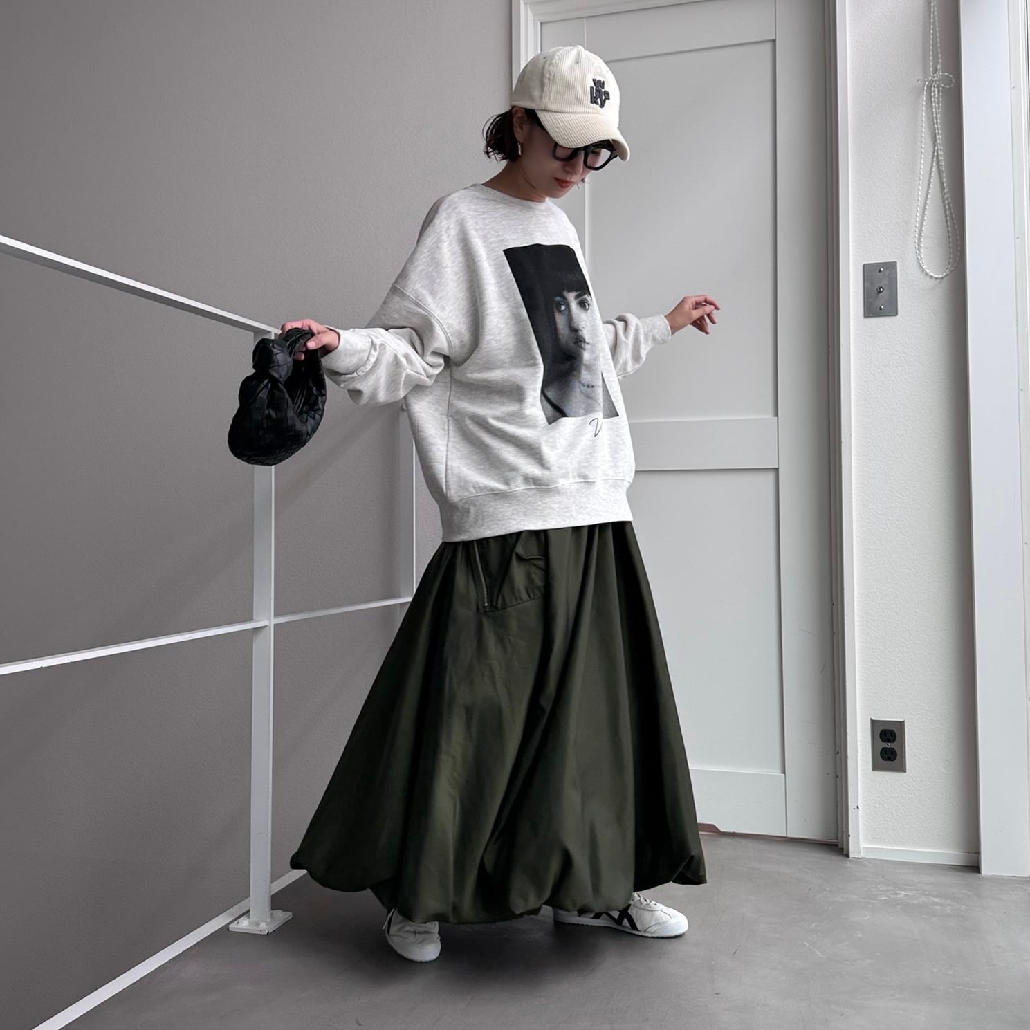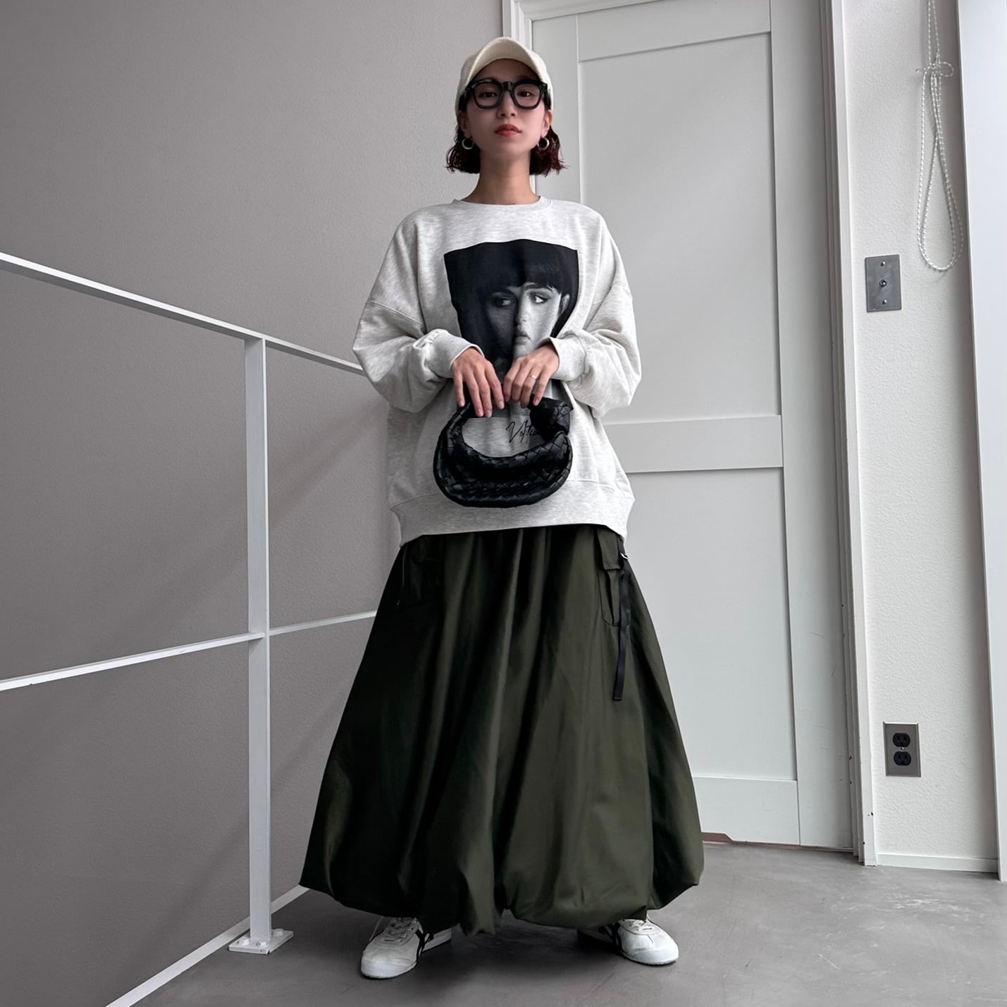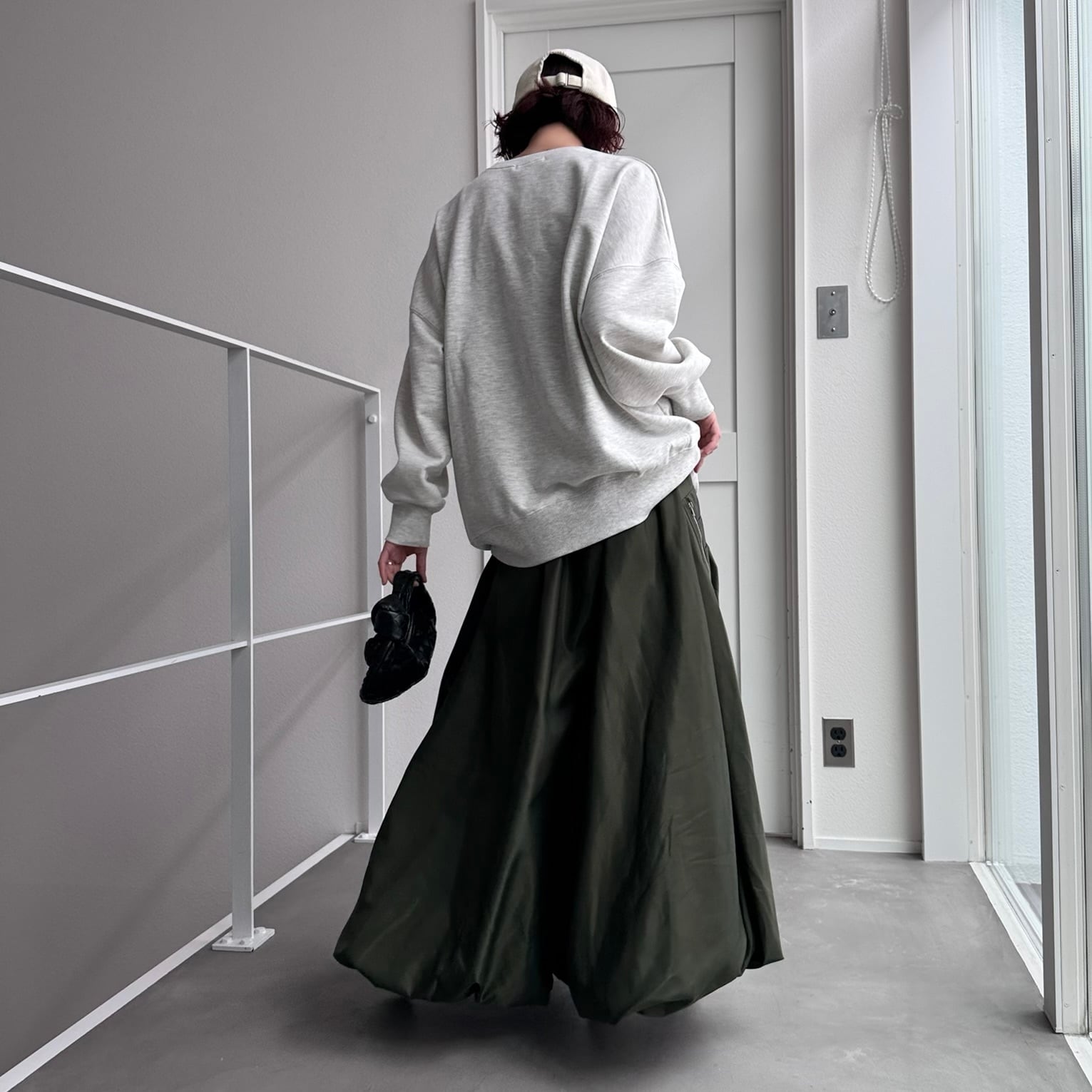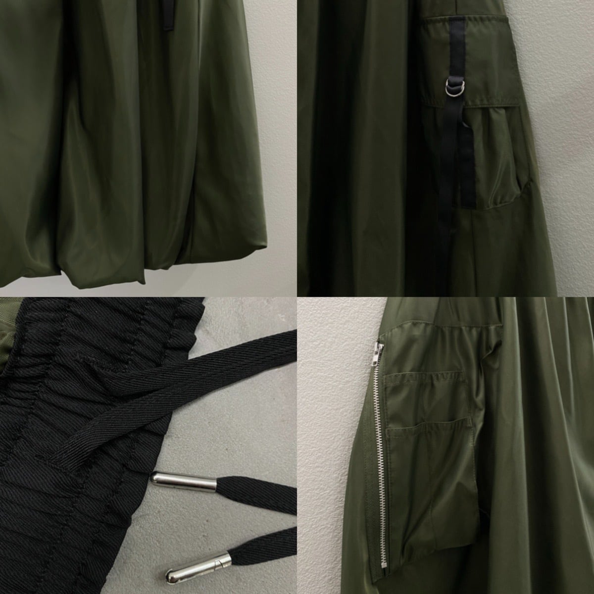トレンドのバルーンシルエットにボリュームたっぷりのナイロンスカート。MA-1調のナイロン素材とポケットディテールを使用しておりモードなコーデからカジュアルコーデまで幅広くご使用いただけます。ウエストはゴム仕立てになっており内側には紐でサイズ調節可能なのでサイズは問いません。立体的なシルエットなので体型カバーしつつ動くたびにふんわりと揺れ大人可愛い女性を演出します。