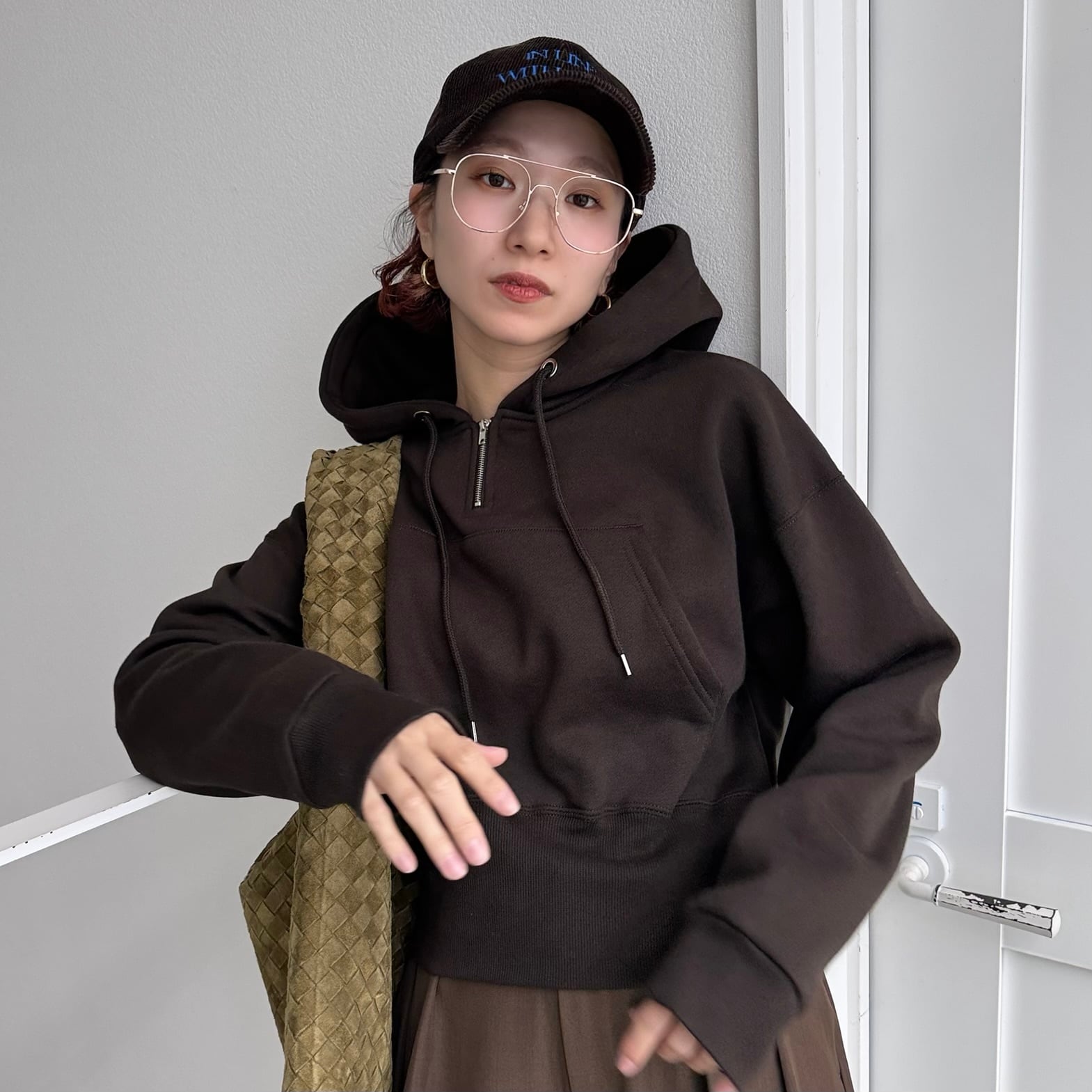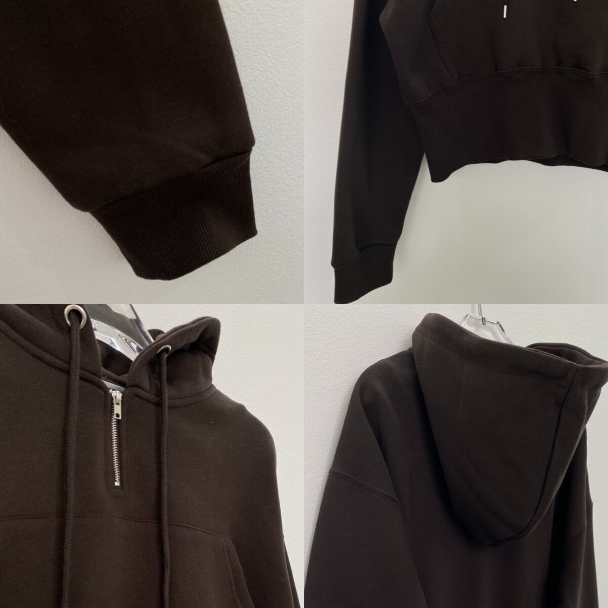 スタイリッシュなショート丈パーカー。裾のリブはあえて広くとる事によってウエストをシェイプした印象に。裏起毛素材なのでふんわりとした着心地です。ポケットの位置も高く配置する事で、より脚長効果も。ワイドパンツやボリュームのあるボトムとの相性もバッチリです。フロントのショートzipもコーデのアクセントになります。
