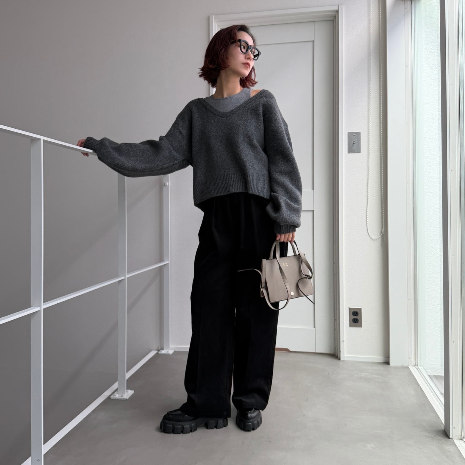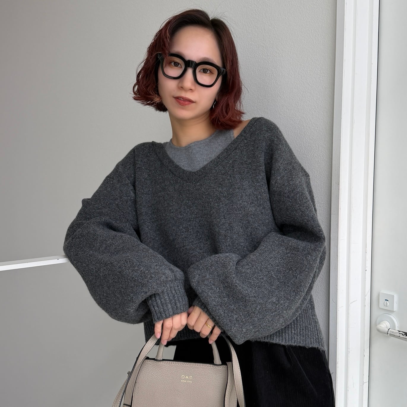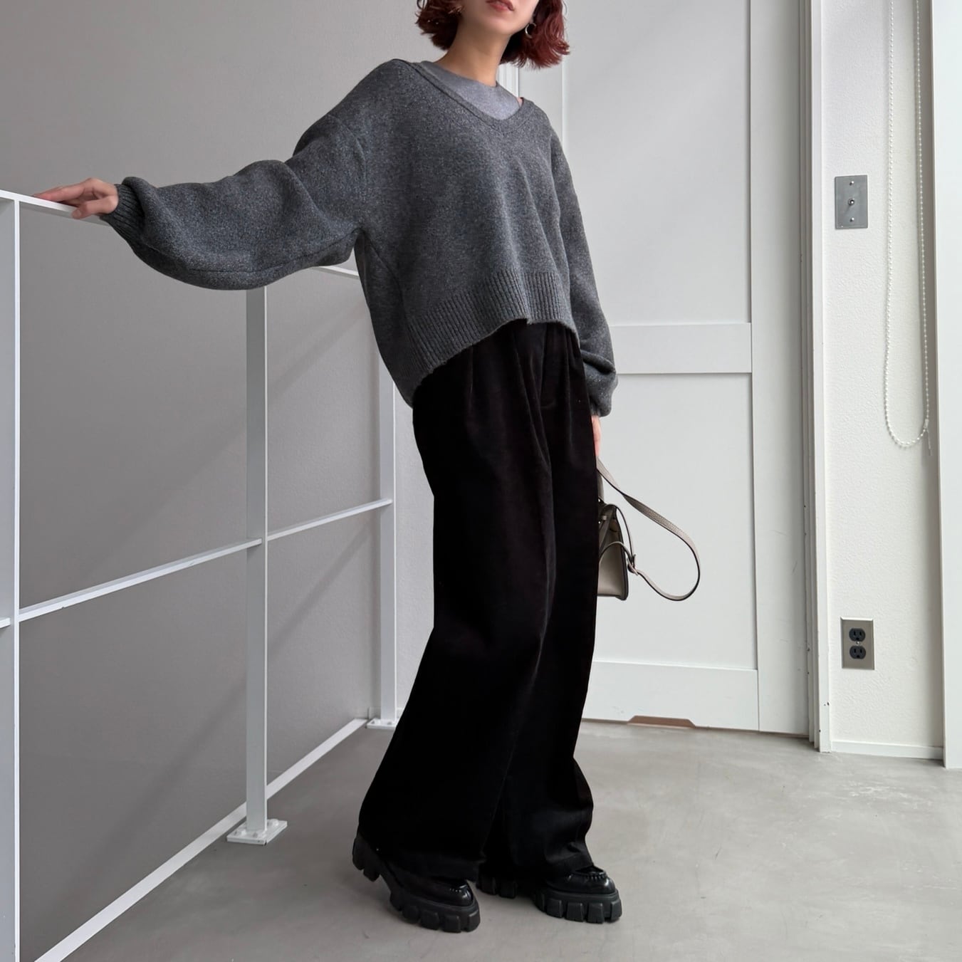 [タンクset]VネックニットPO/チャコールグレー
