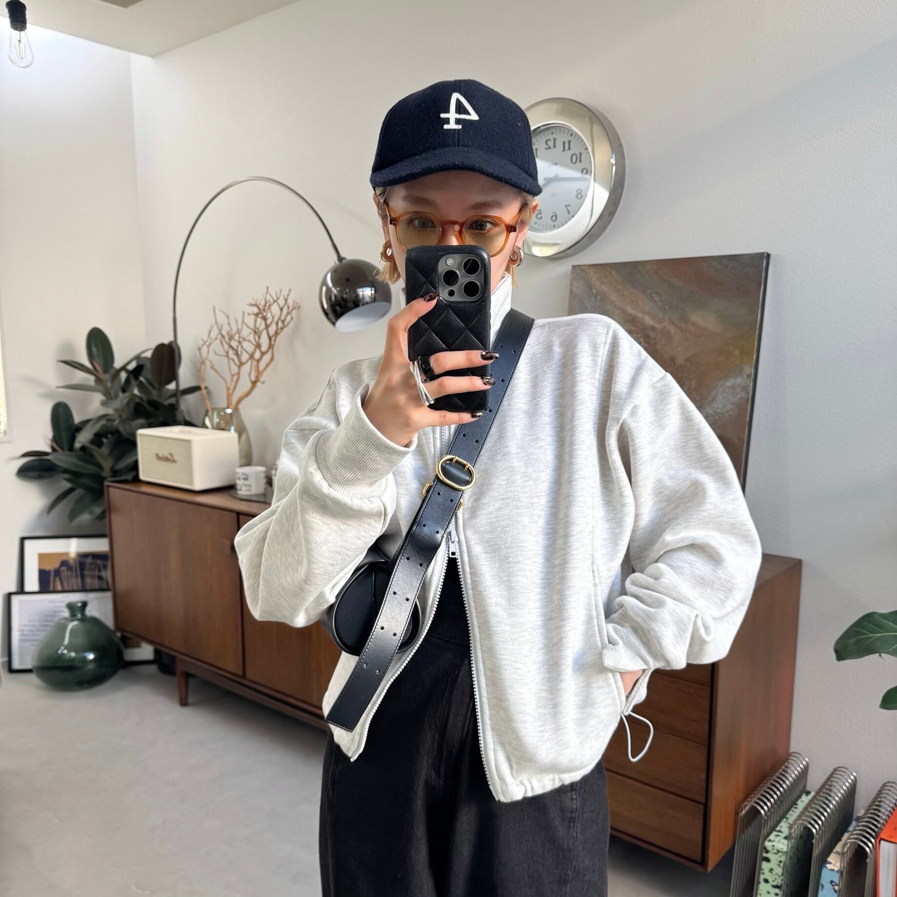 着回しバツグンのショート丈ブルゾン。コンパクトな丈感なのでトップスとしてもご使用いただけます。上下どちらからも調節できるダブルジップタイプなのでコーデのバランスもとりやすく、ジップを上まで閉めればハイネックに◎裾にはドローコードがあるので丸みのあるシルエットとしても。袖口のスリットやフロント部分の切替など細部までこだわった1枚です。