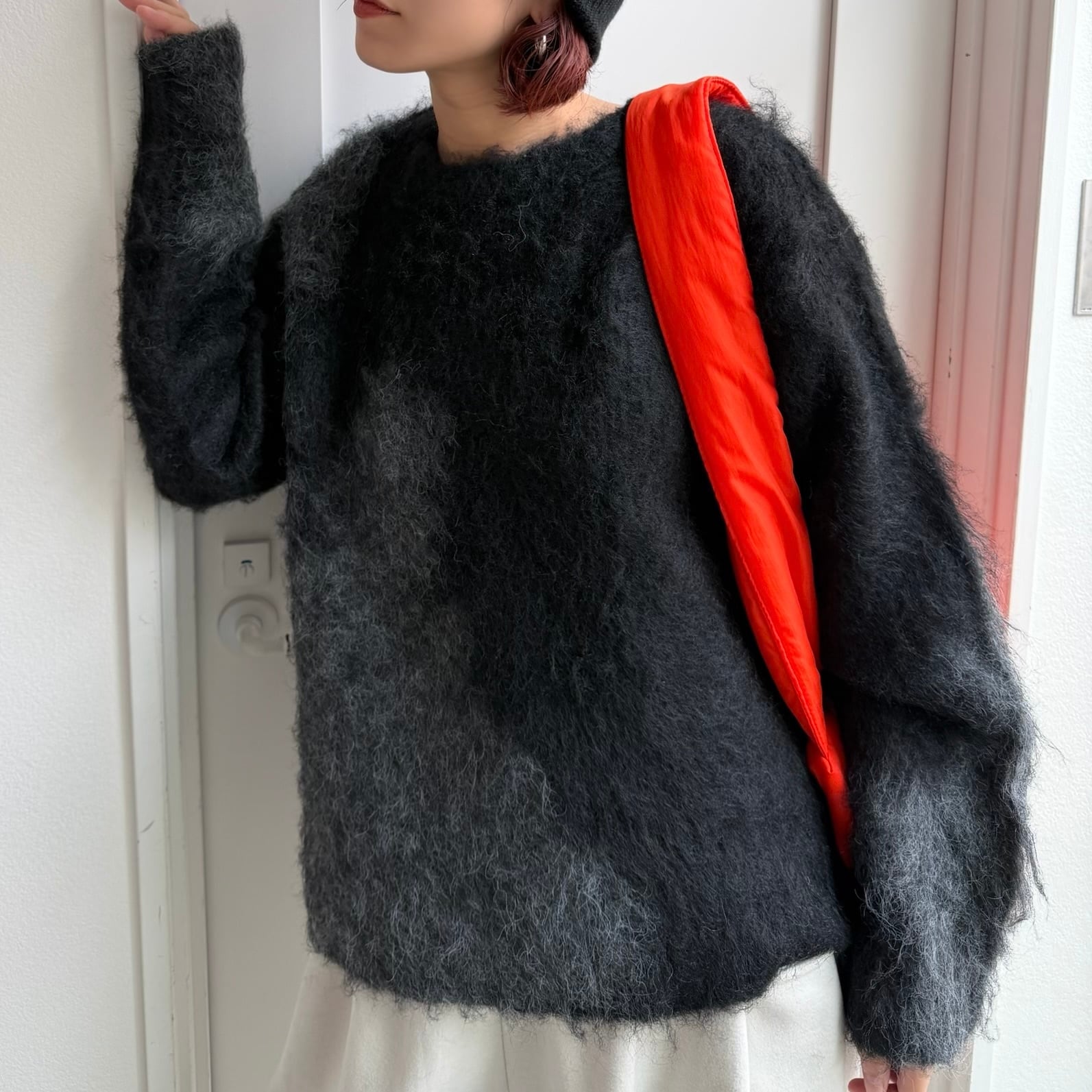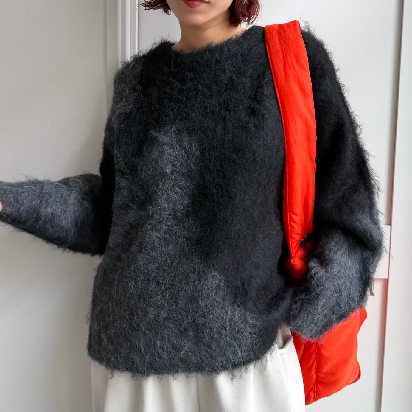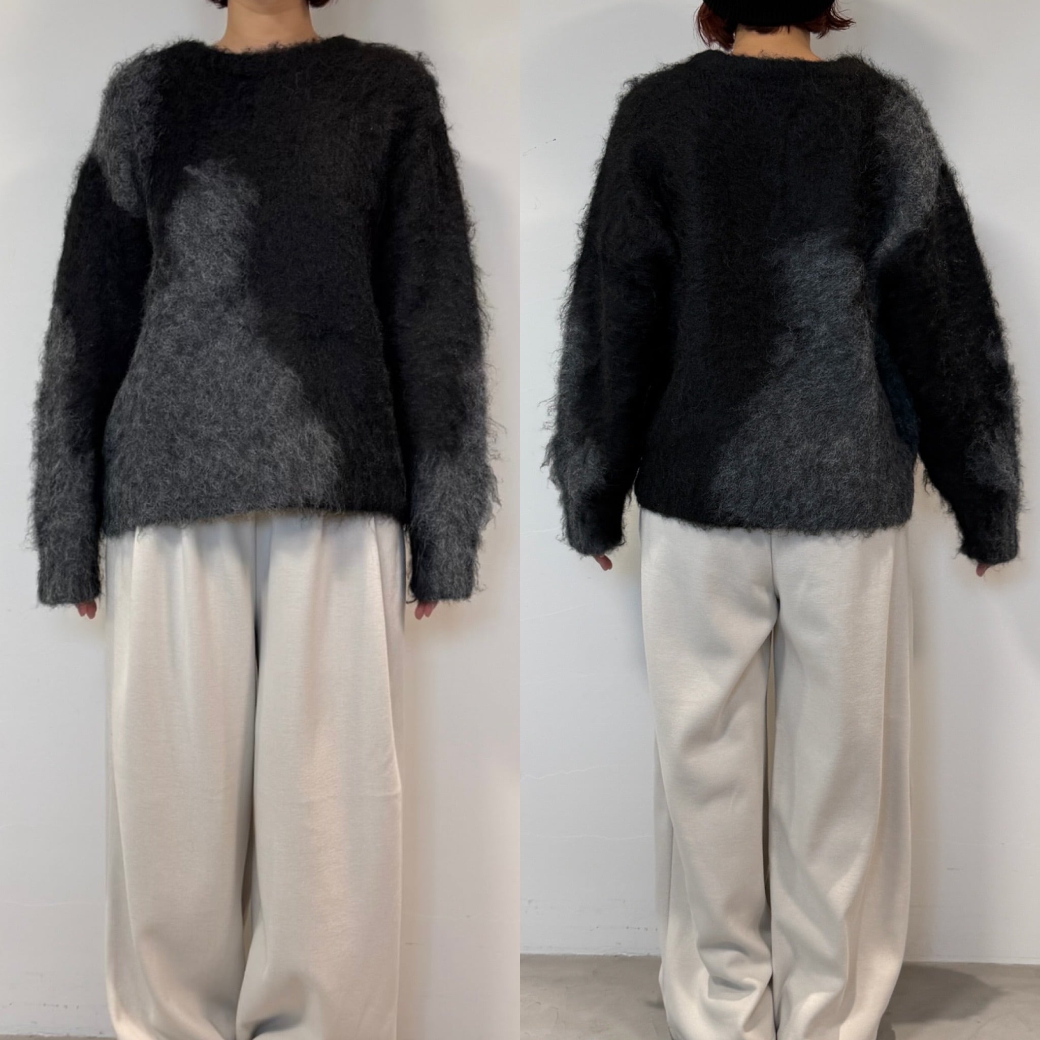 インパクトのあるニュアンス柄が可愛いミックスニット。チクチク感もなく柔らかな着心地です。程よい厚みの起毛感のあるシャギーニットで保温性も抜群なのも嬉しいポイント。バランスの取りやすい丈感なのでボトムを選ばずスタイリングしやすく、目を惹くデザインなので1枚でコーデが完成します。