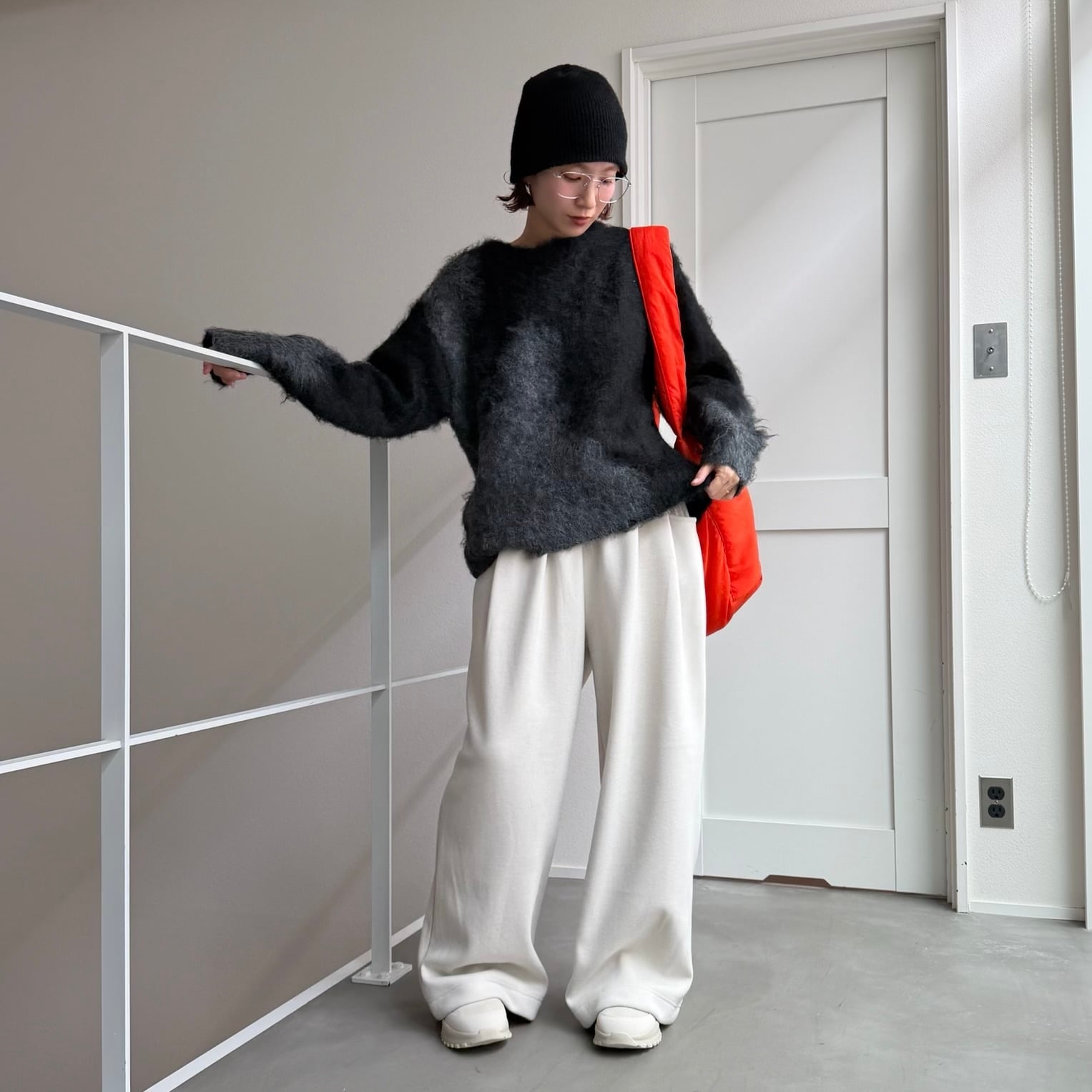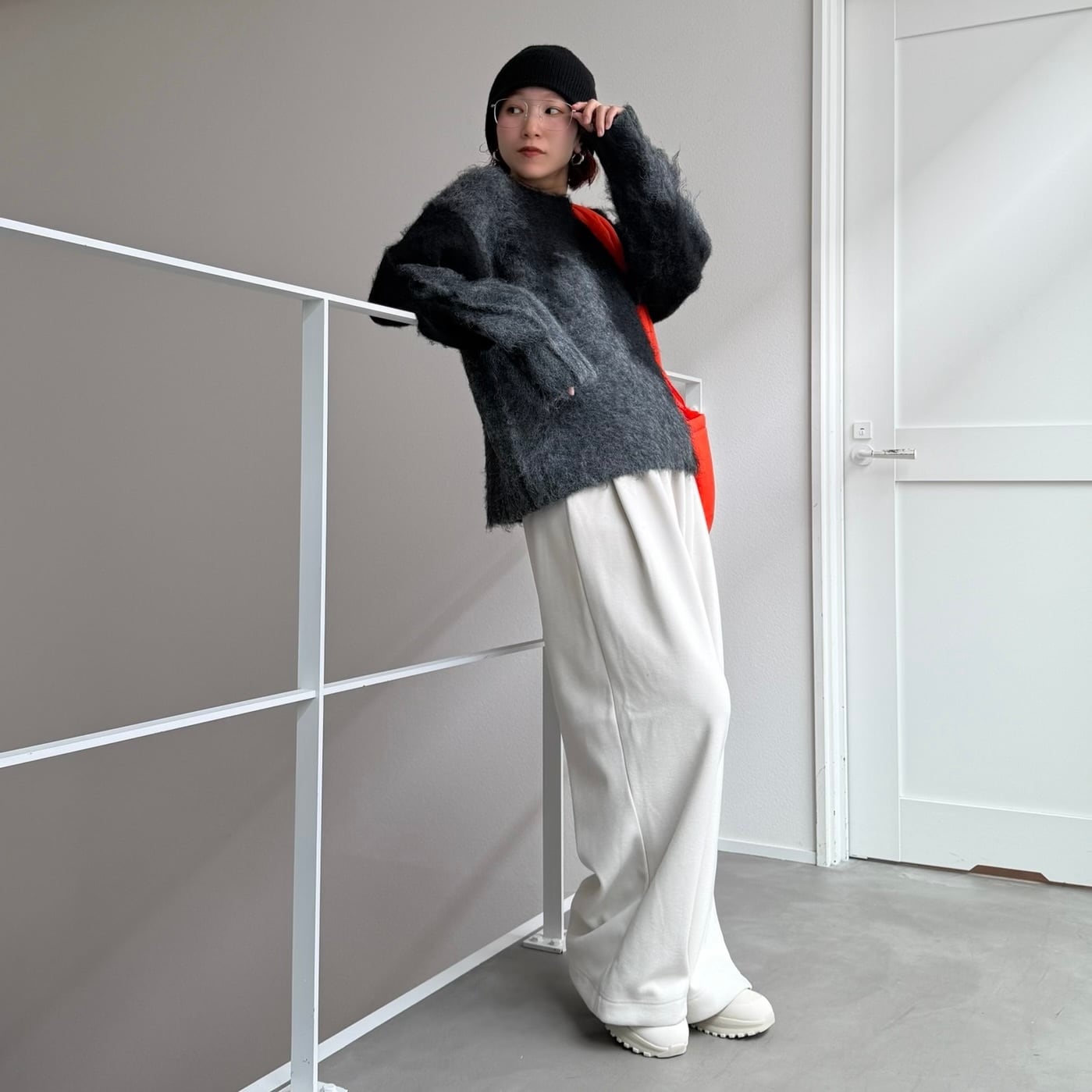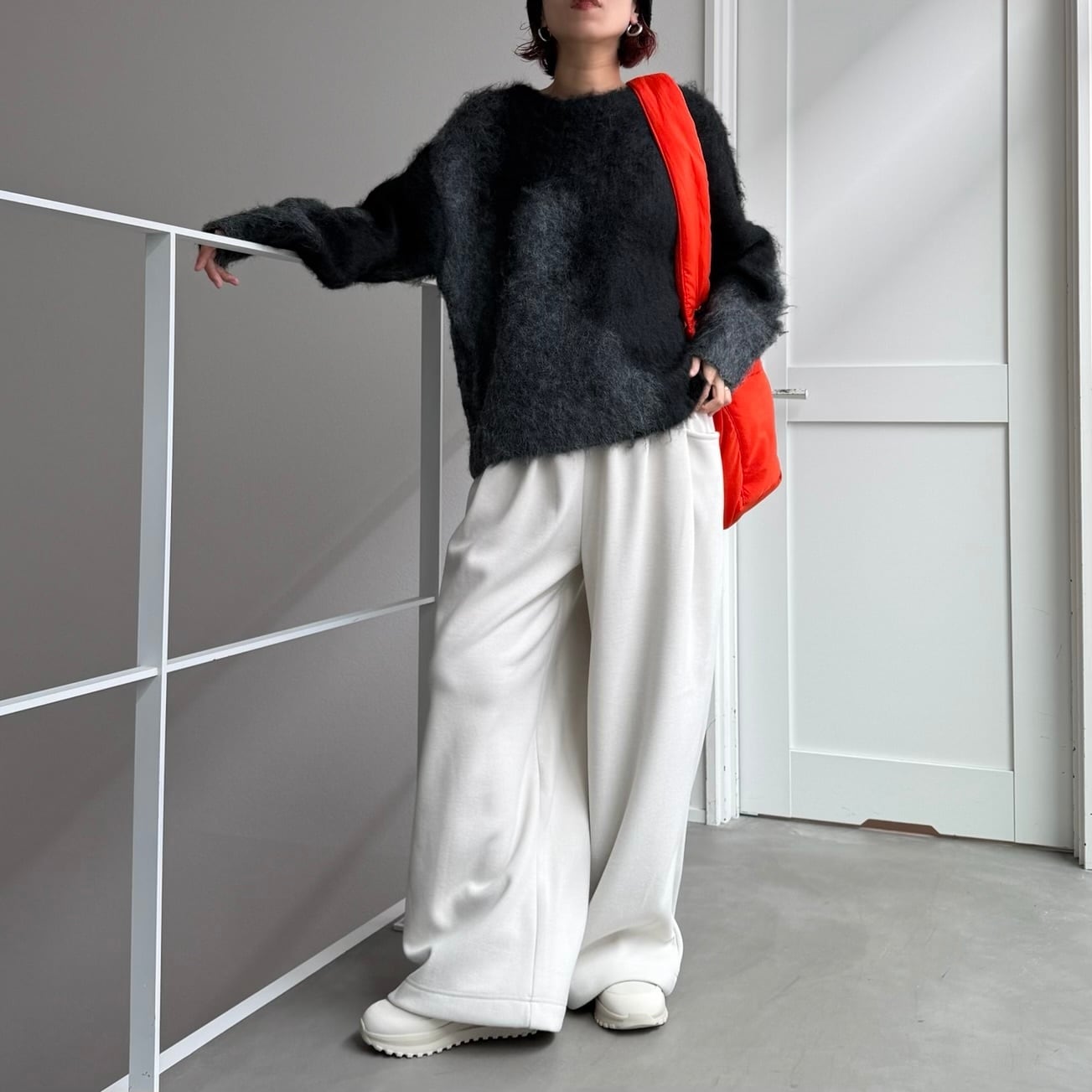 インパクトのあるニュアンス柄が可愛いミックスニット。チクチク感もなく柔らかな着心地です。程よい厚みの起毛感のあるシャギーニットで保温性も抜群なのも嬉しいポイント。バランスの取りやすい丈感なのでボトムを選ばずスタイリングしやすく、目を惹くデザインなので1枚でコーデが完成します。