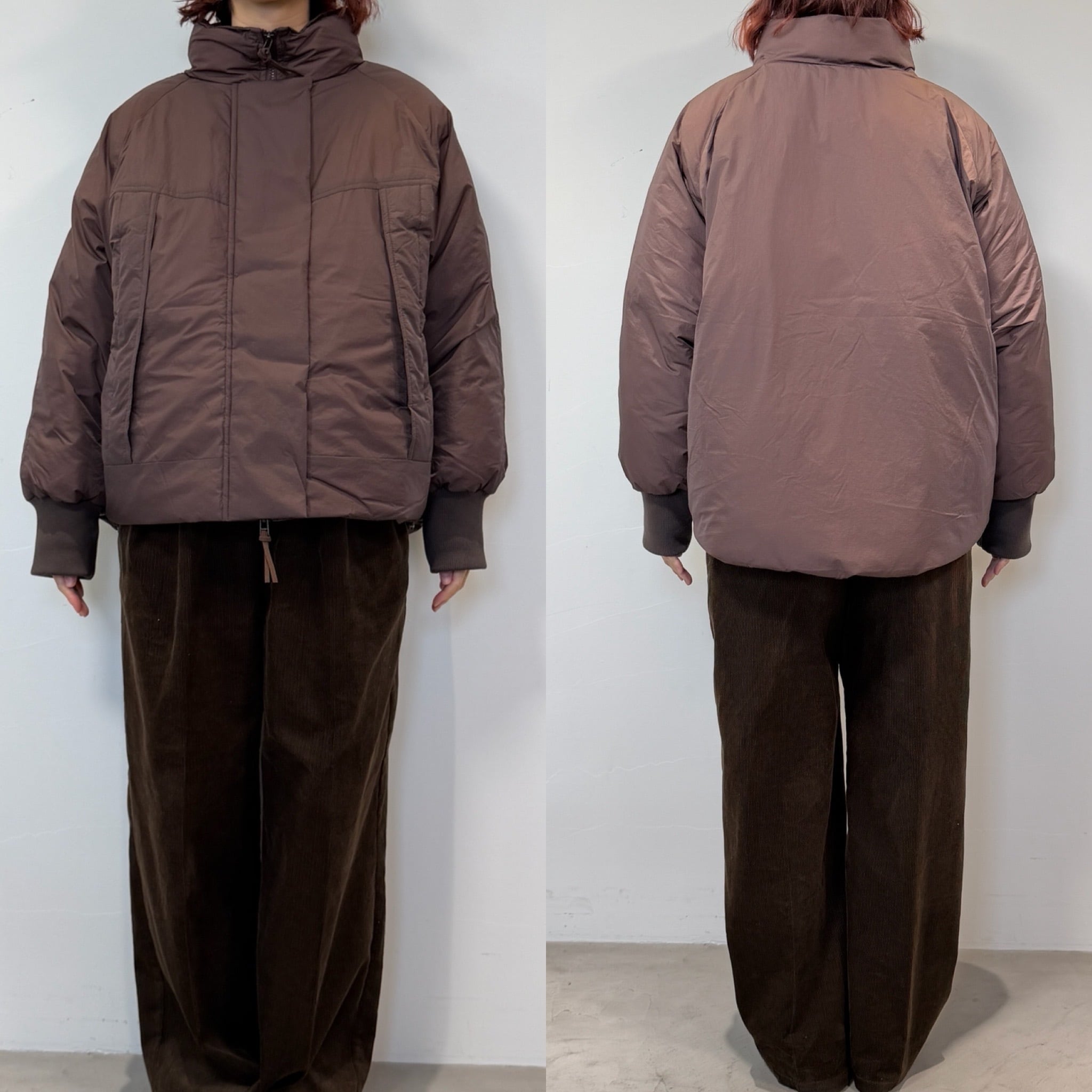 裾のドローコードでシルエットをアレンジ出来る中綿ショートブルゾン。アームホールはゆとりのあるデザインなので厚手のニットにも◎Wジップやボタン、コードエンドなど付属にもこだわり、大人な雰囲気に仕上げています。中綿はSORONA(保温性のある中綿)を使用していてポリエステル中綿に比べて2倍の柔らかさ、保温性があります。さらにキックバックに優れ型崩れしにくい嬉しい機能性も。羽織りやすい丈感なのでこの冬重宝する1枚です。
