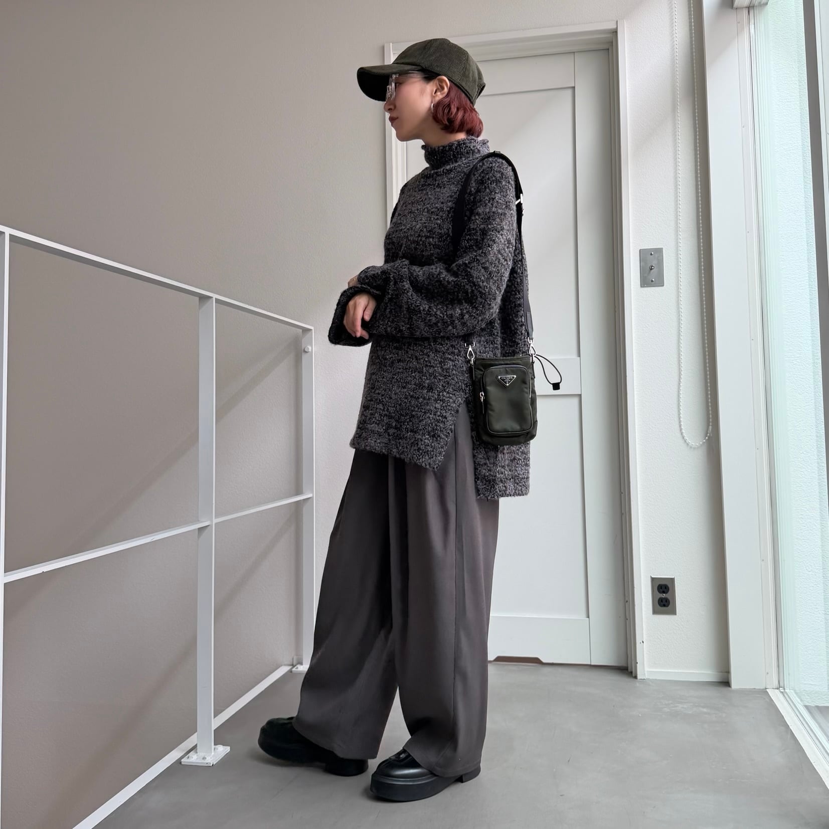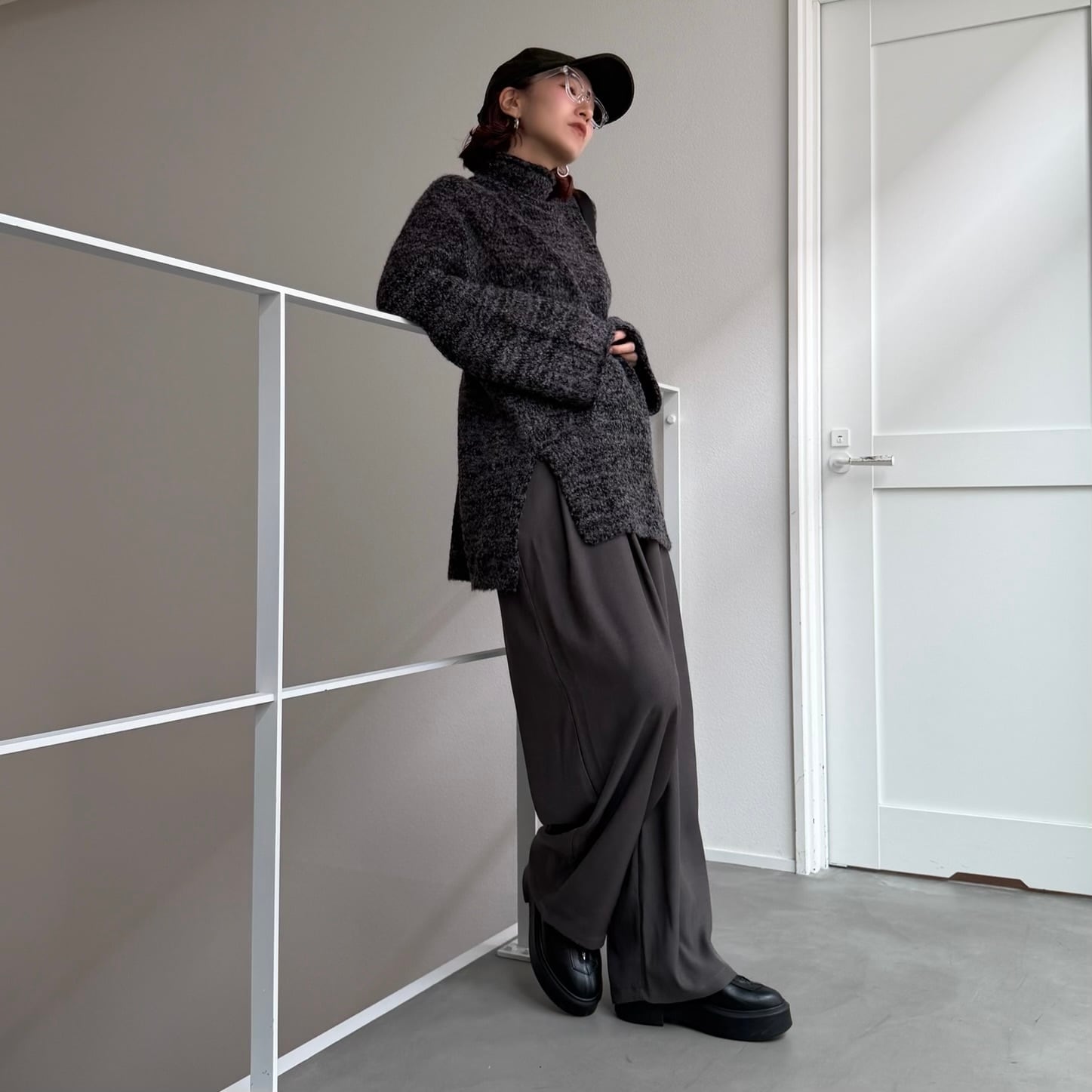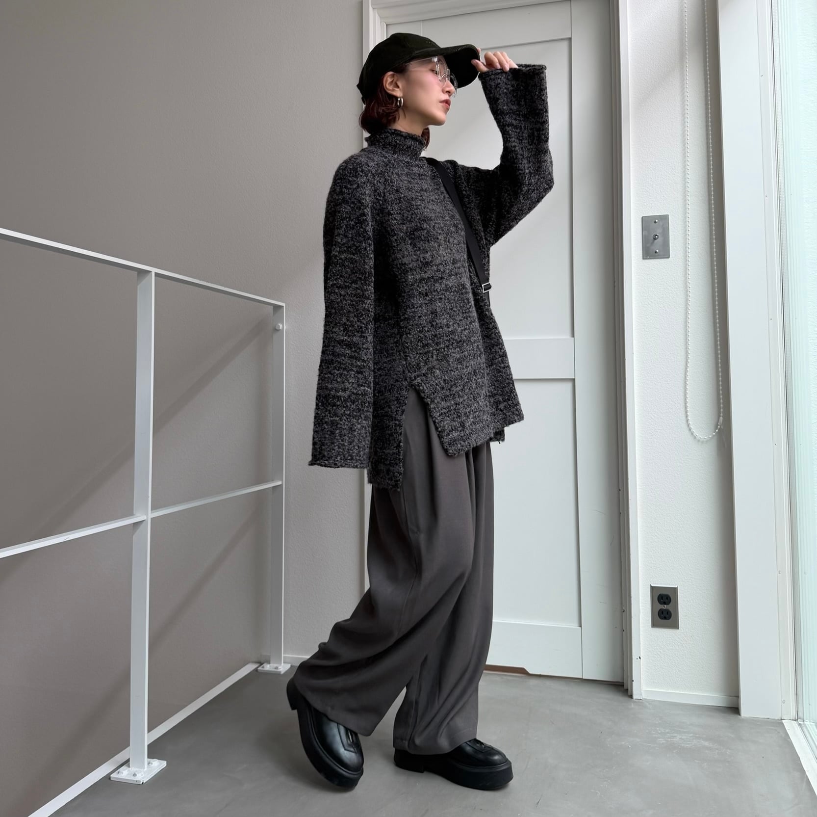 tops:ハイネックmixモールknit/チャコールmix