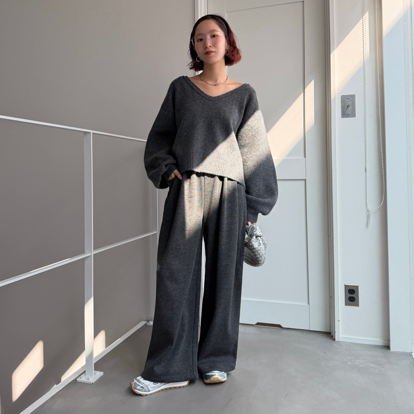 knit:[タンクset]VネックニットPO/チャコールグレー