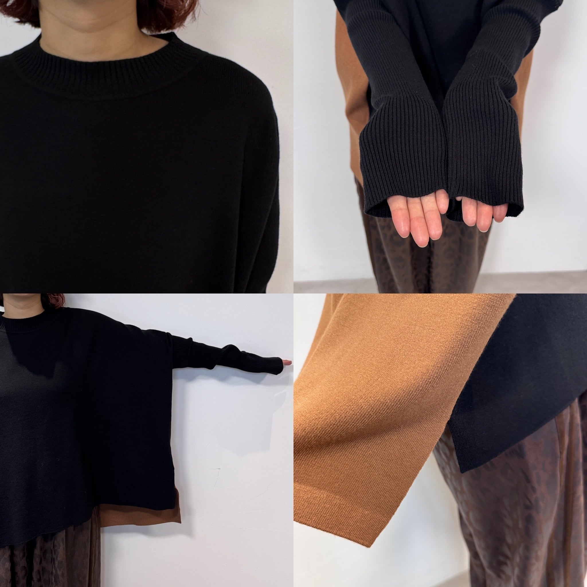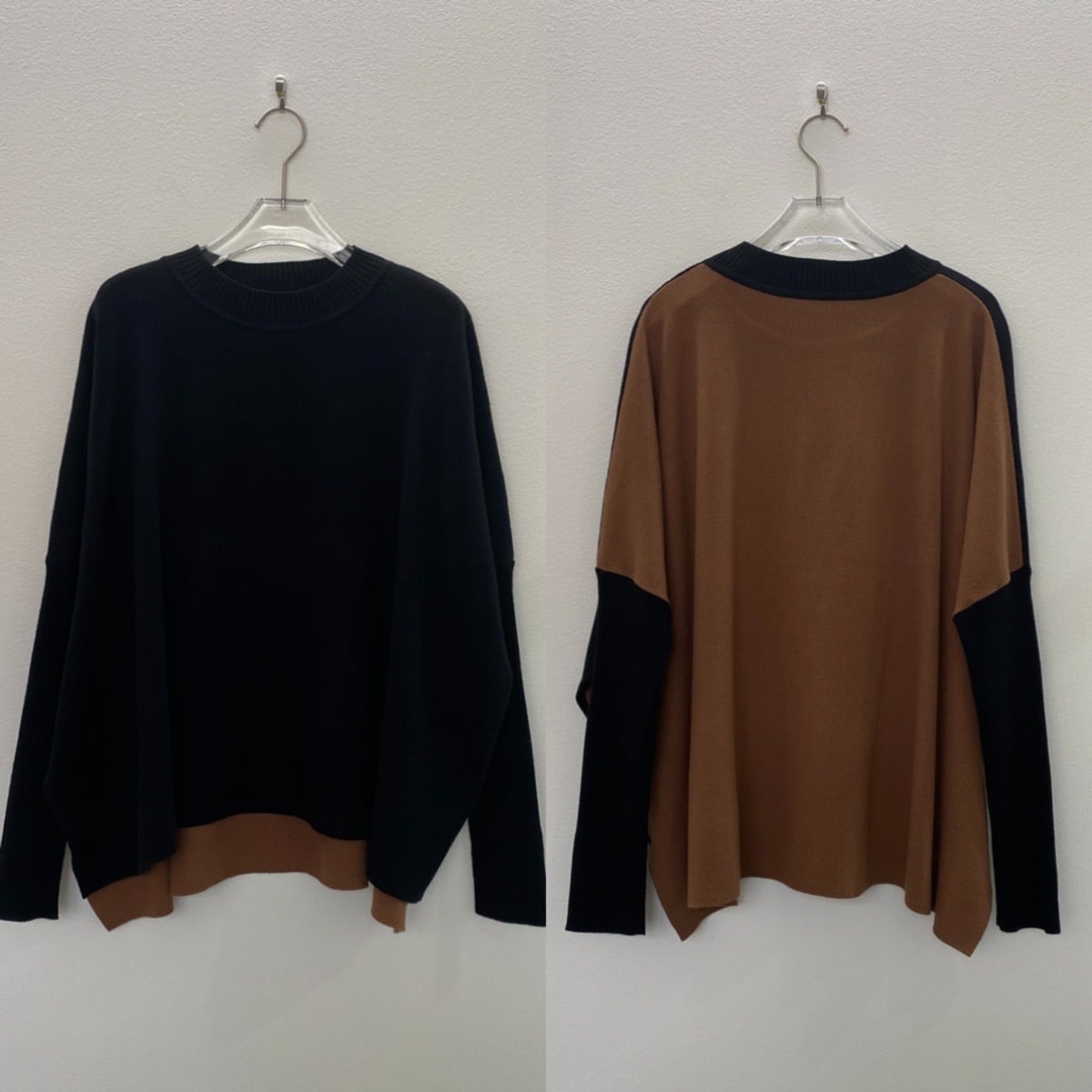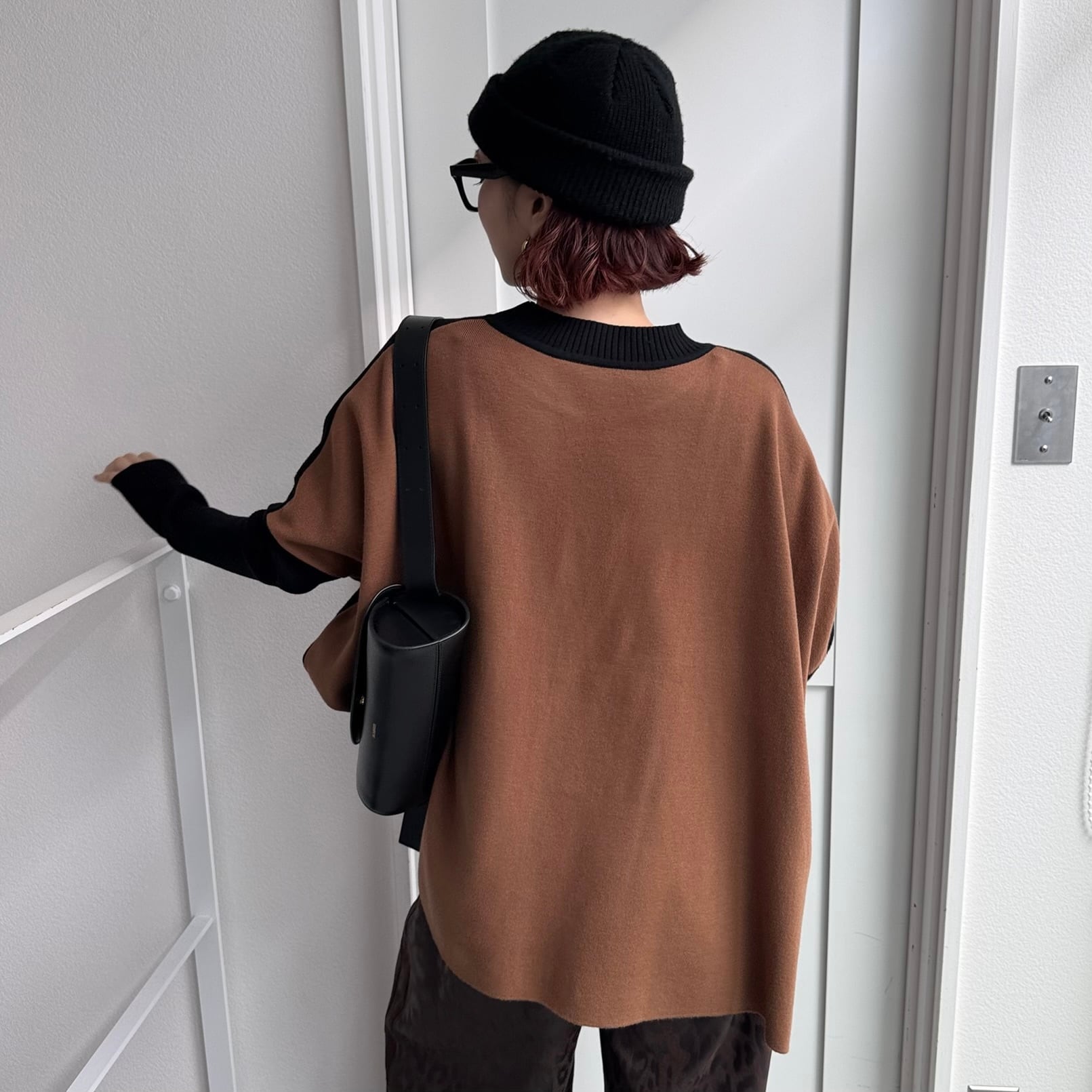ツートンカラードルマンニットPO/ブラック×ブラウン