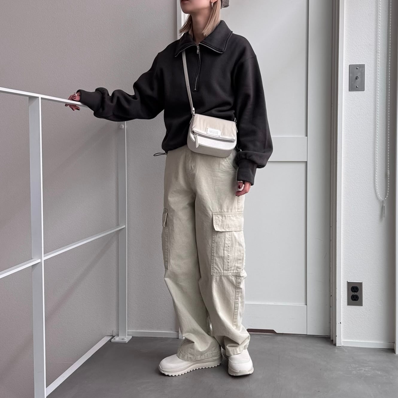 今期トレンドの襟付きハーフジップスウェット。コンパクトな丈感なのでハイウエストボトムとの相性バツグンです。裾にはドローコードがあるので丸みのあるシルエットにも◎裏起毛素材なのでふんわりとした着心地です。ジップを閉めて襟を立てたり、インナーとのレイヤード等スタイリングの幅を広げてくれる1枚。