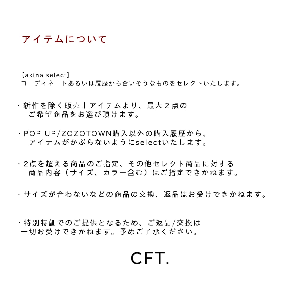 (※POPUP/ZOZOTOWN購入のCFT.商品を除く)