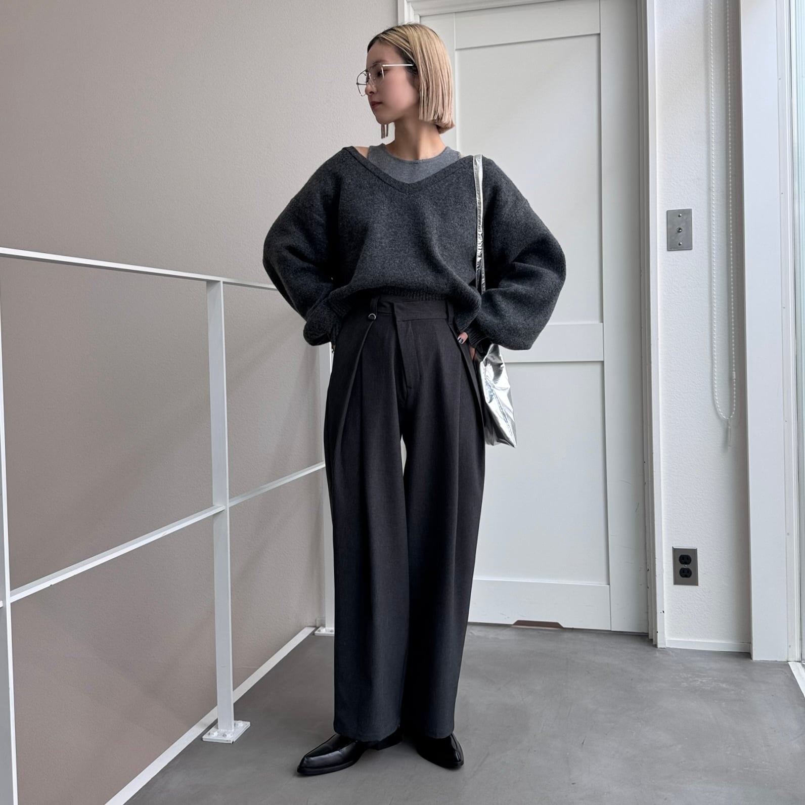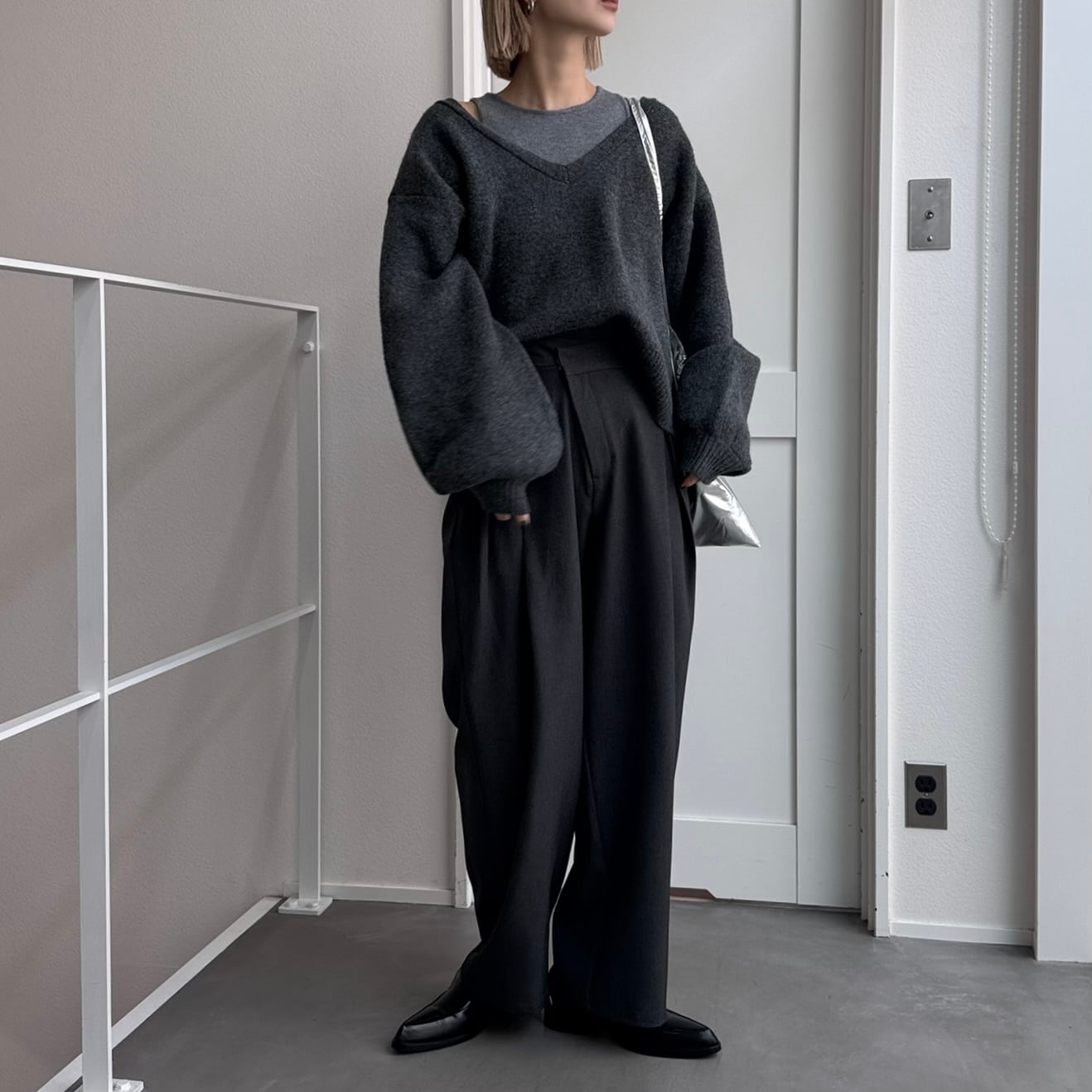 tops:[タンクset]VネックニットPO/チャコールグレー