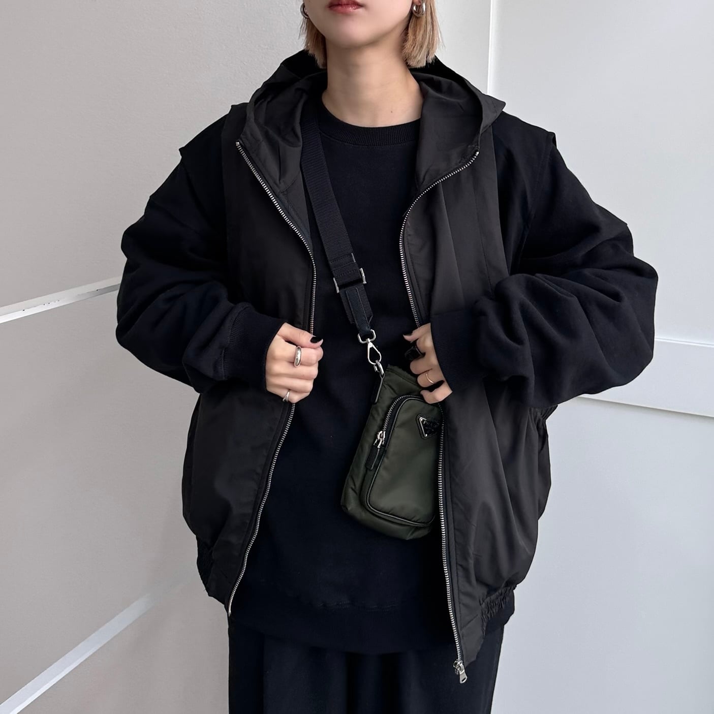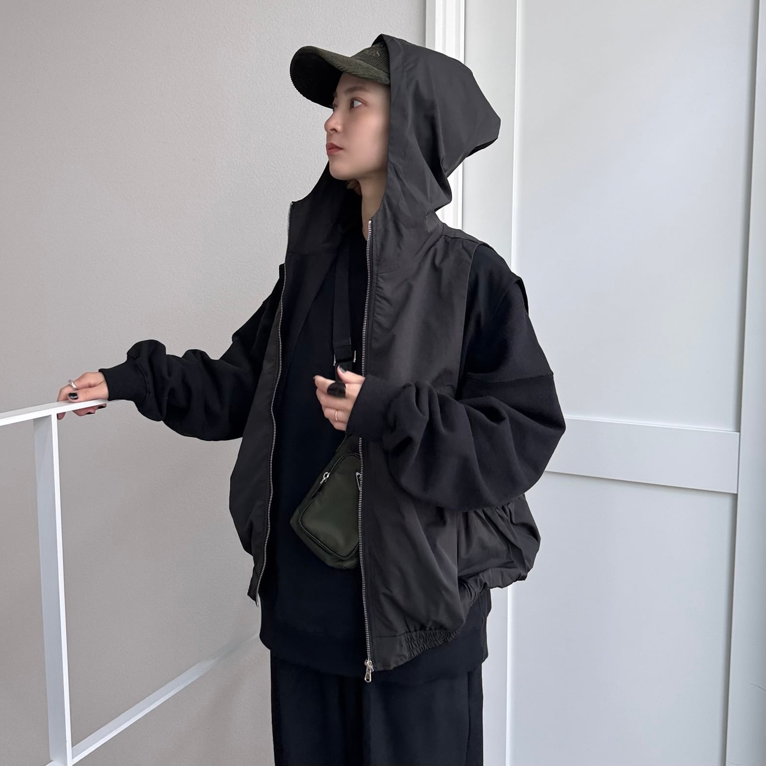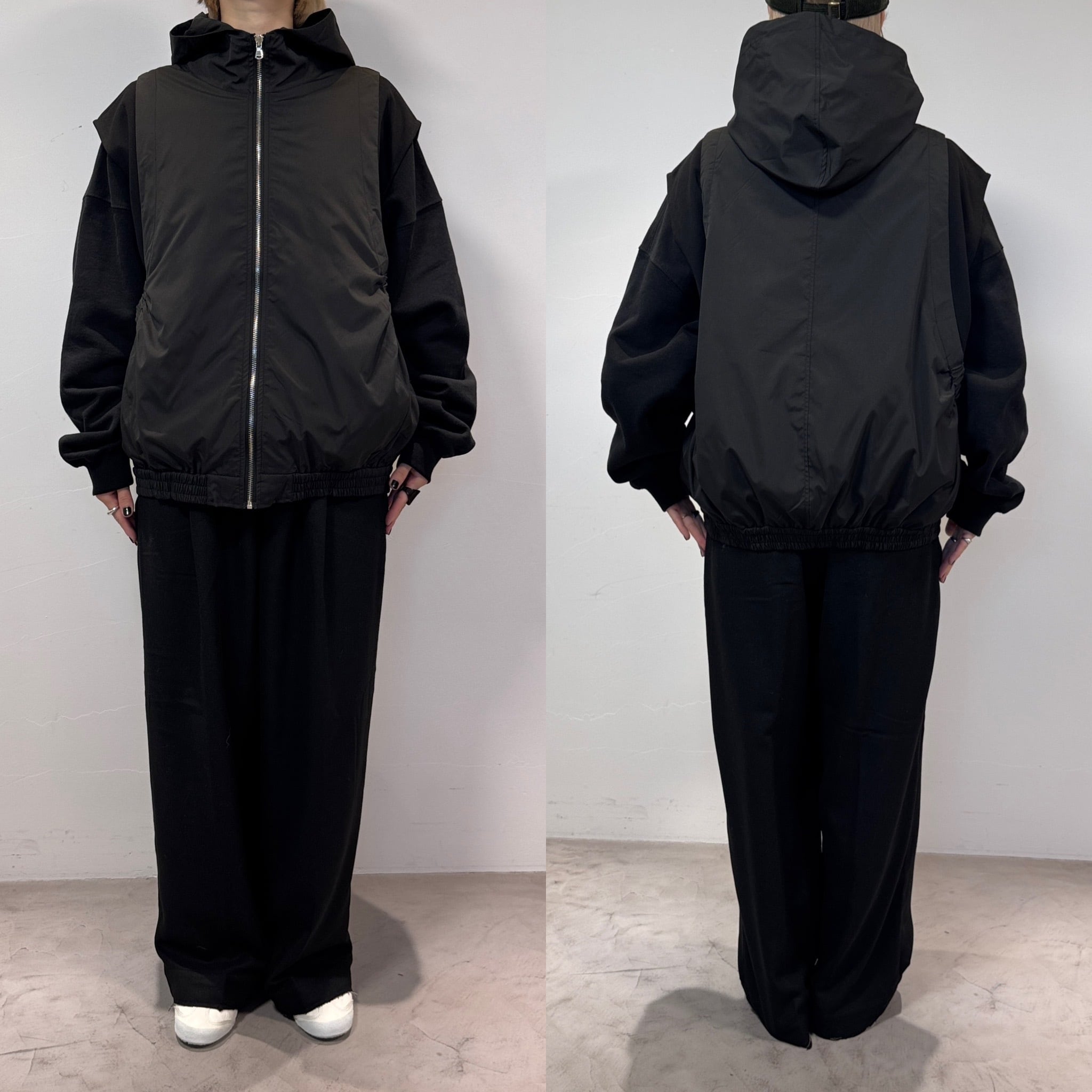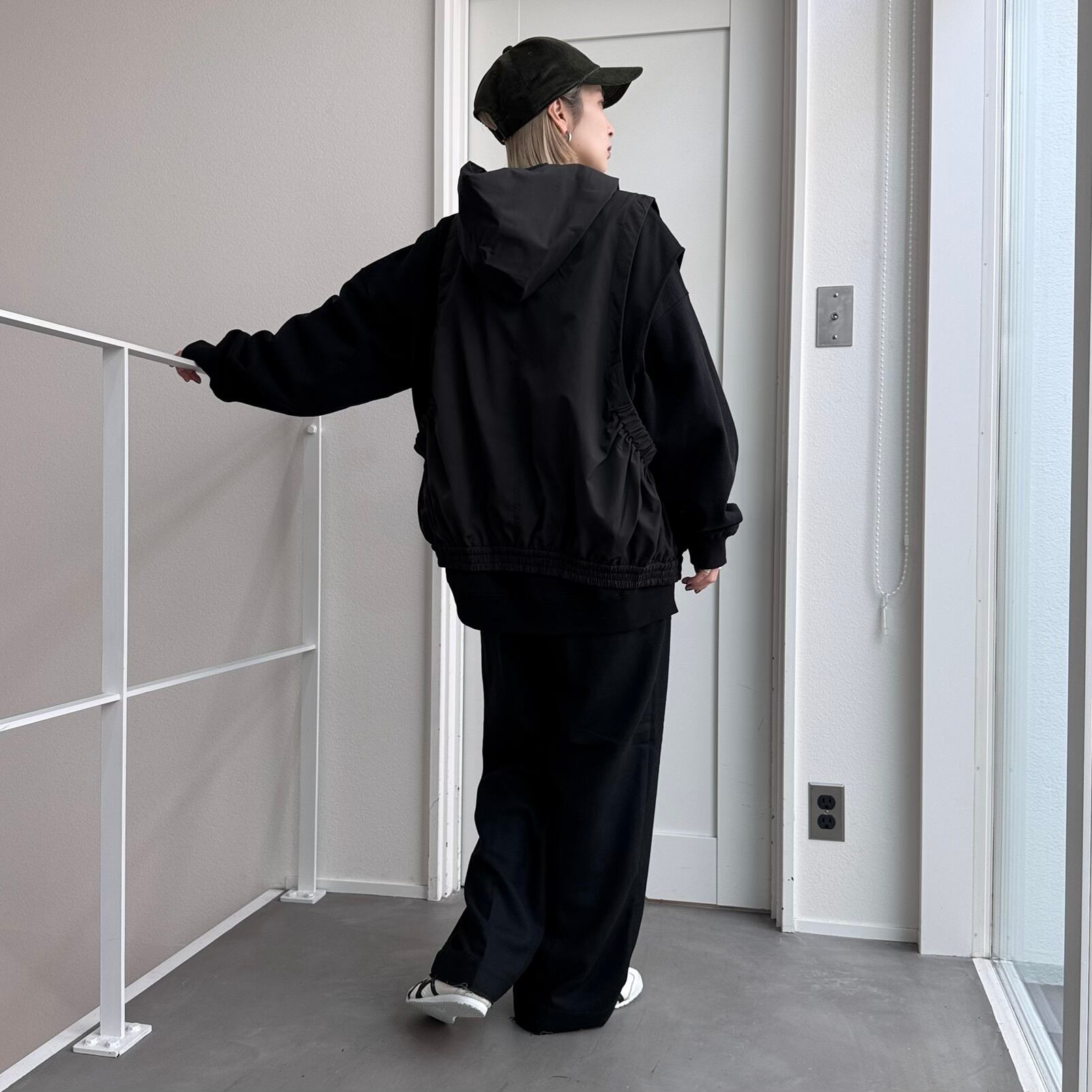 【受注予約:3月上旬入荷予定】異素材ドッキングフーディーvest/ブラック